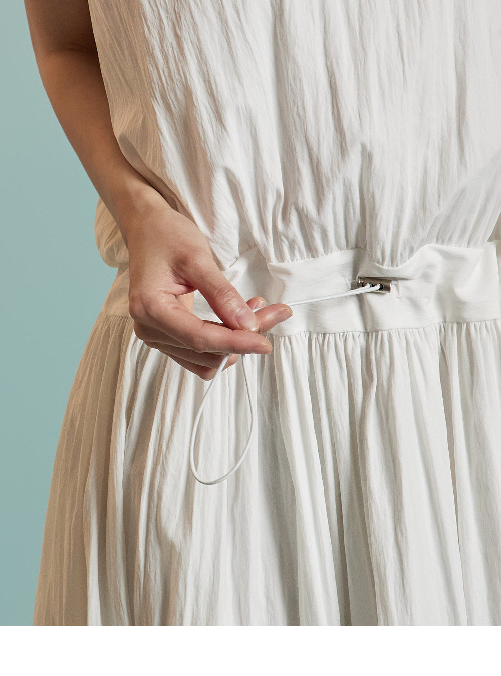 繊細なプリーツのディテールが動きに合わせて自然に揺れ、