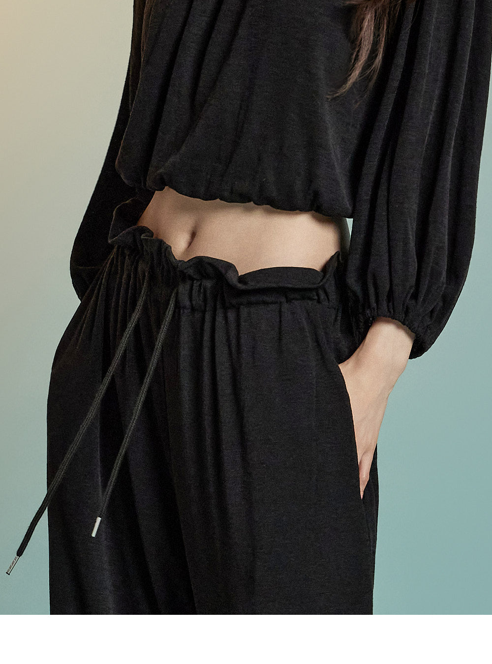 ドローストリングの伸縮性ウエストバンド付き。