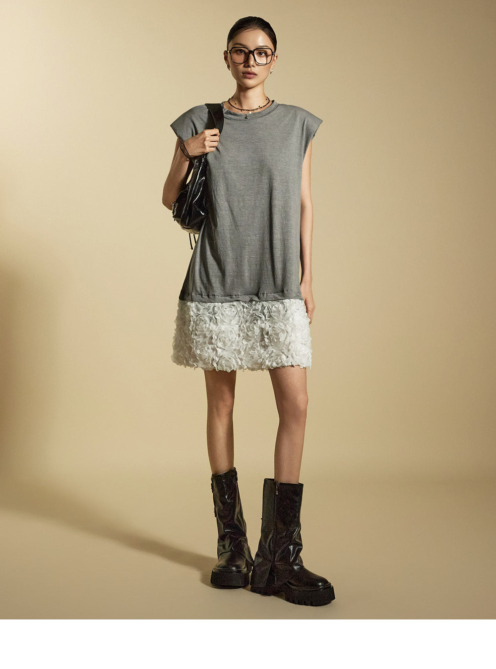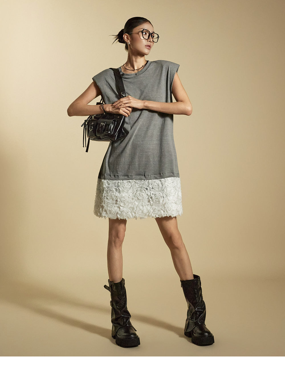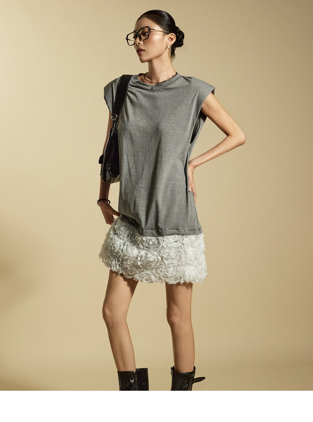 while rose lace details at the hem add a subtle and delicate feminine touch.