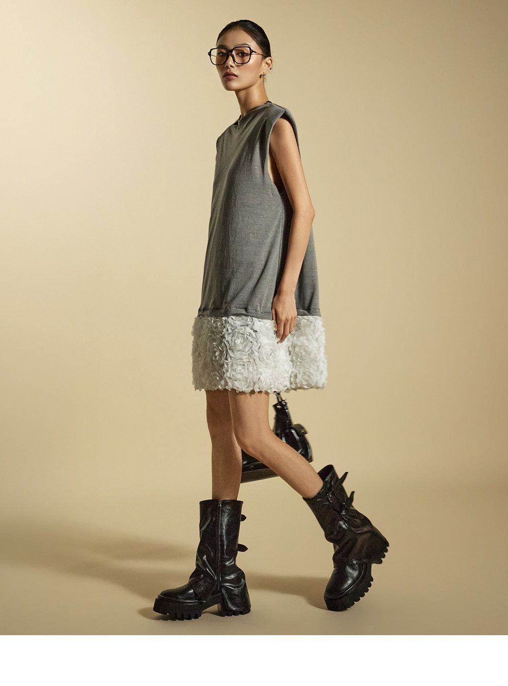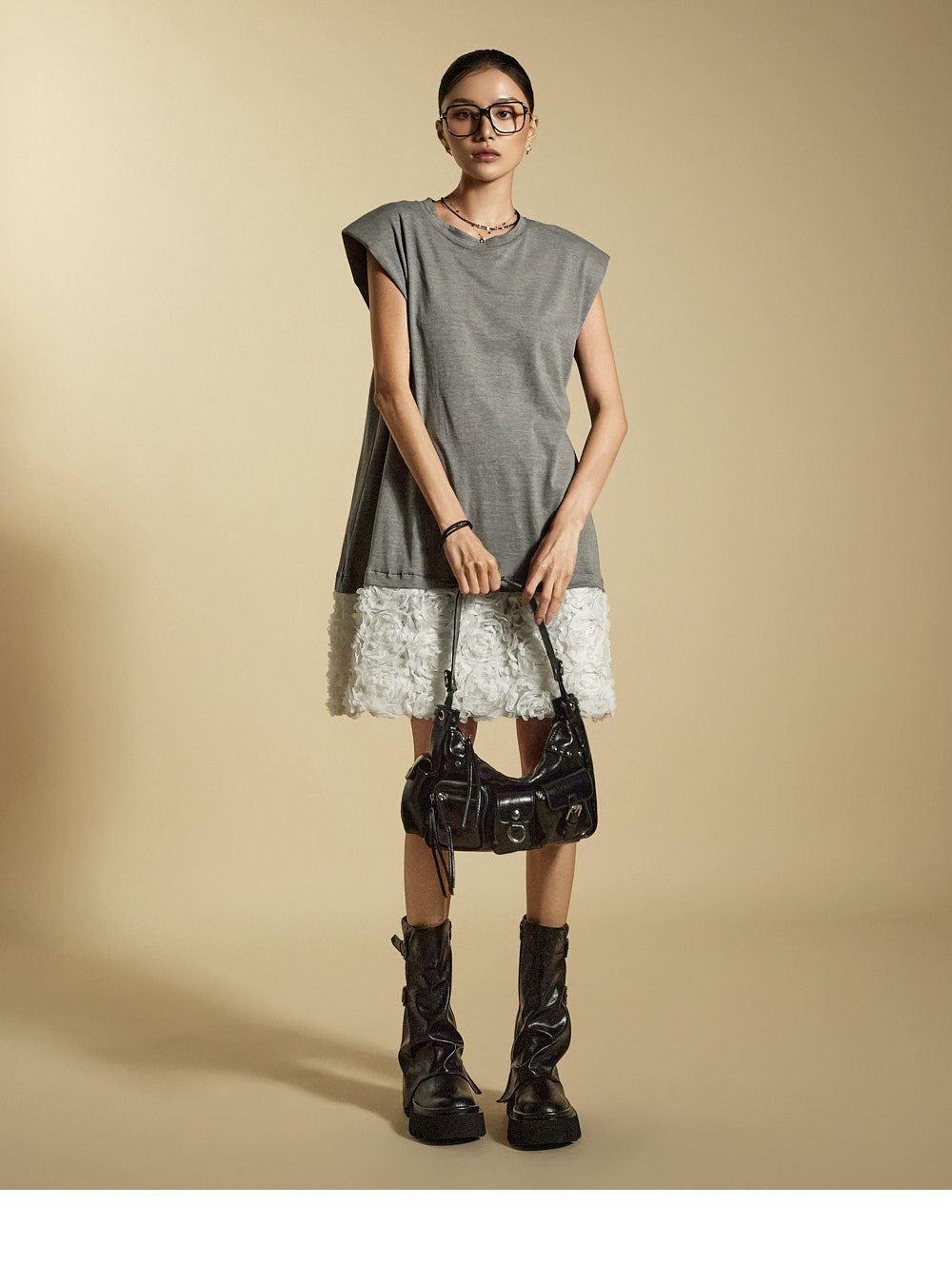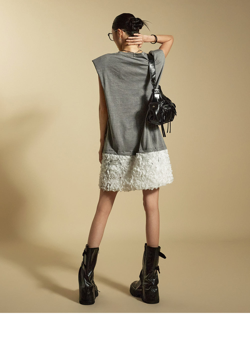 while rose lace details at the hem add a subtle and delicate feminine touch.