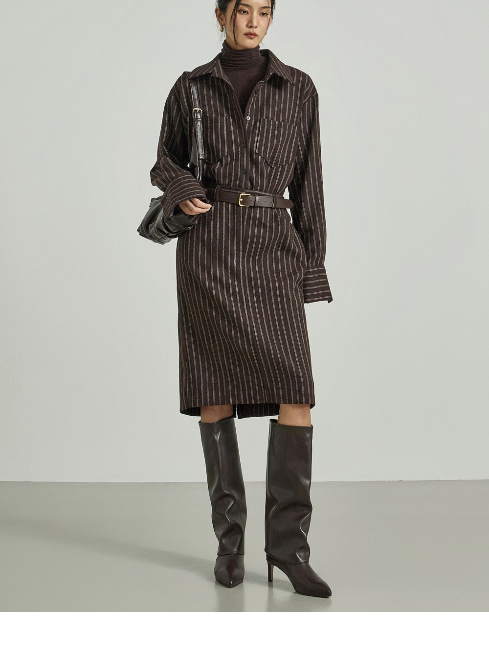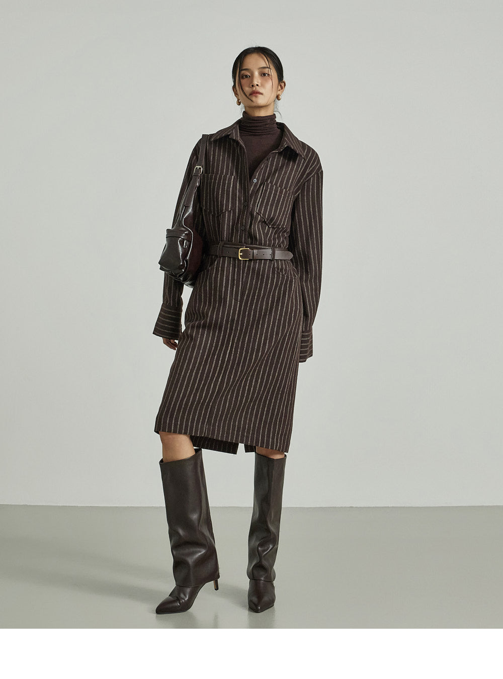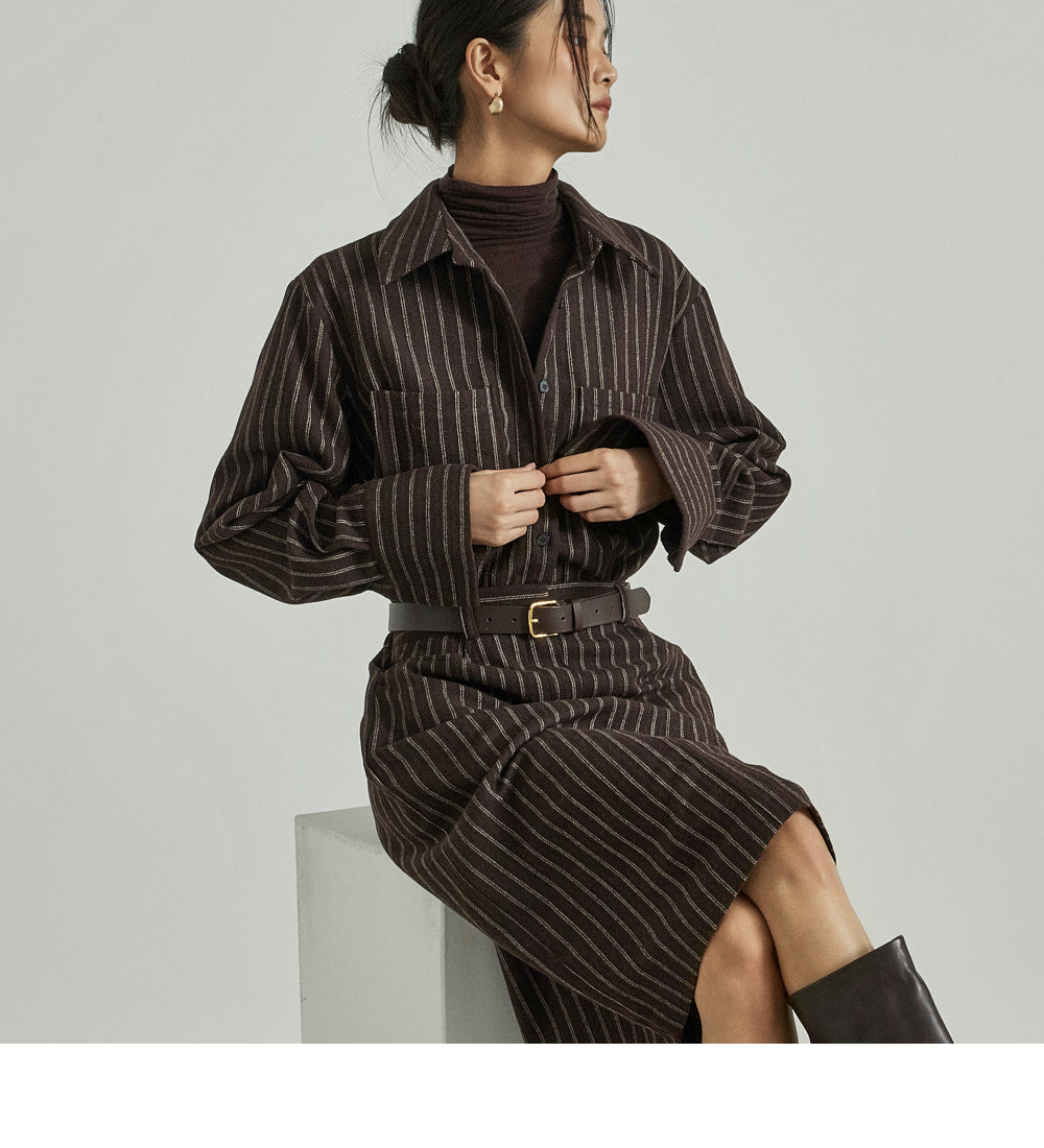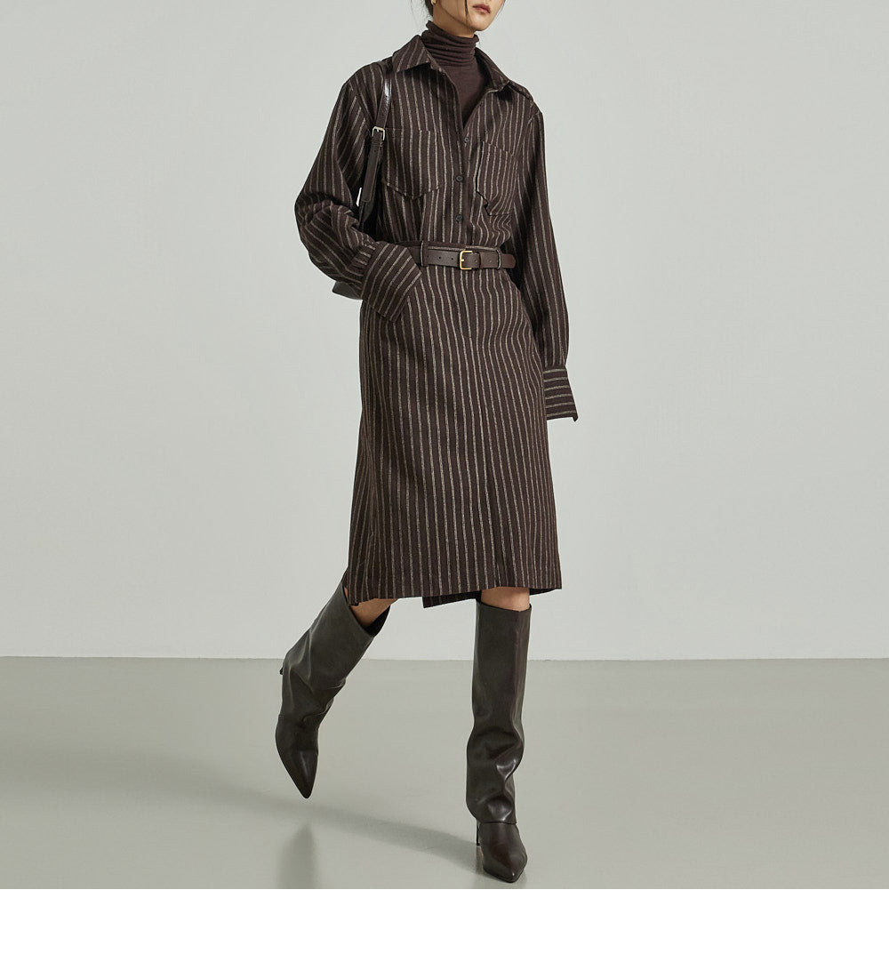 The shirt dress design neatly defines the upper body,