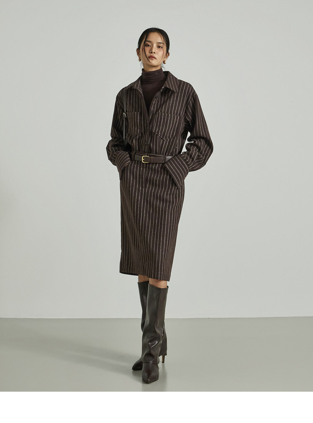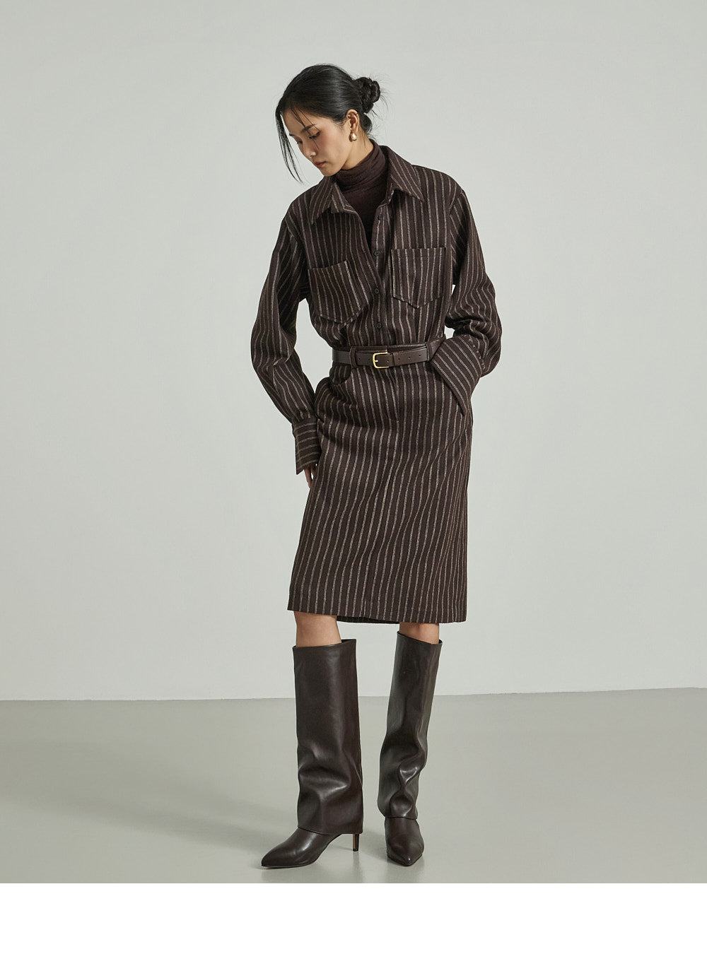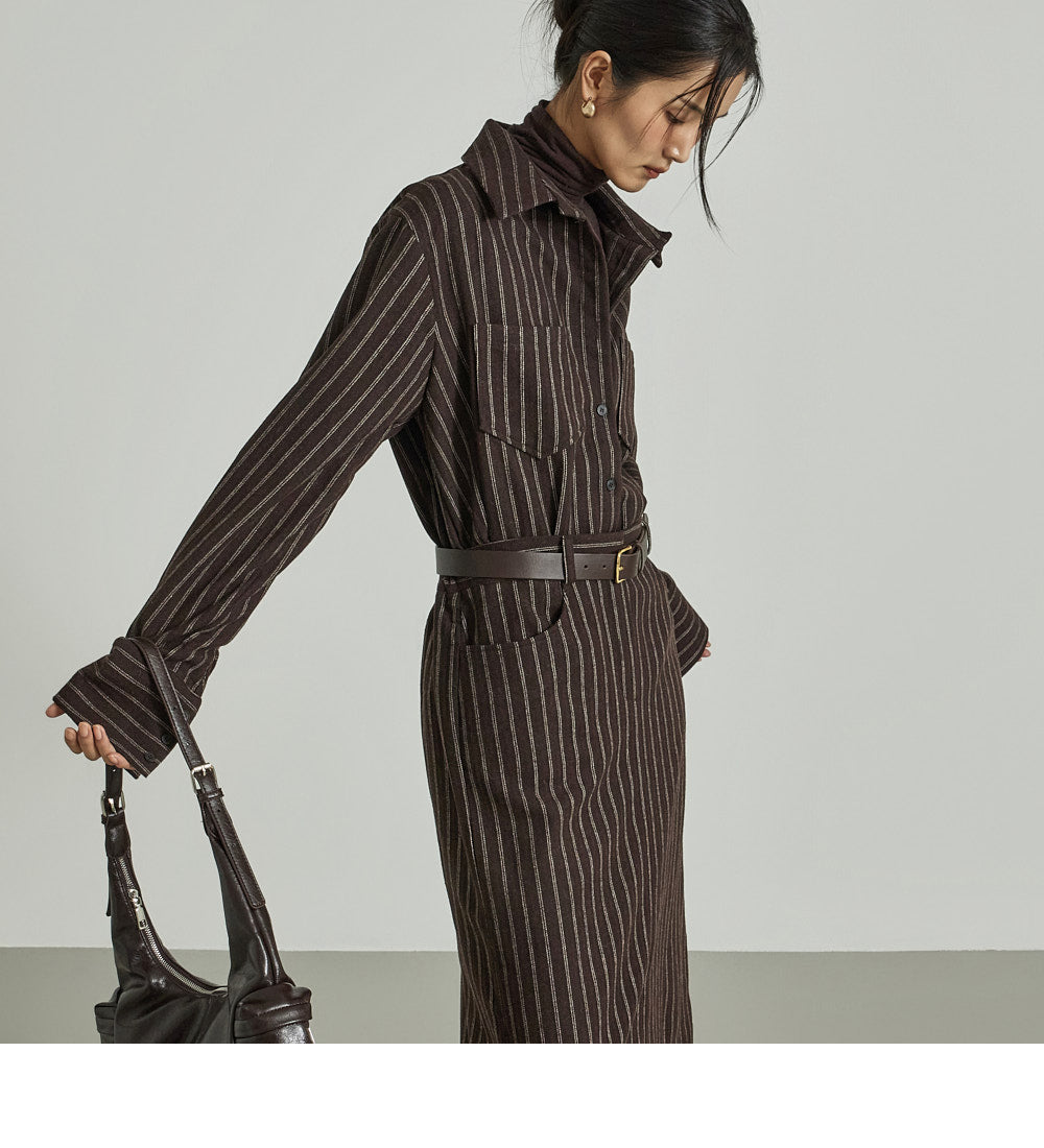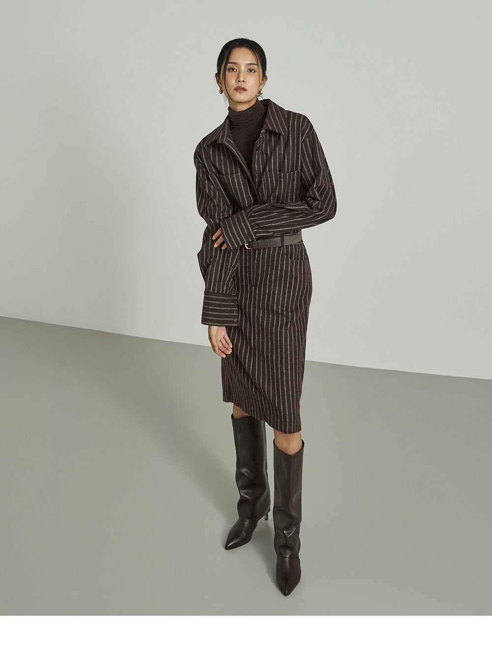 The shirt dress design neatly defines the upper body,