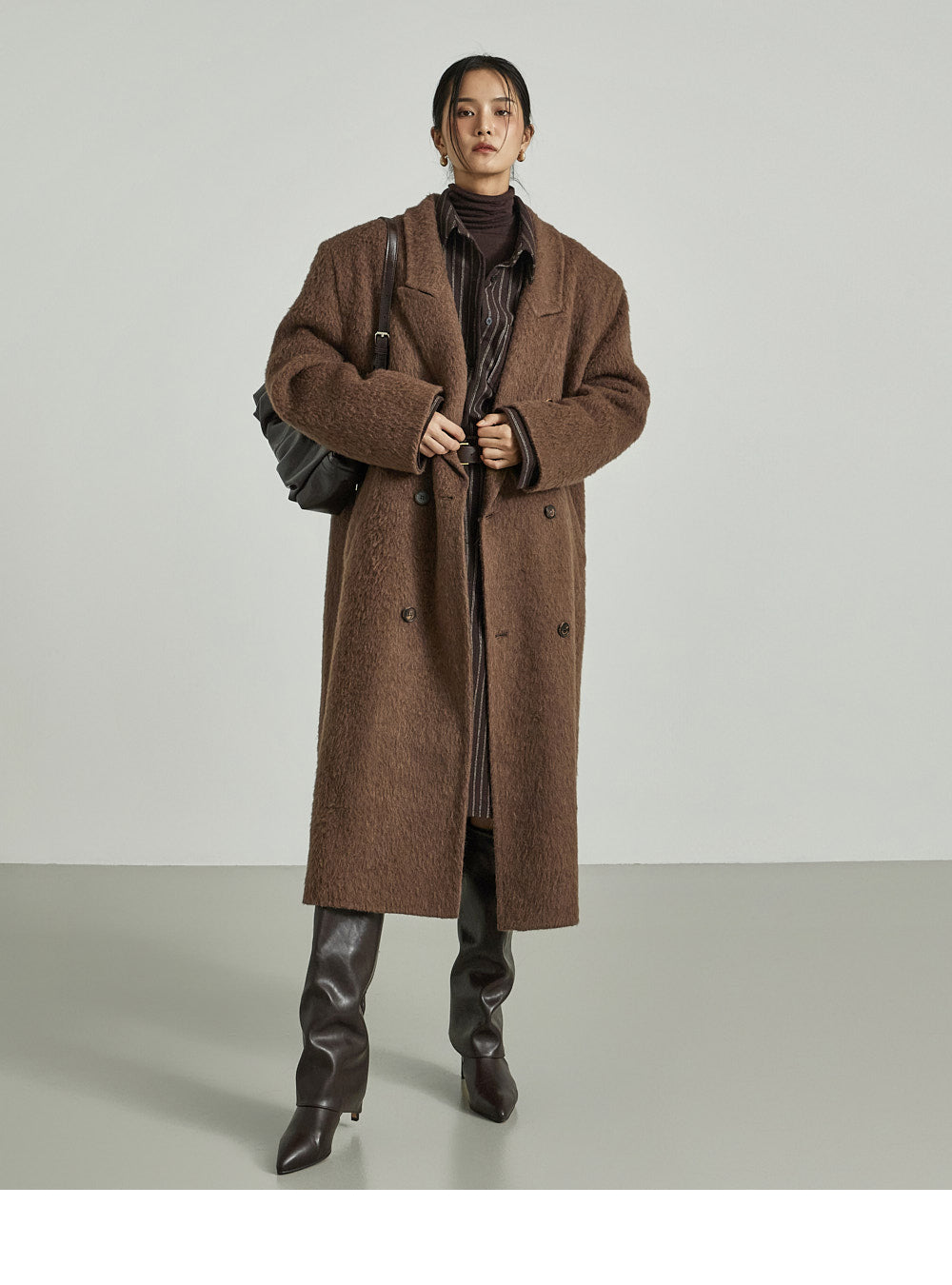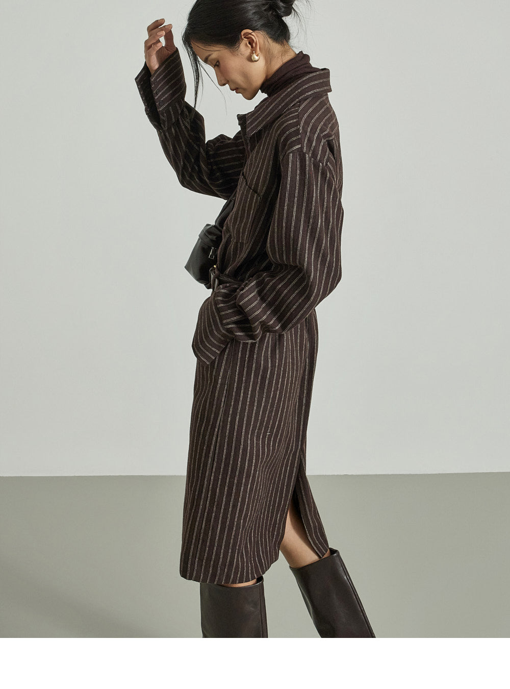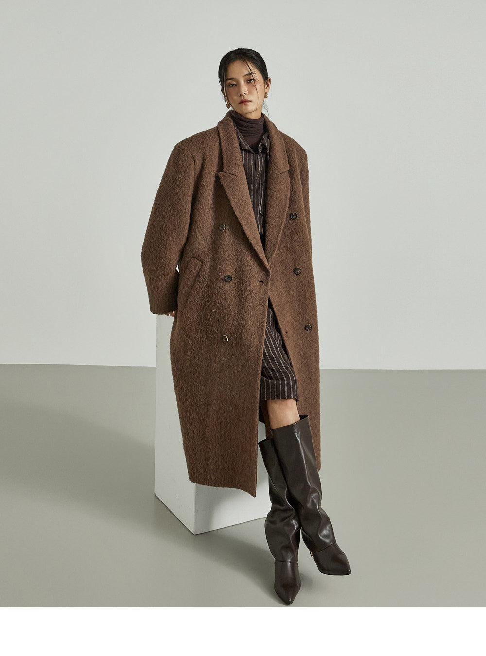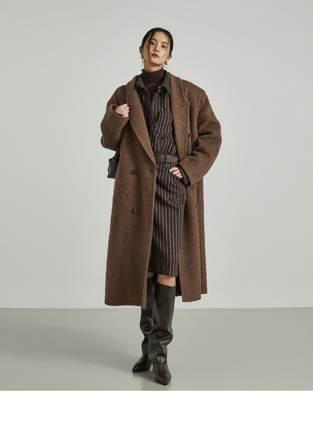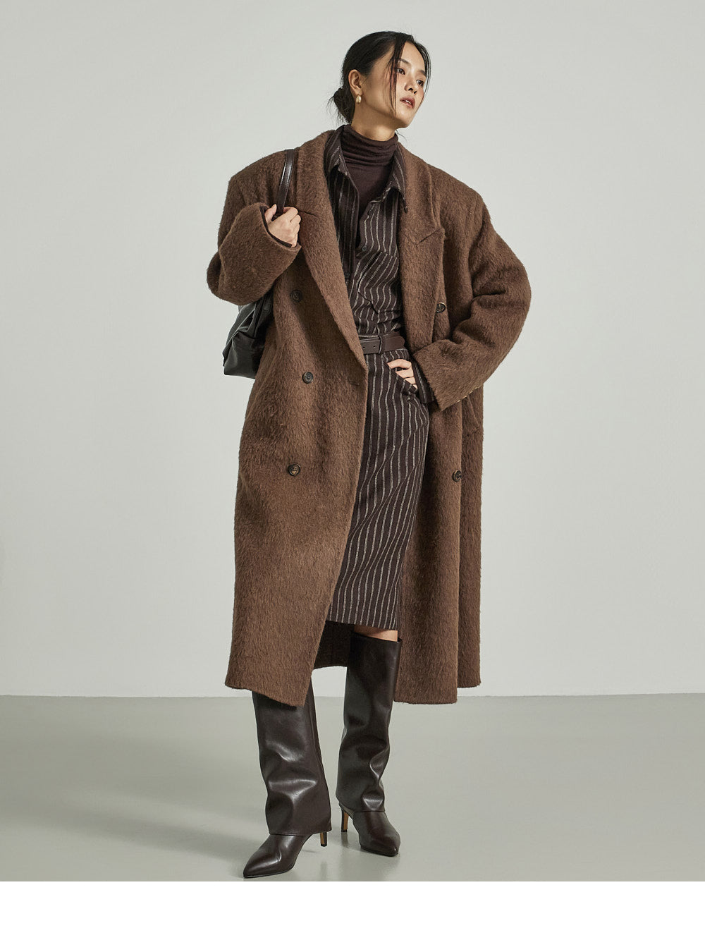 The 173cm model is wearing size ONE in DARK BROWN.