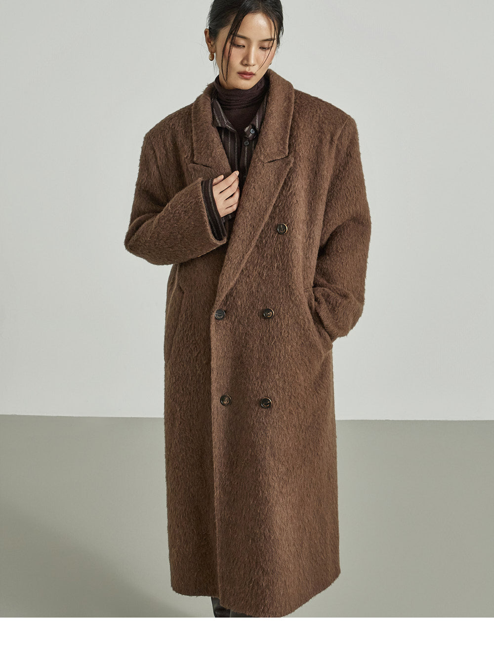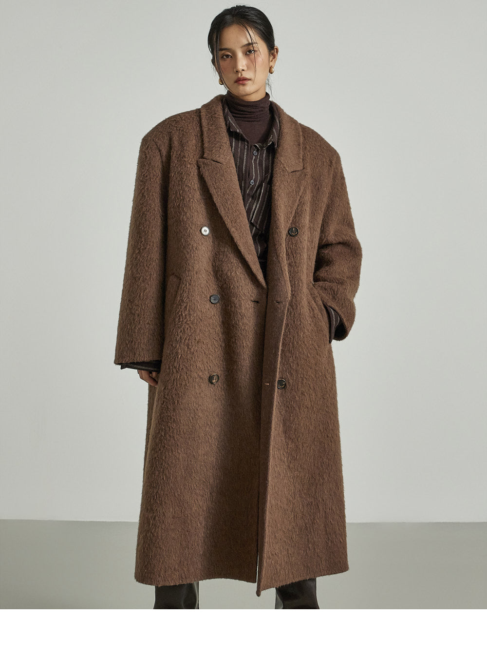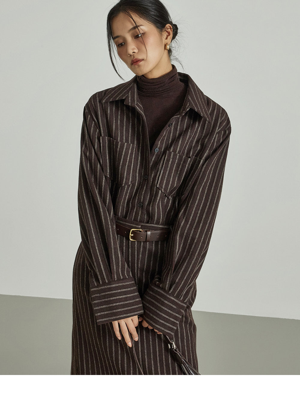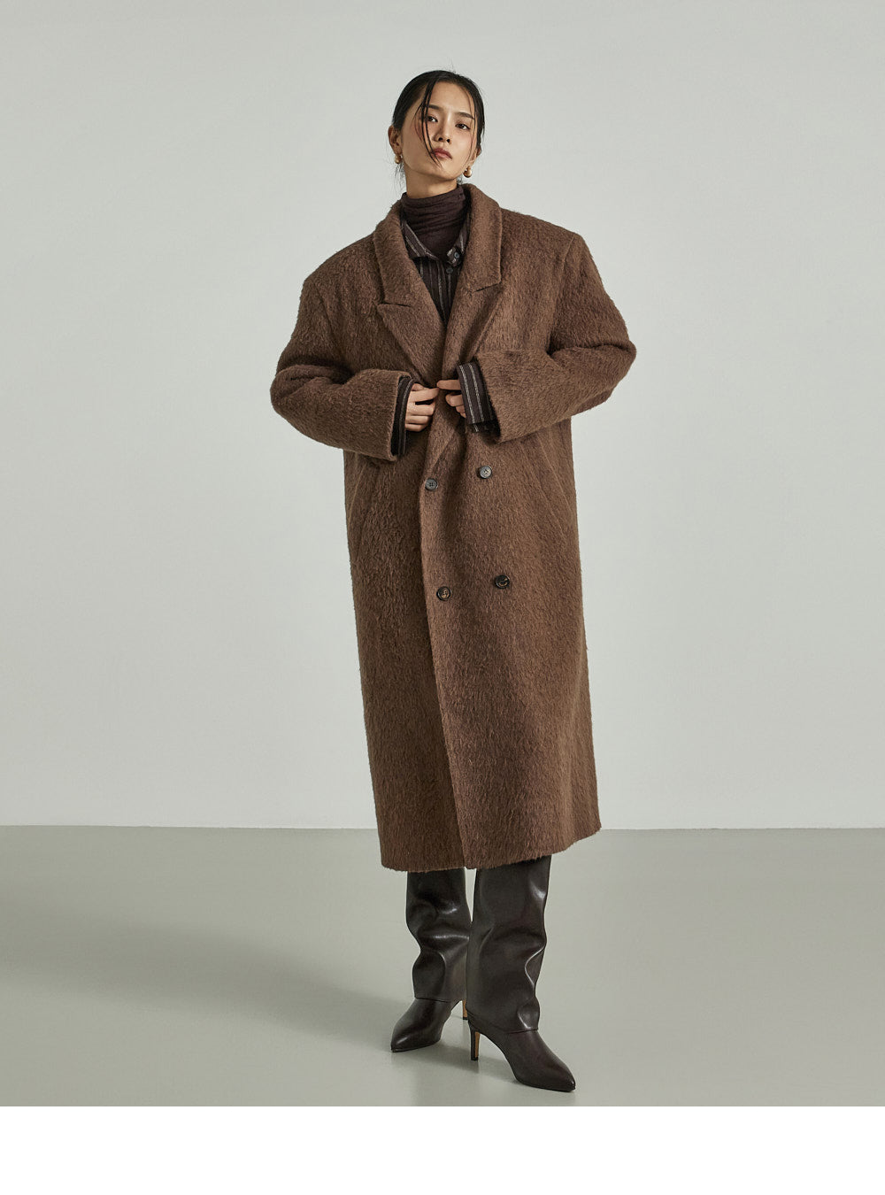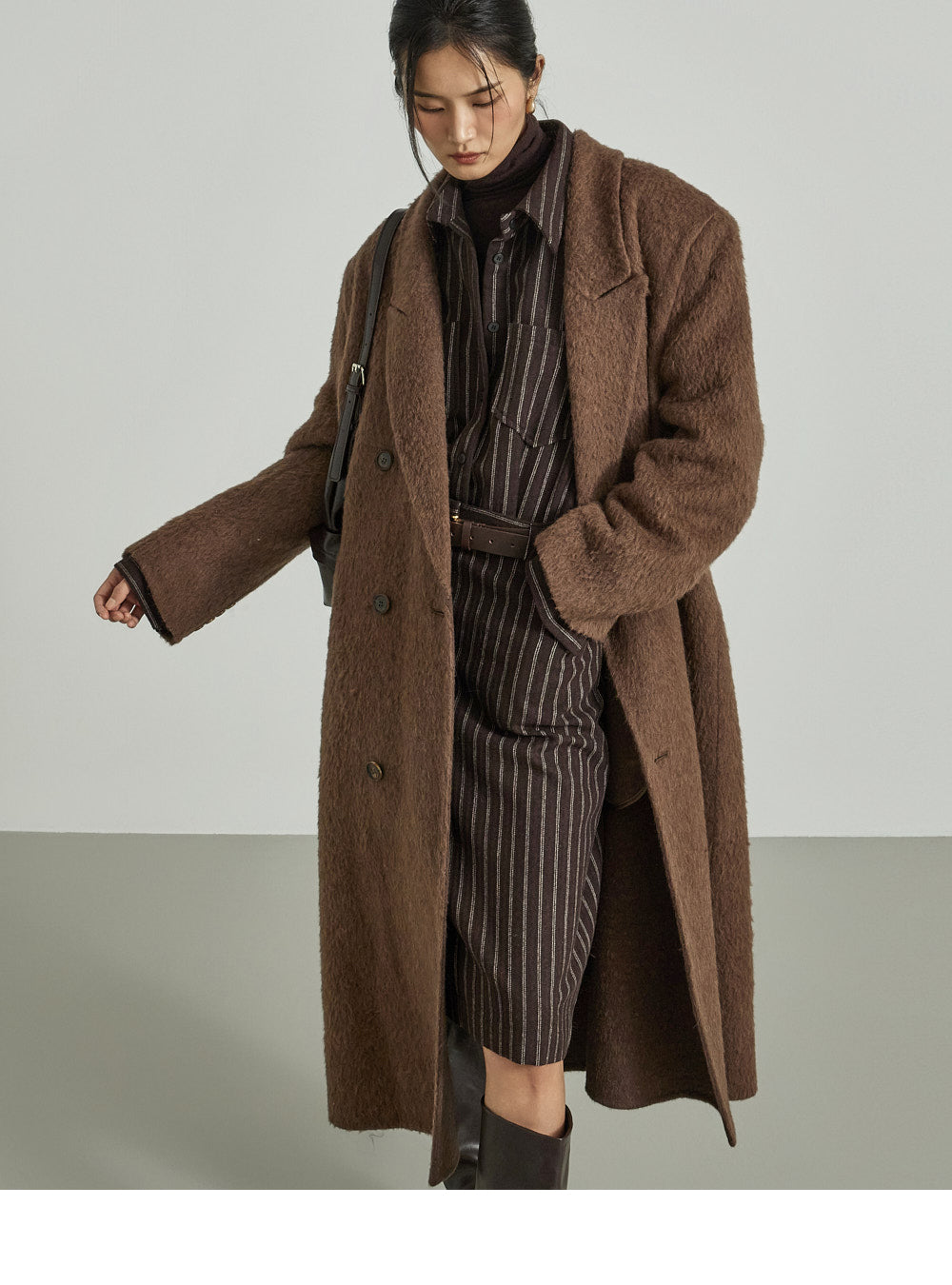 The 173cm model is wearing size ONE in DARK BROWN.