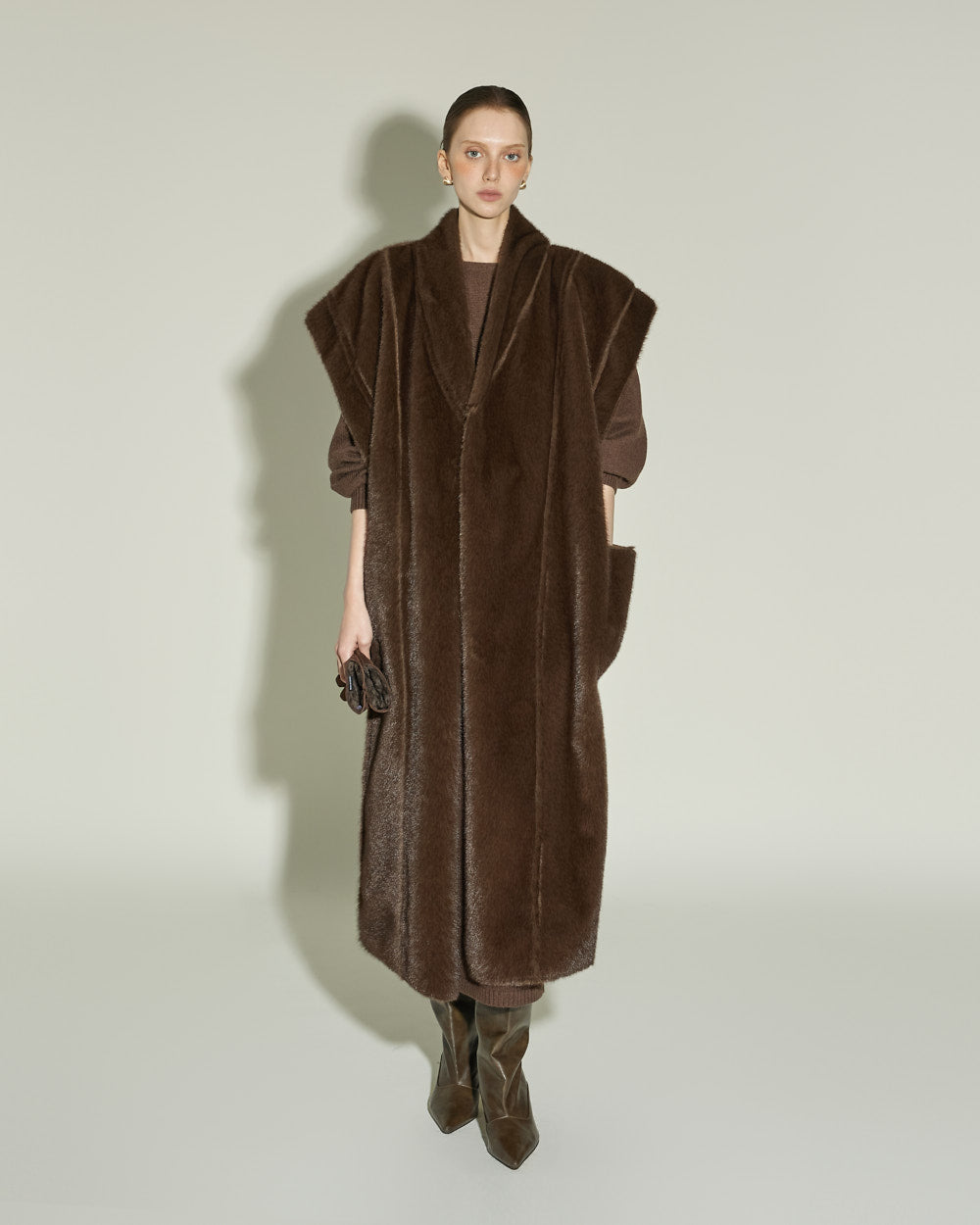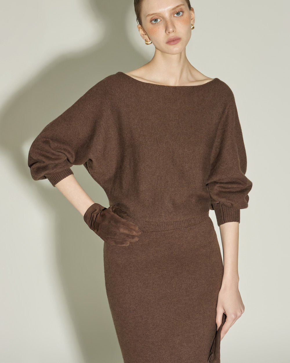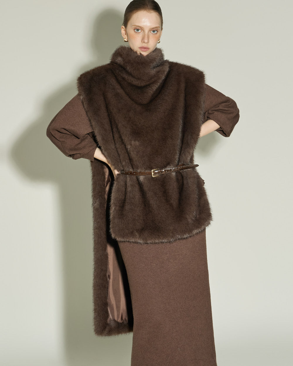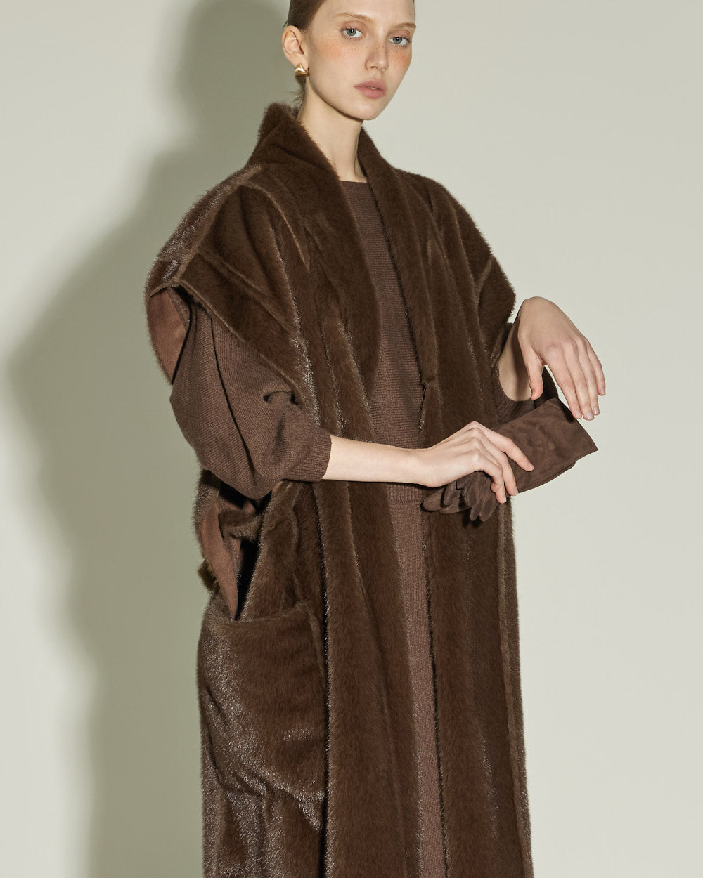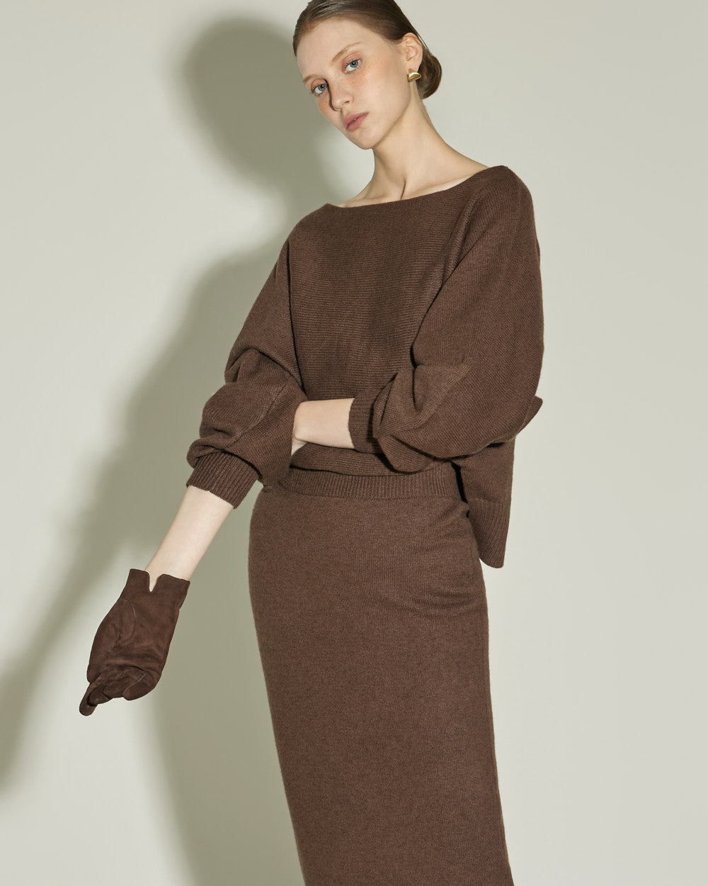 with a slit detail at the back of the waist and a back slit in the skirt,