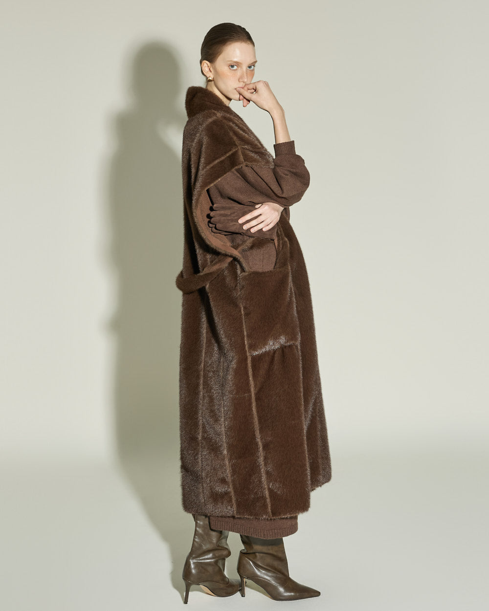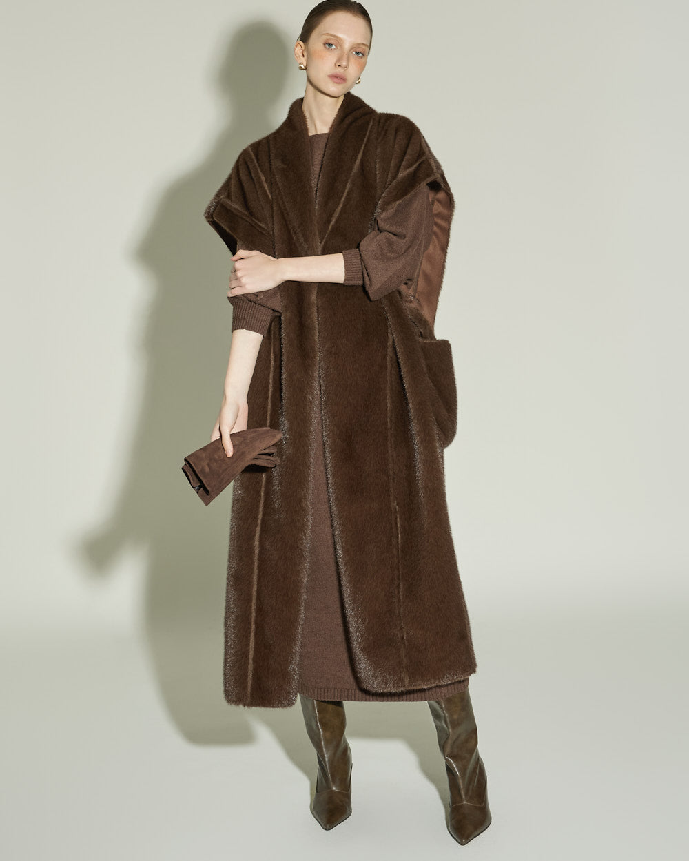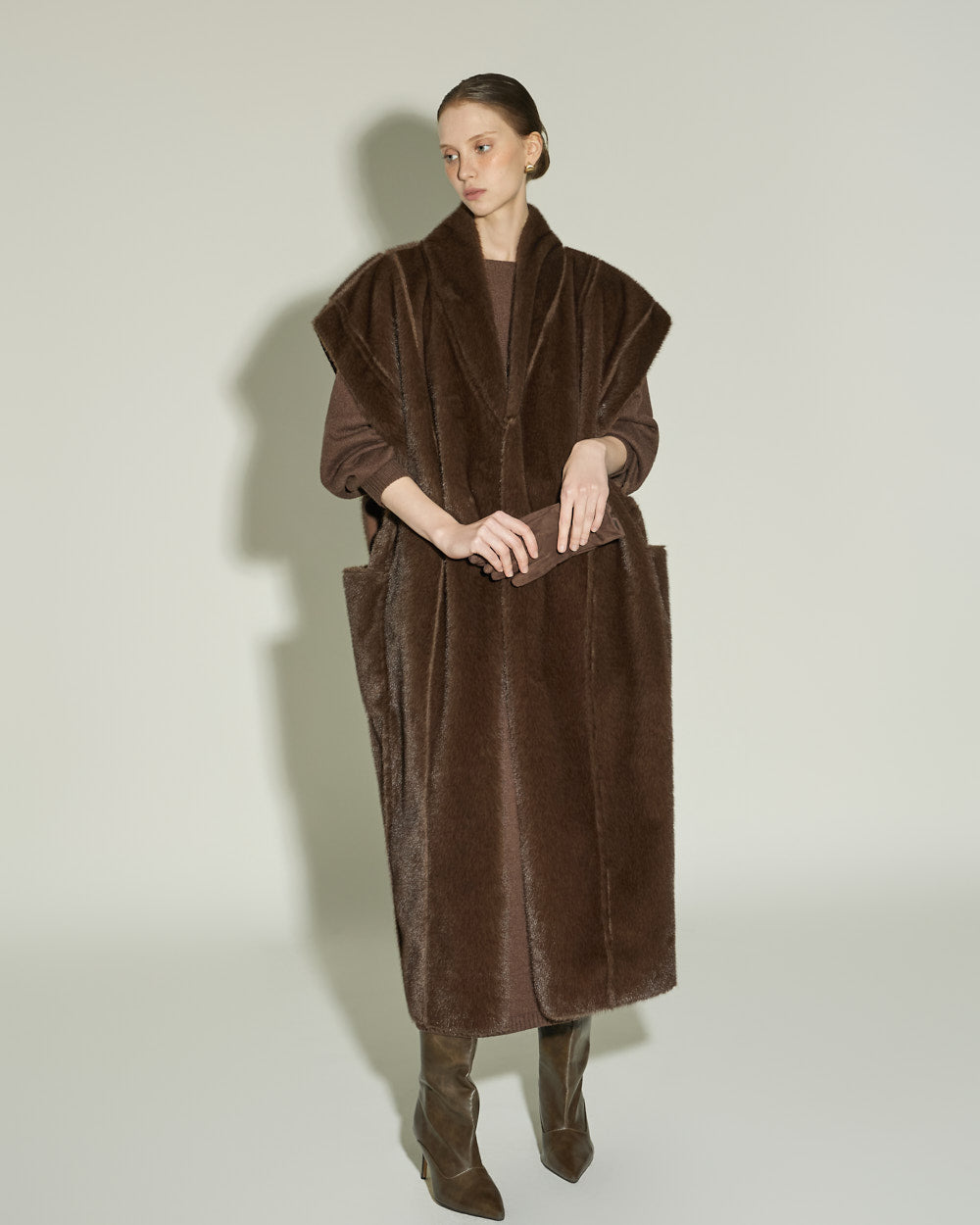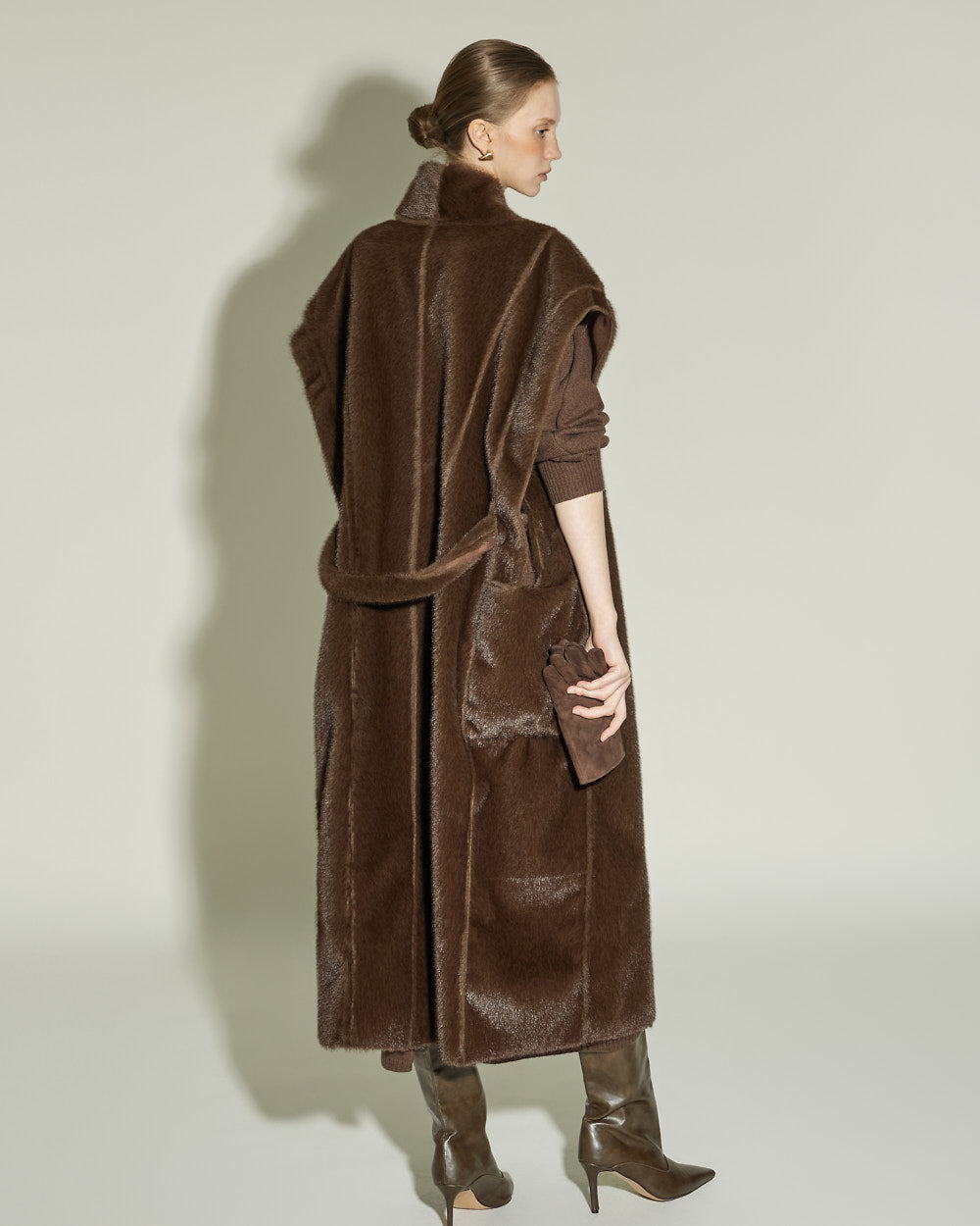 with a slit detail at the back of the waist and a back slit in the skirt,