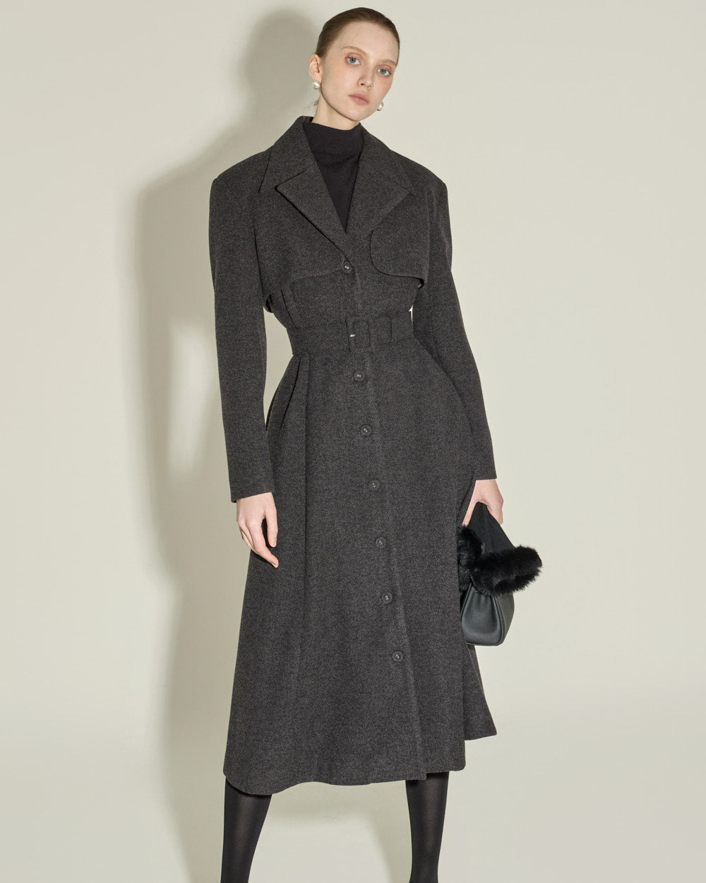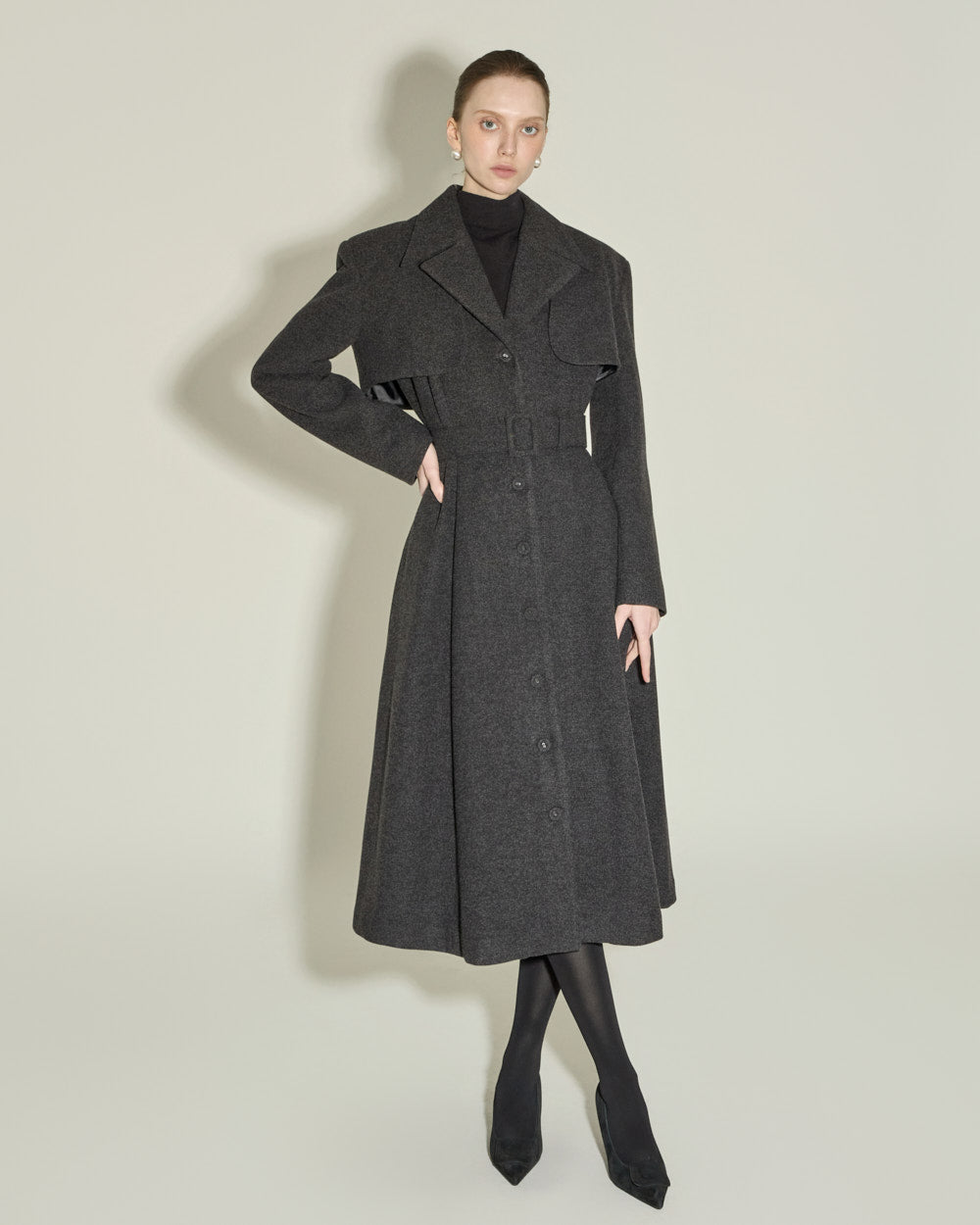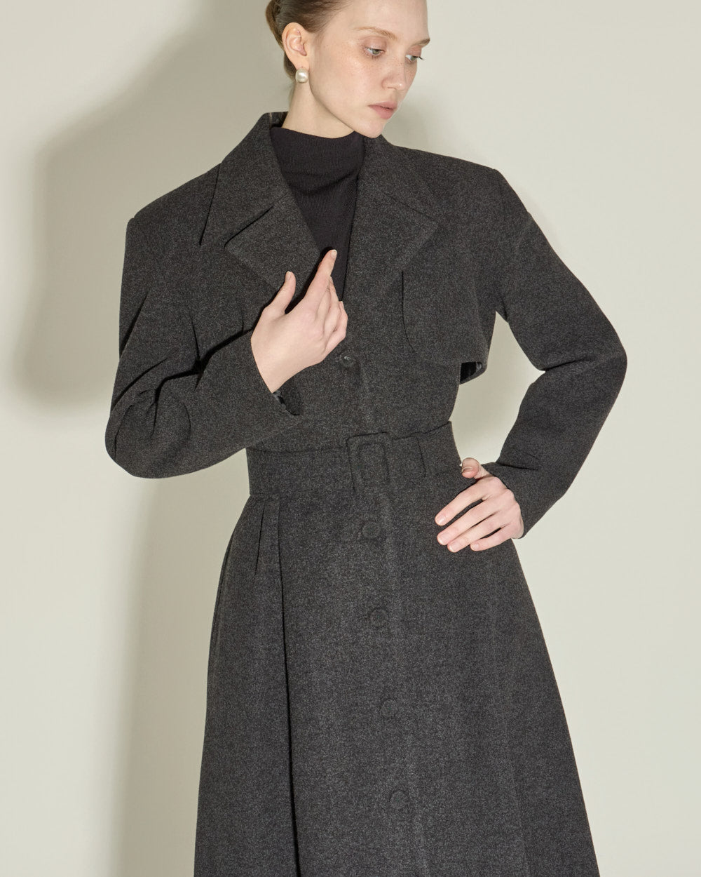 Model is 174cm tall and wearing size ONE, CHARCOAL color.