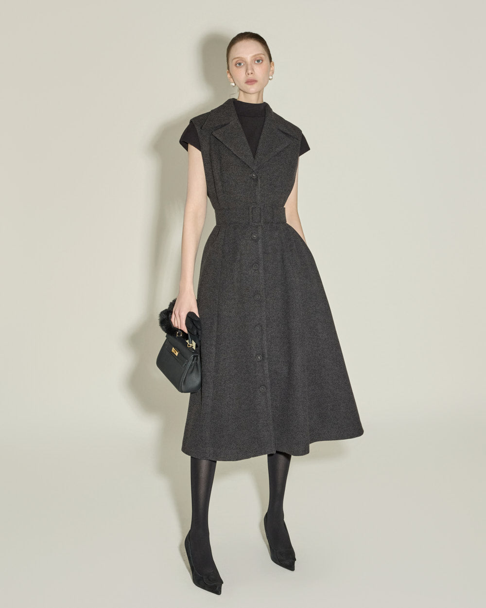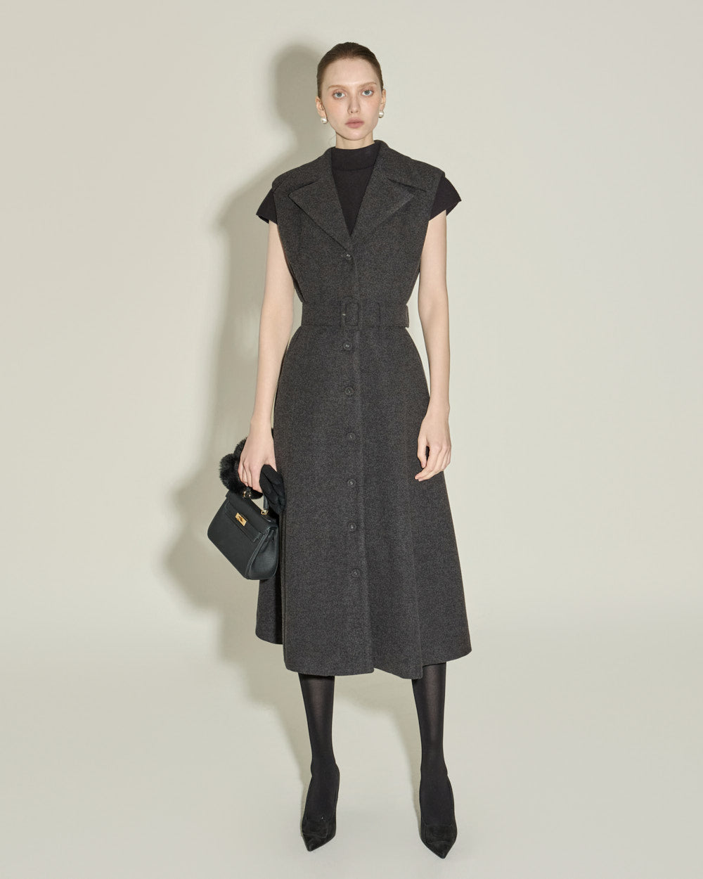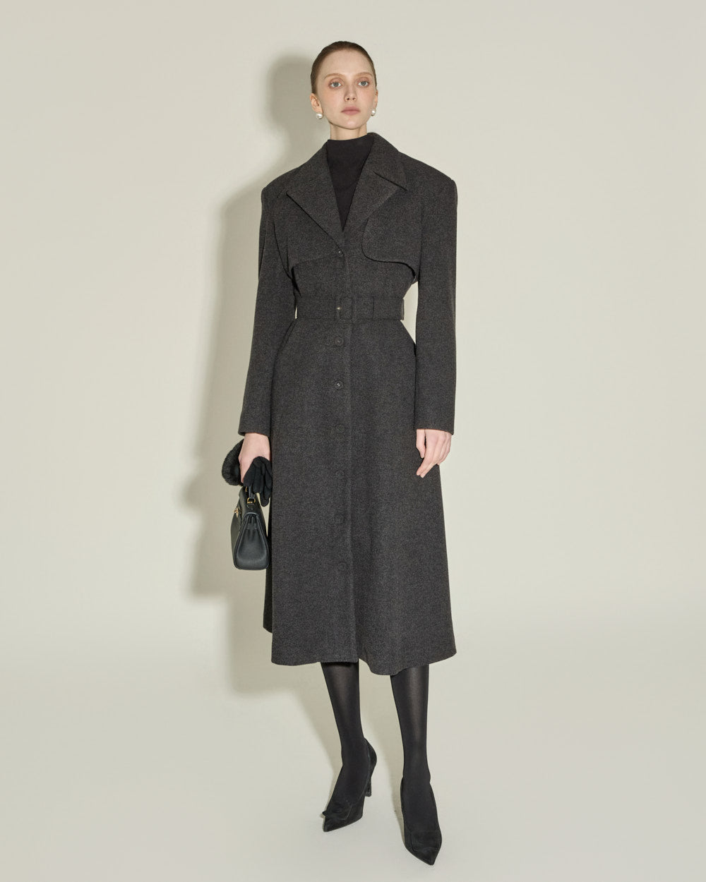 Model is 174cm tall and wearing size ONE, CHARCOAL color.
