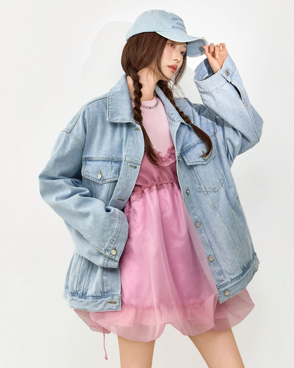The balloon-fit silhouette creates a voluminous silhouette,