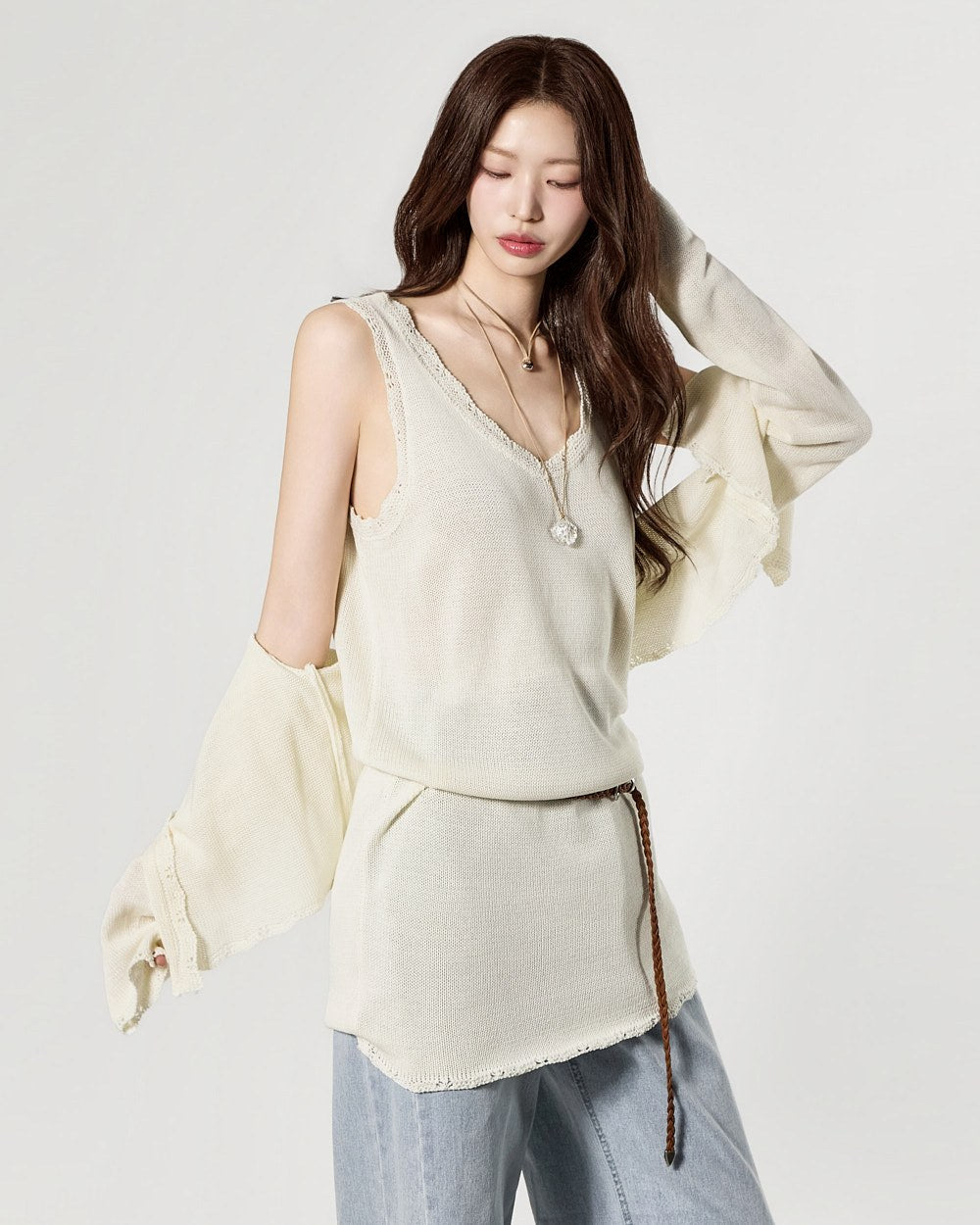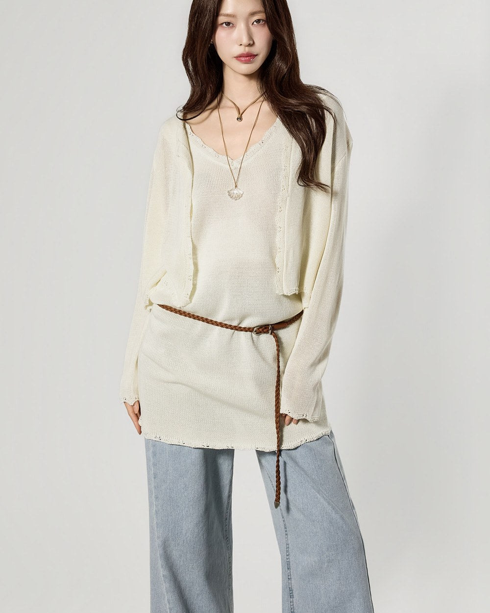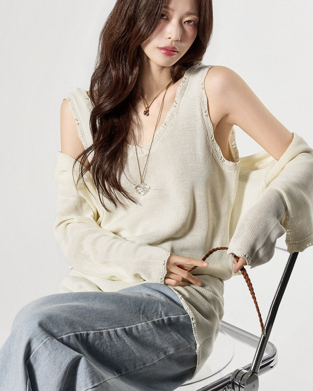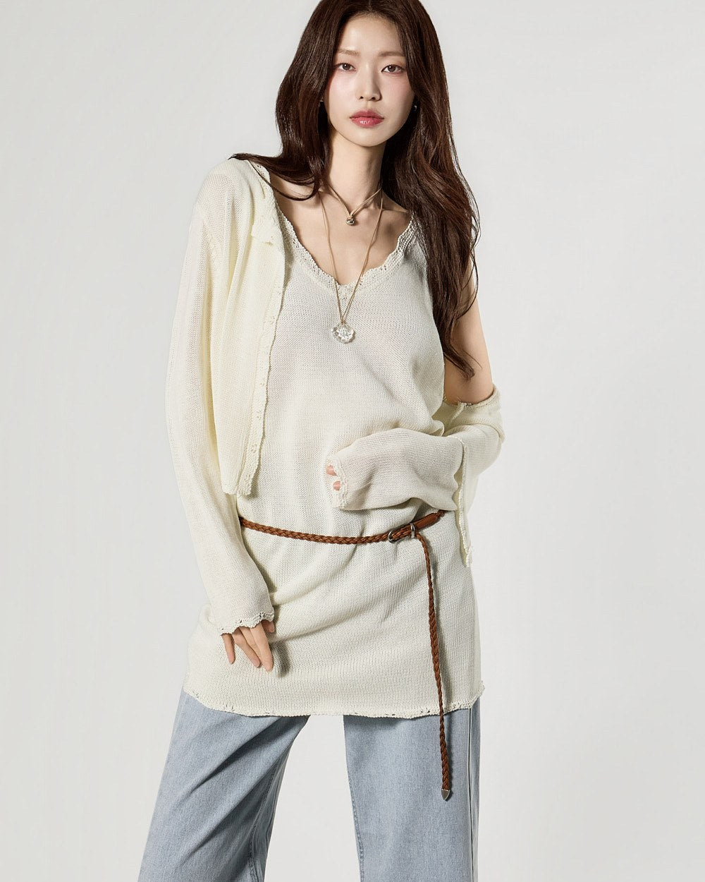 カーディガンは単独でも、セットとしてもスタイリングでき、