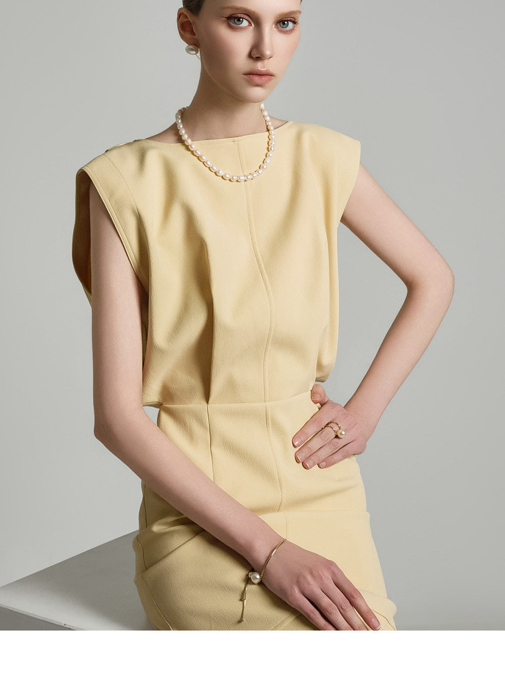 スリムフィットとノースリーブデザインの組み合わせ