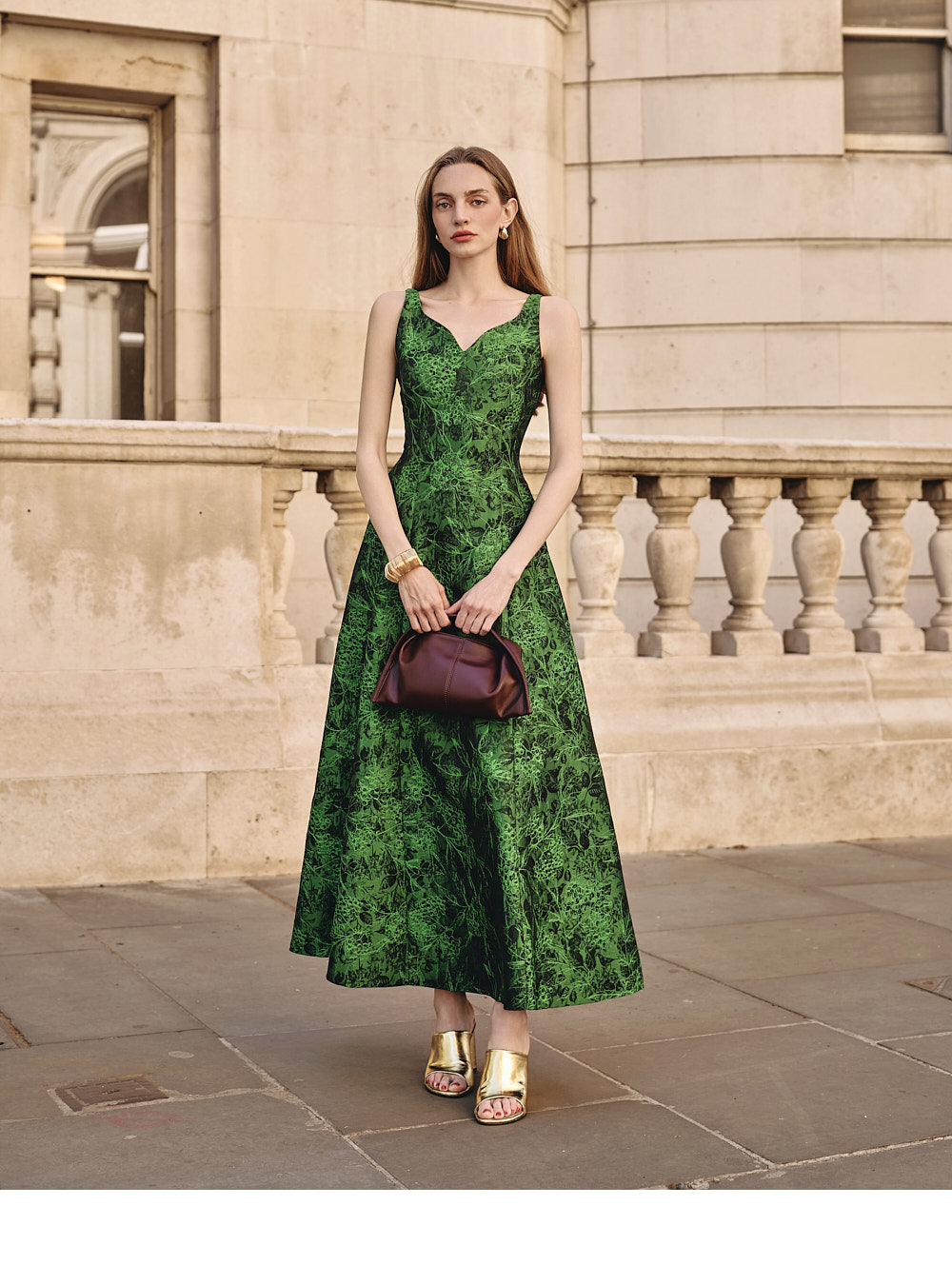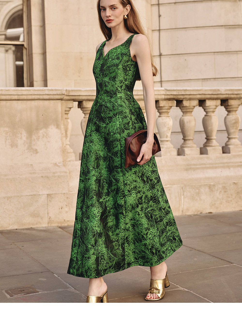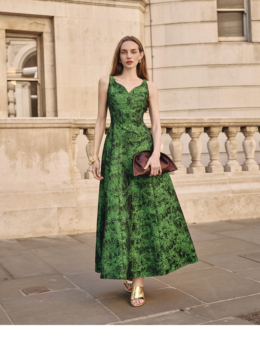 このドレスは贅沢で洗練された雰囲気を体現しています。