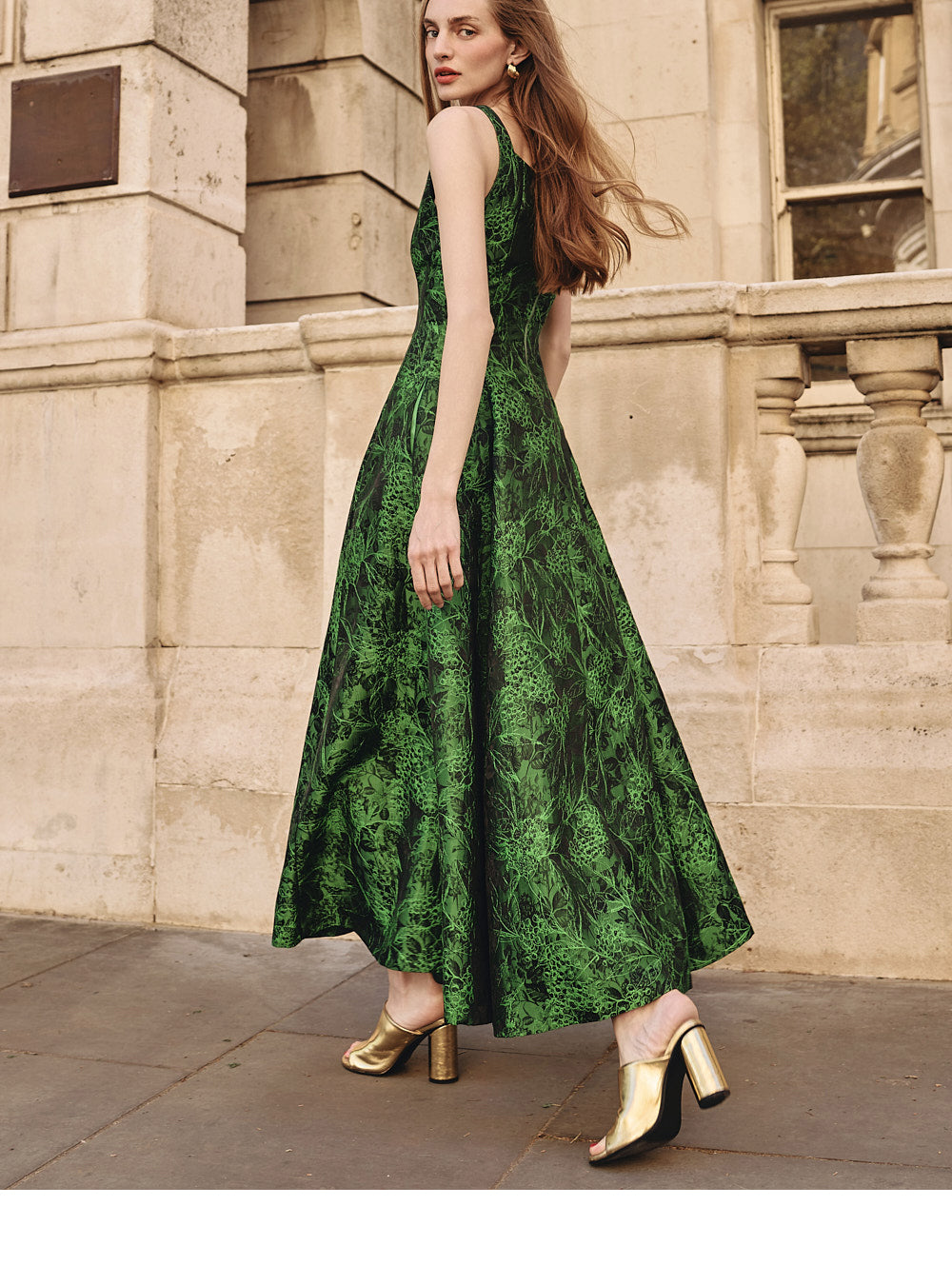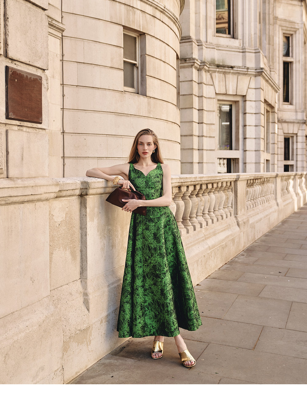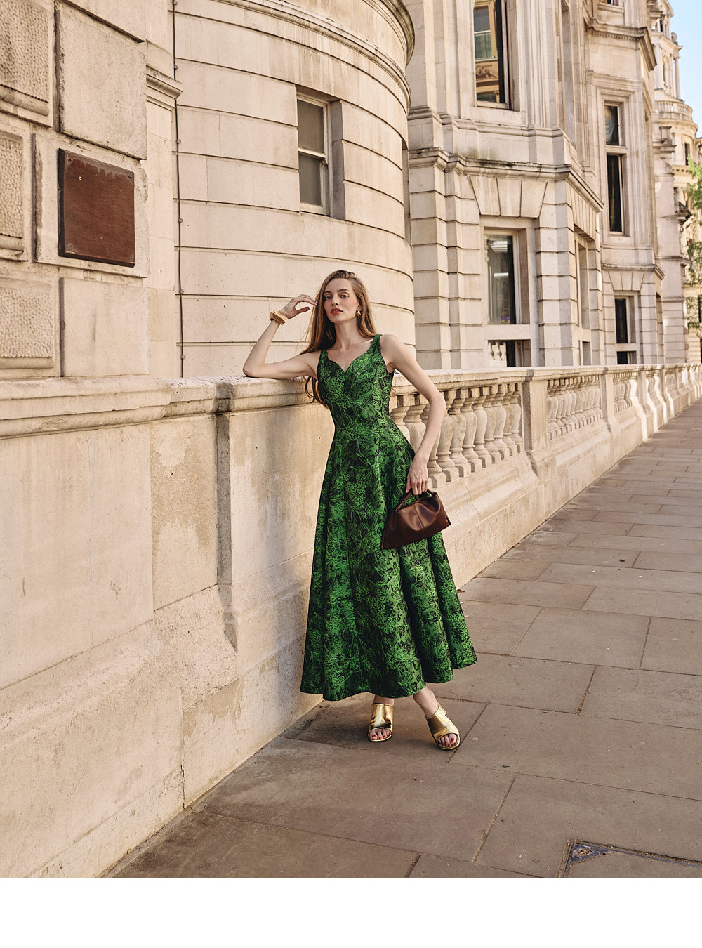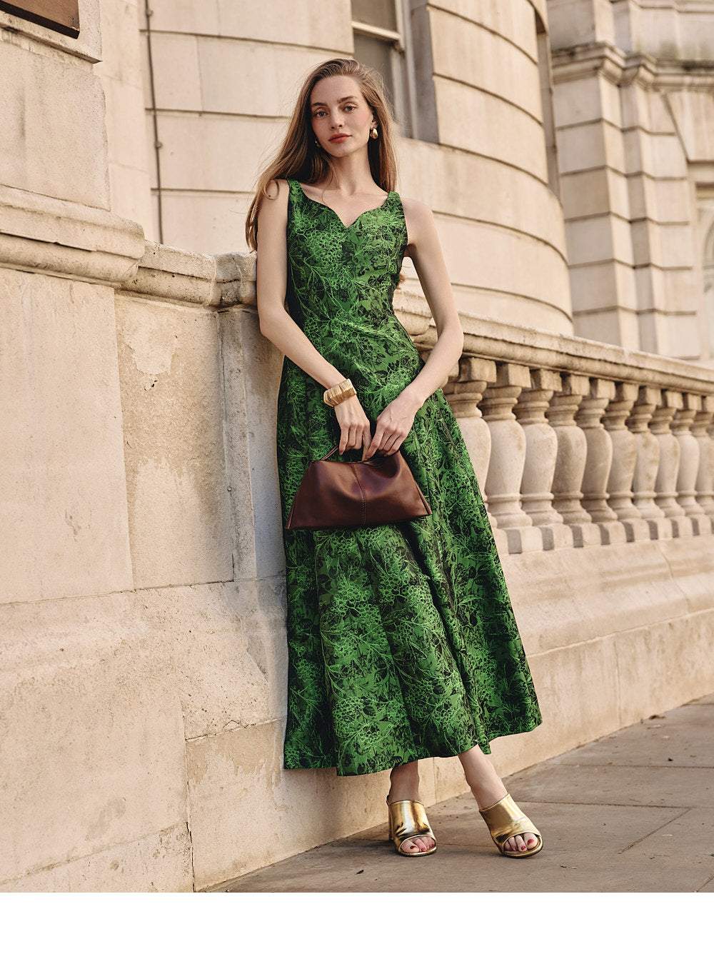 このドレスは贅沢で洗練された雰囲気を体現しています。