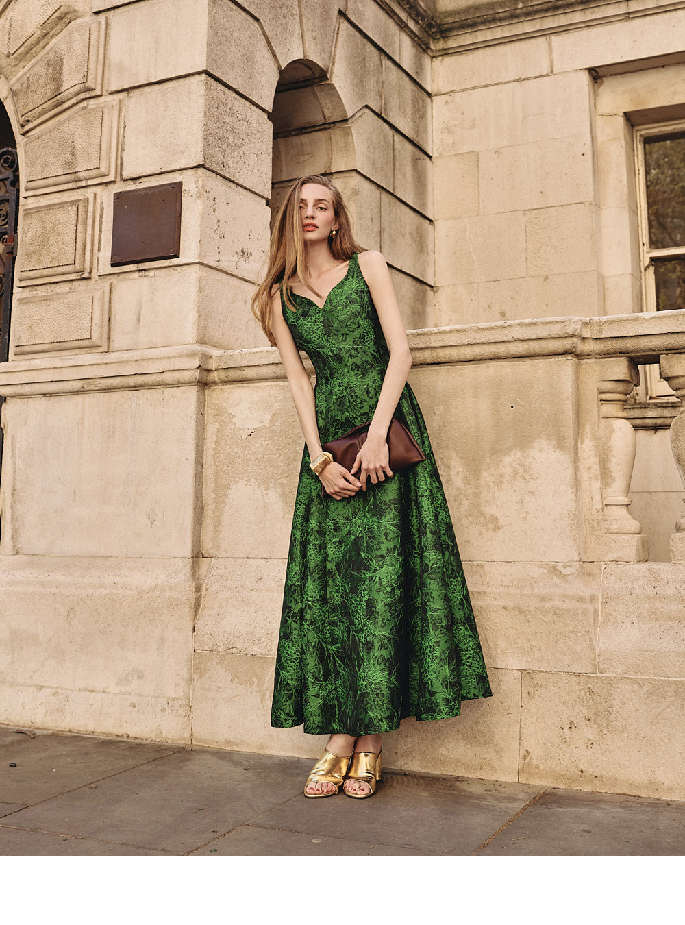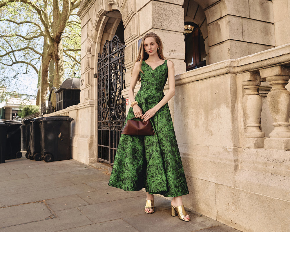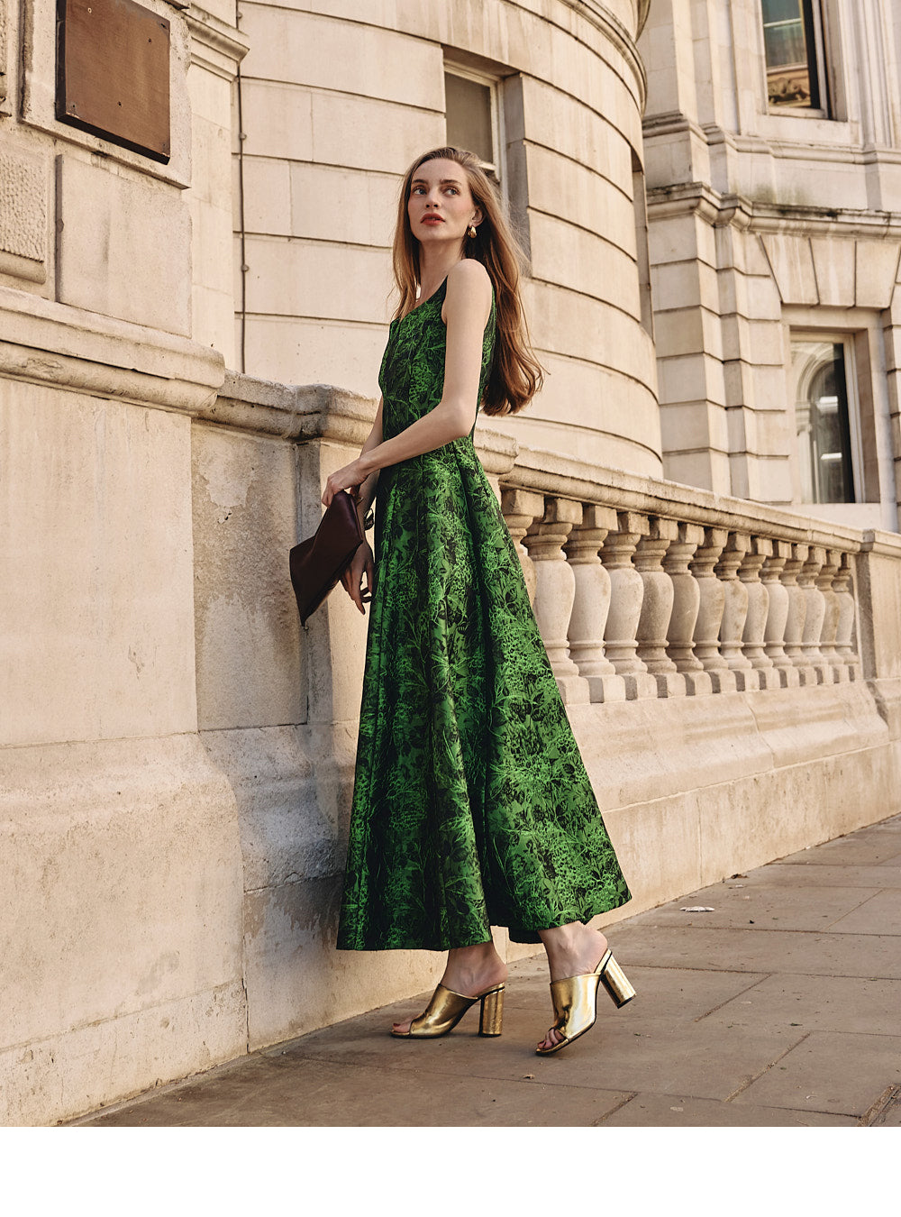 このドレスはどんなスタイルも引き立てる、目立つ一品です。