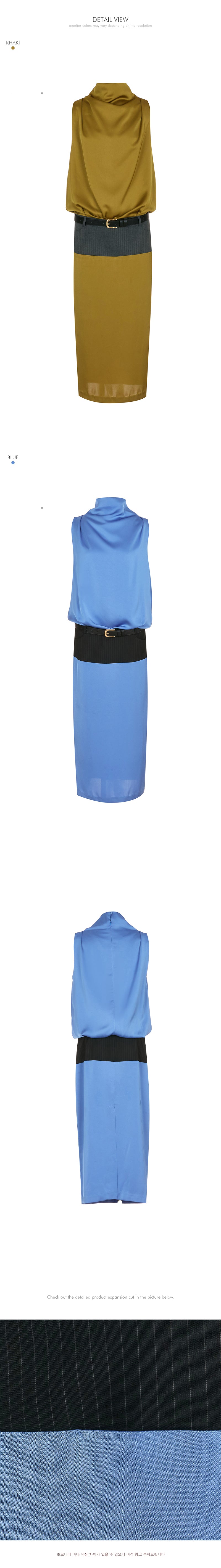 D9552 ベルト付きサテンドレス