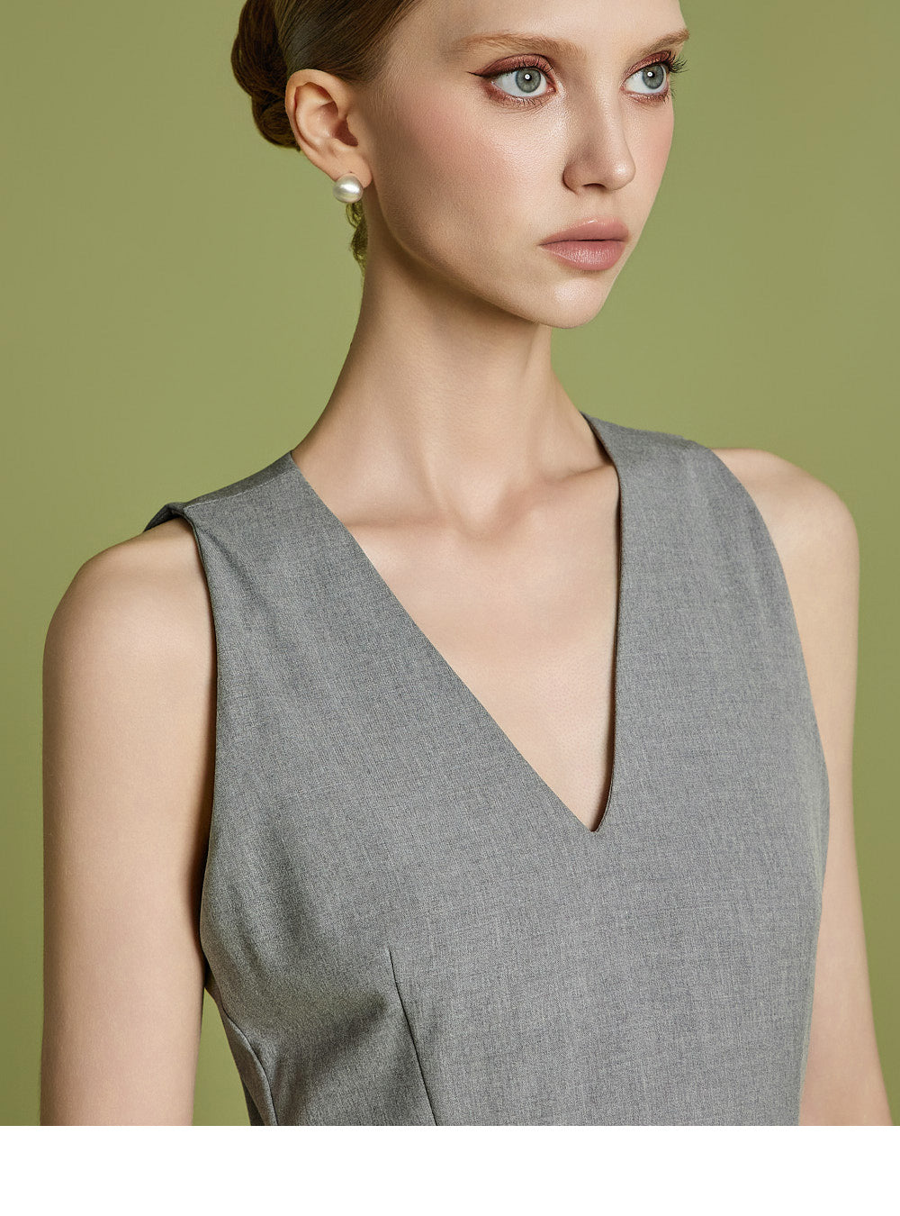 Vネックラインがネックラインを美しく引き立て、