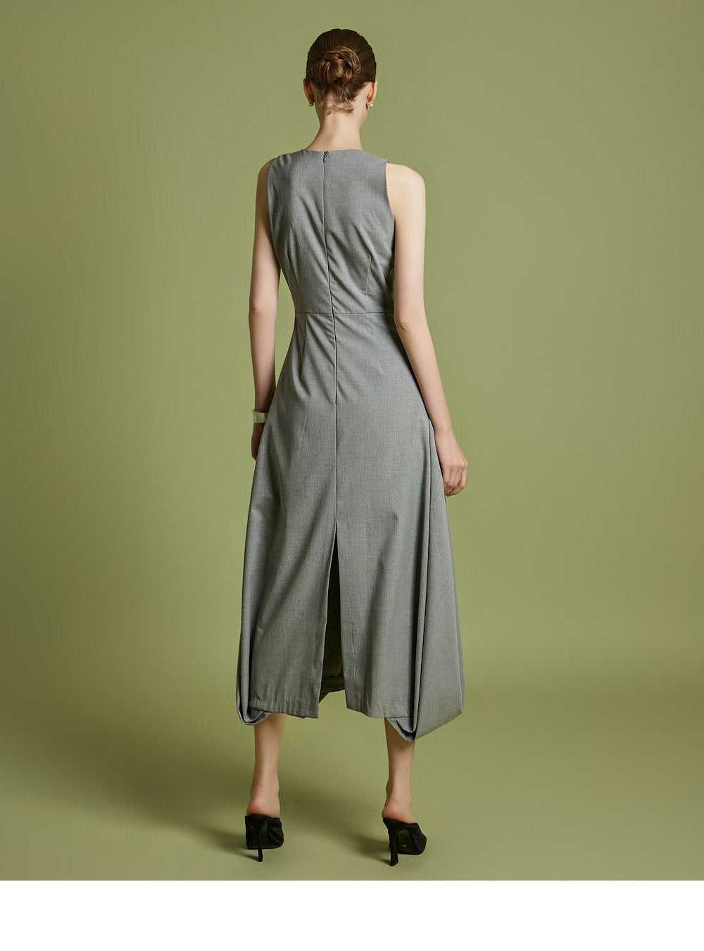ミディ丈の裾とバックスリットが、