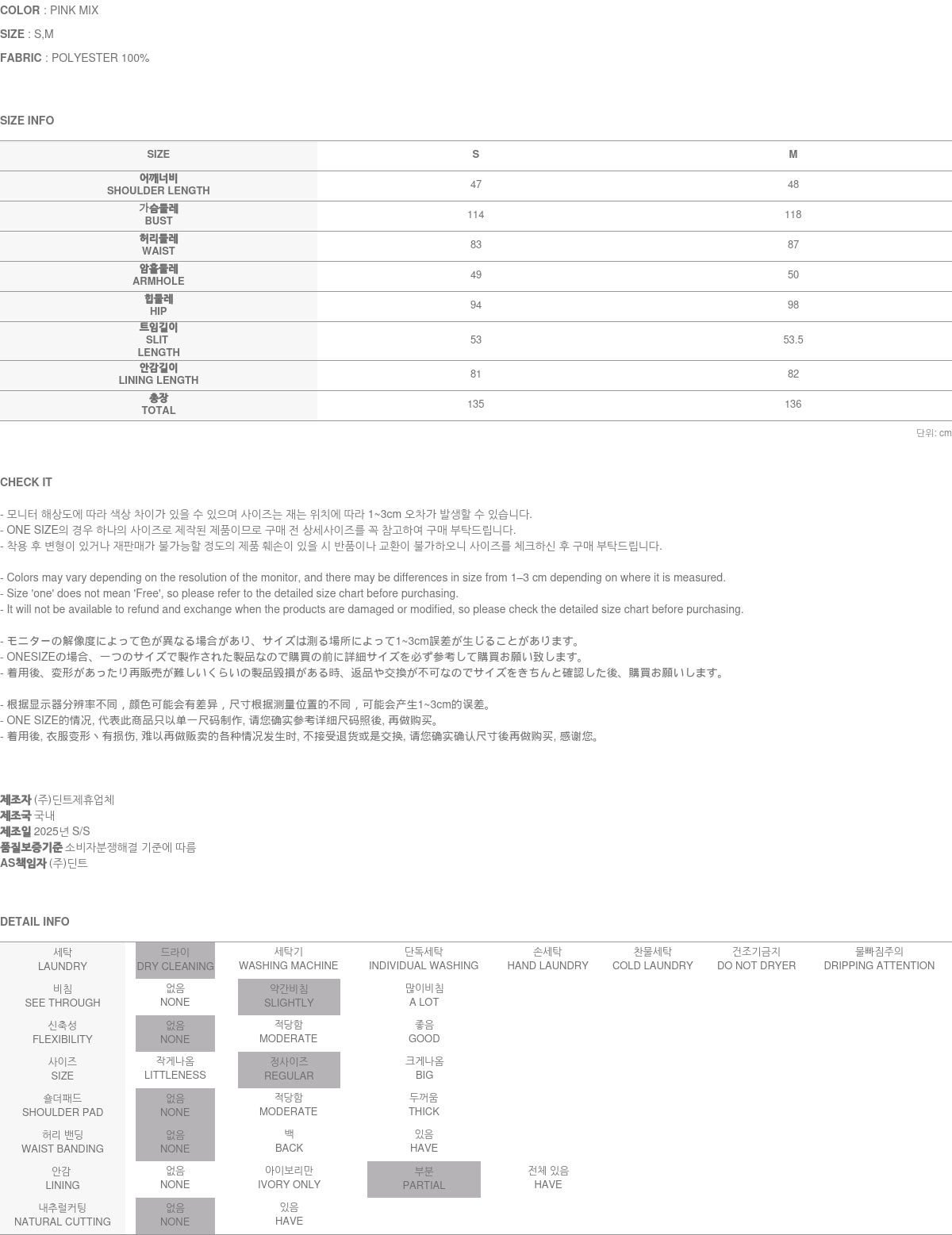 モデルの身長は174cmで、ピンクミックスのSサイズを着用しています。