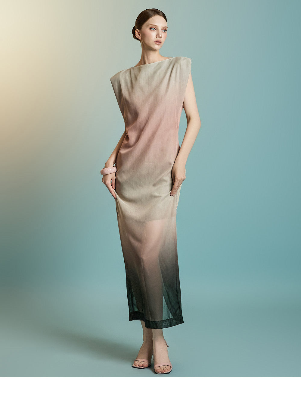 D9555 グラデーション シアー ドレス