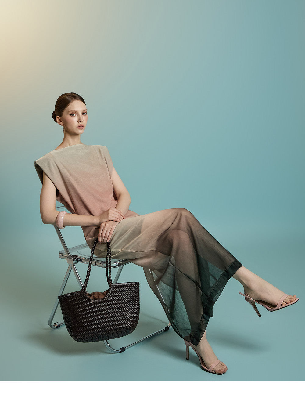 このシースルードレスはエレガントで優雅な雰囲気を醸し出します。