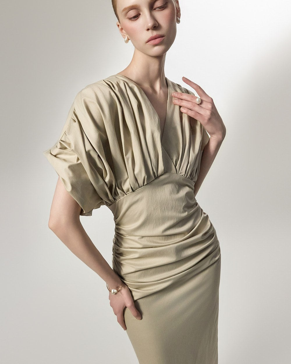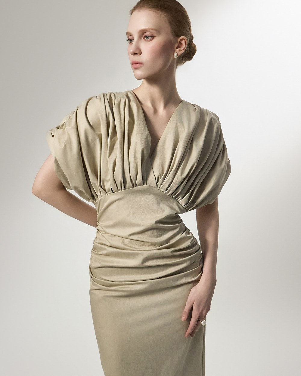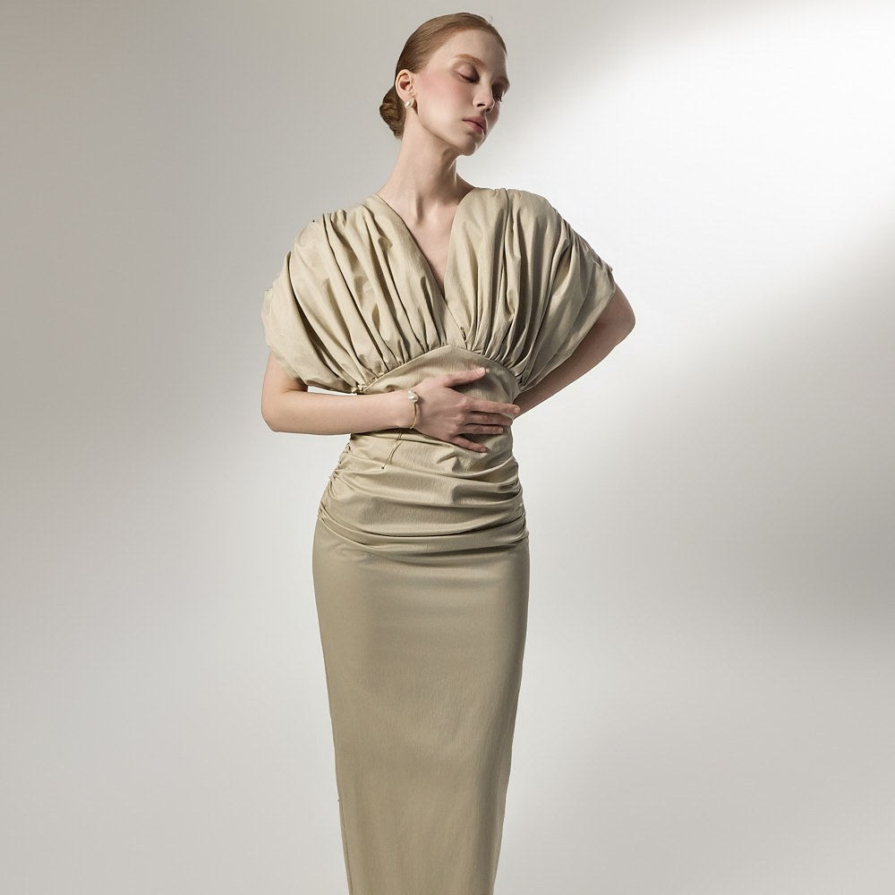 D9603 ドレープVネックドレス