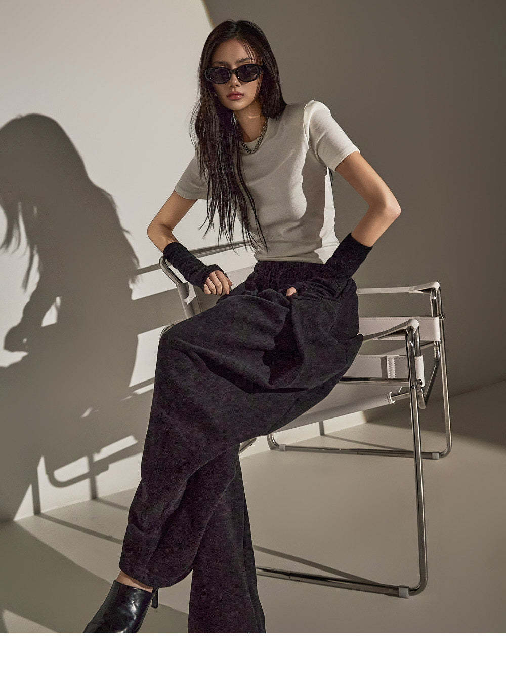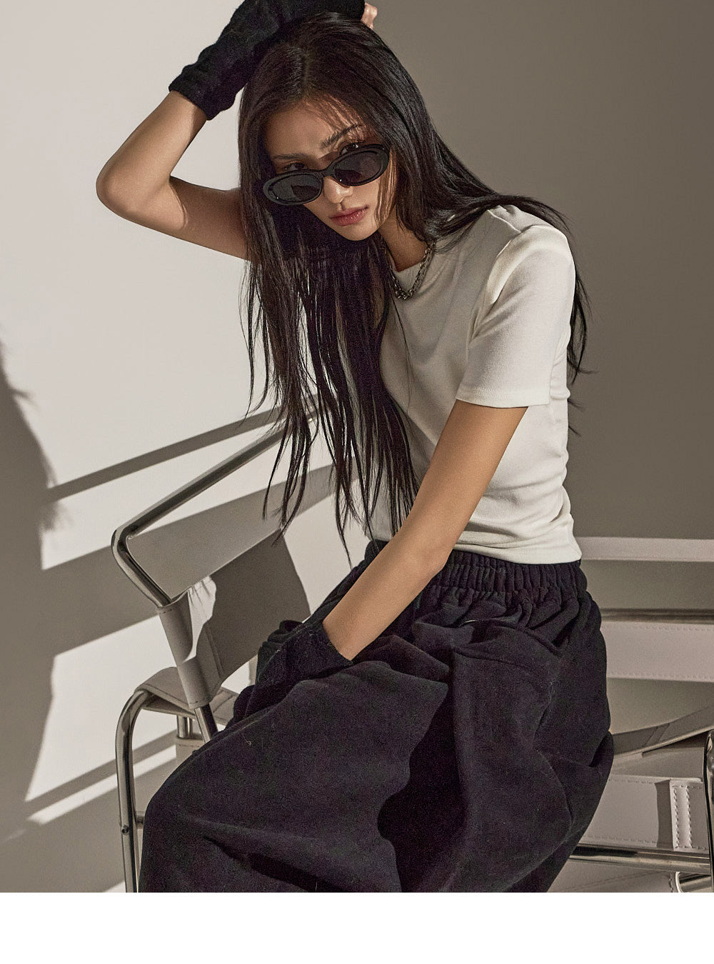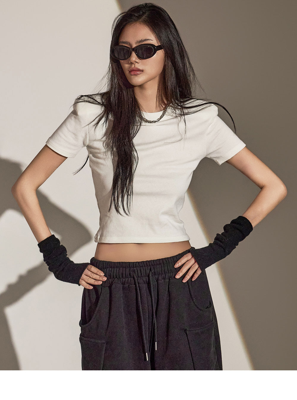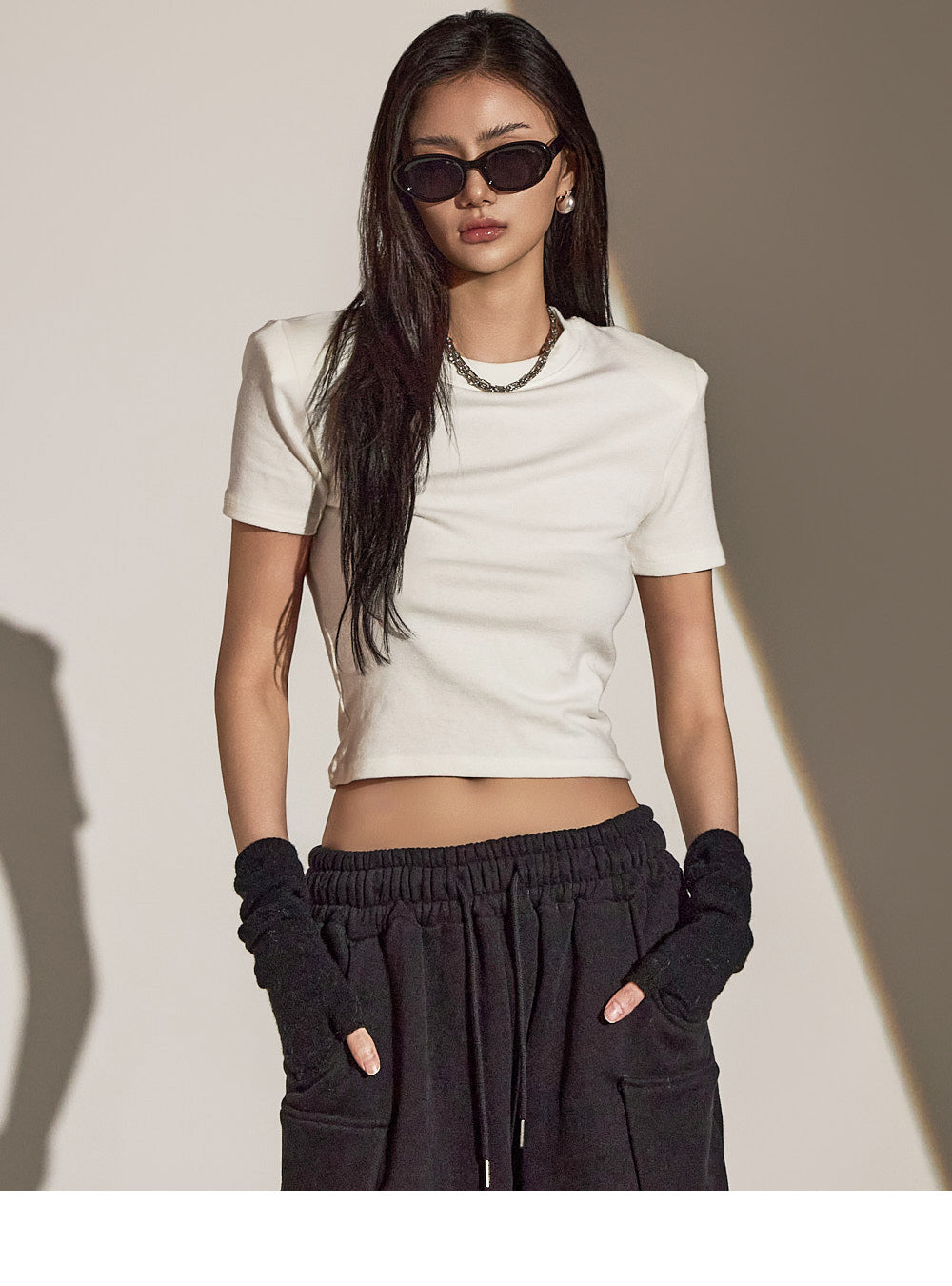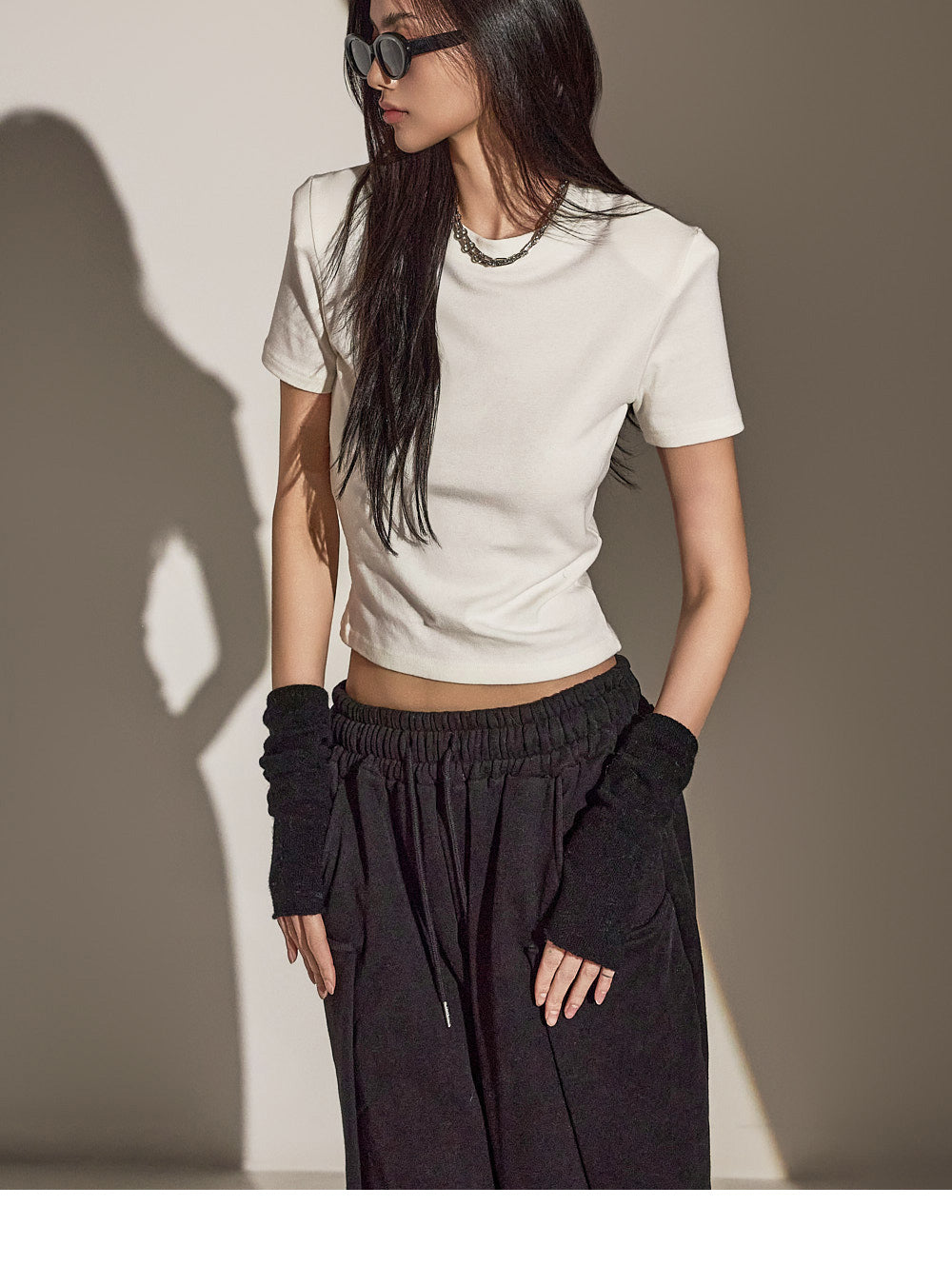 スリムフィットのトップスは体のシルエットを際立たせます