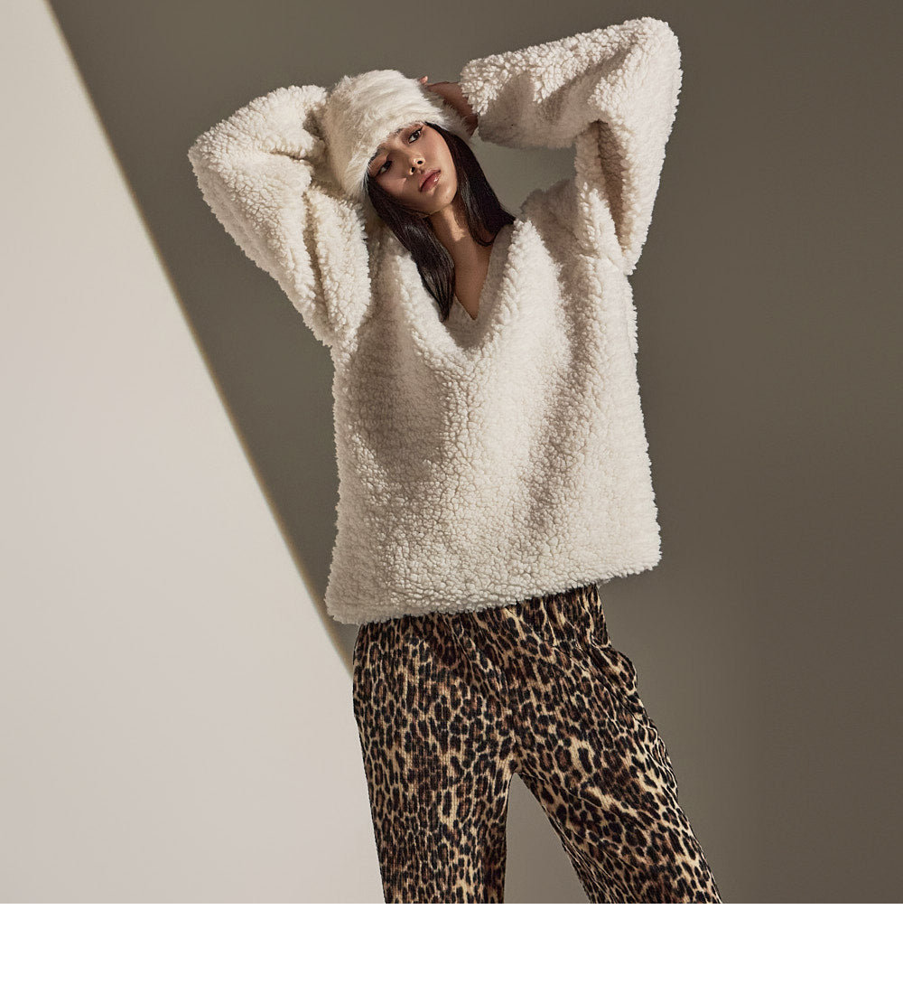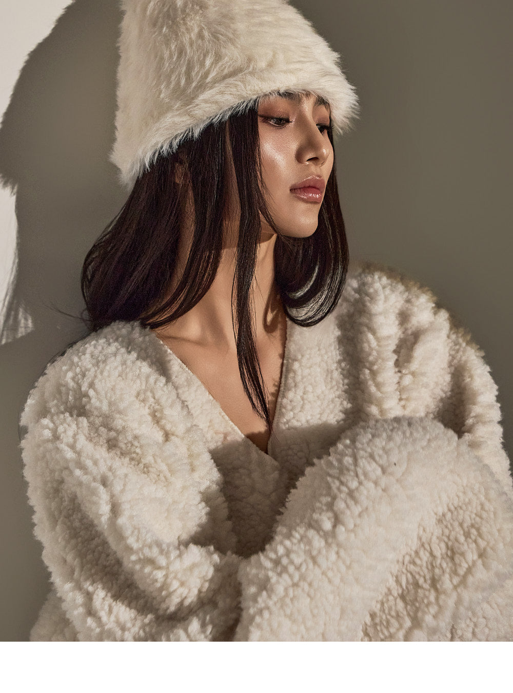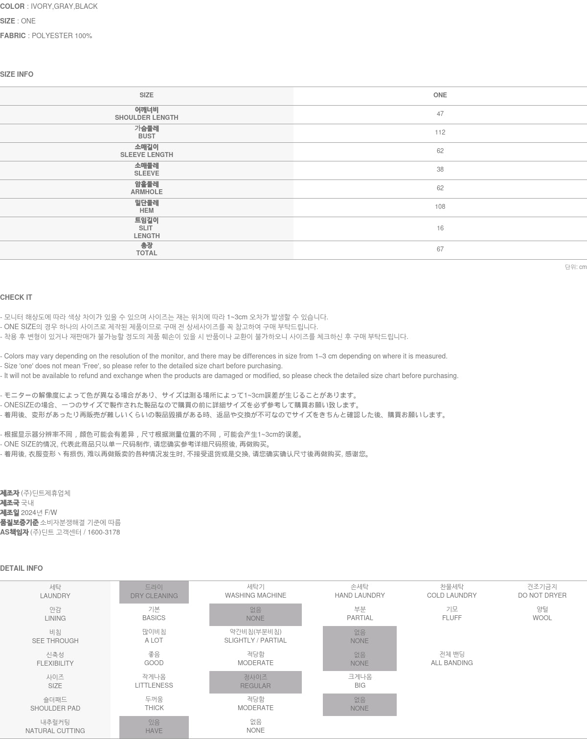 身長171cmのモデルは、アイボリーのワンサイズを着用しています。