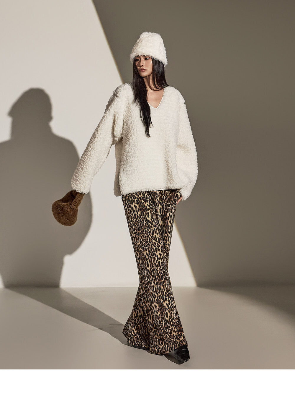 Vネックのデザインがネックラインのエレガントさを引き立てます。