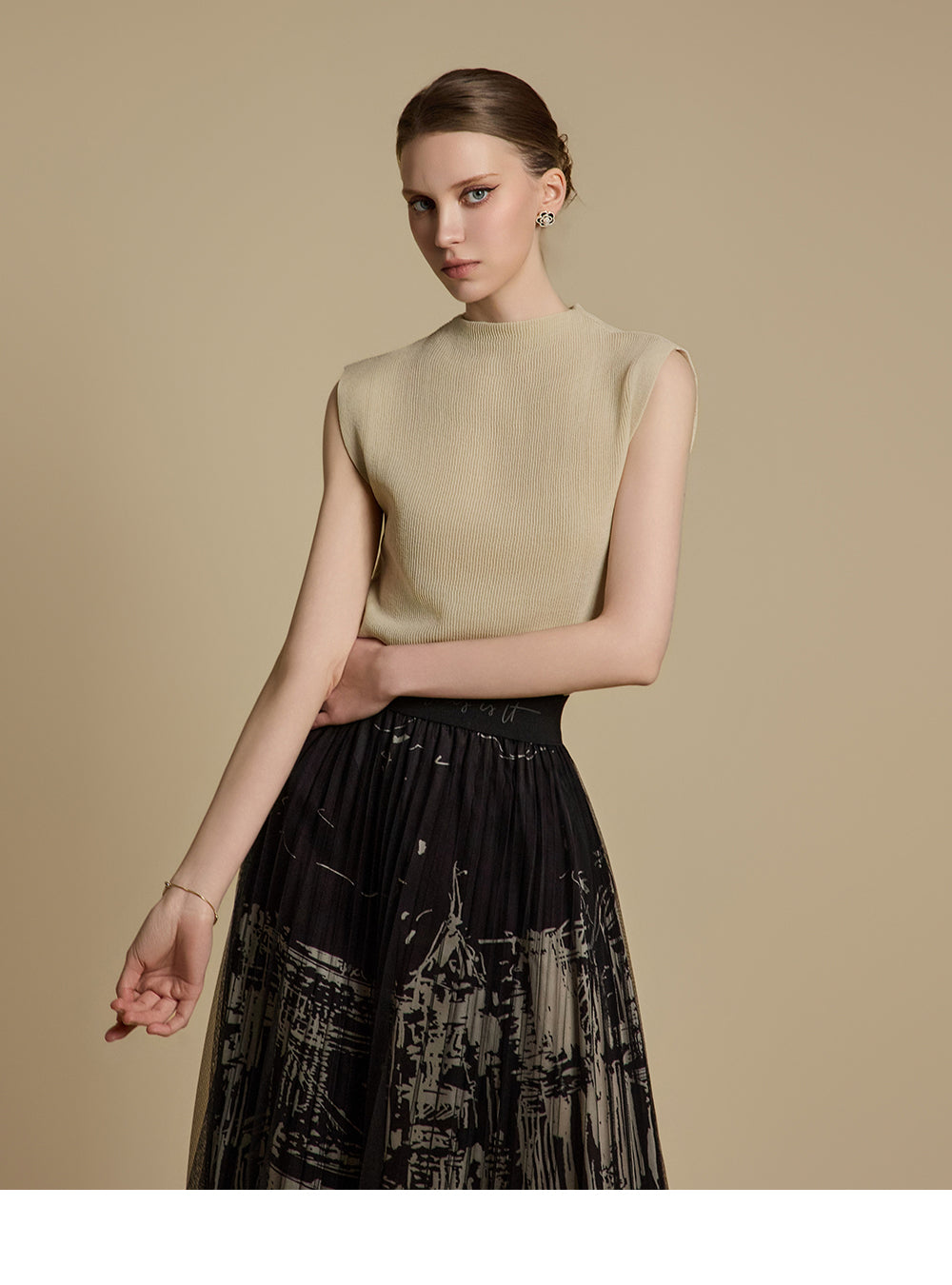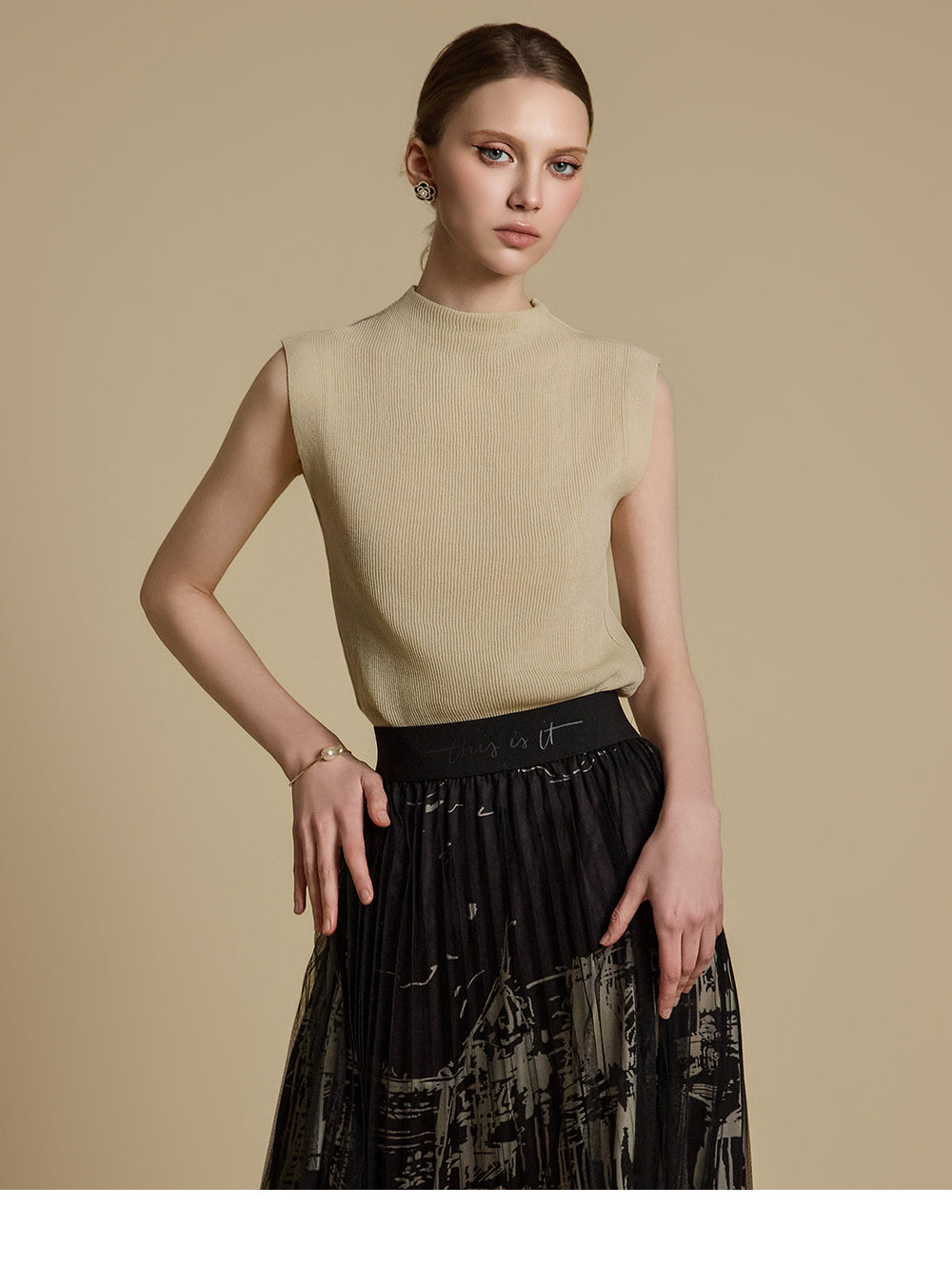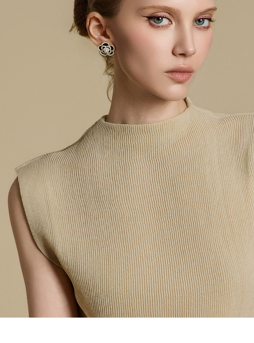 E3786 モックネックノースリーブトップス