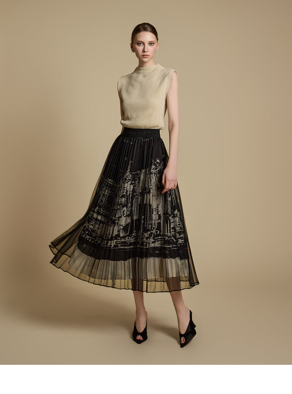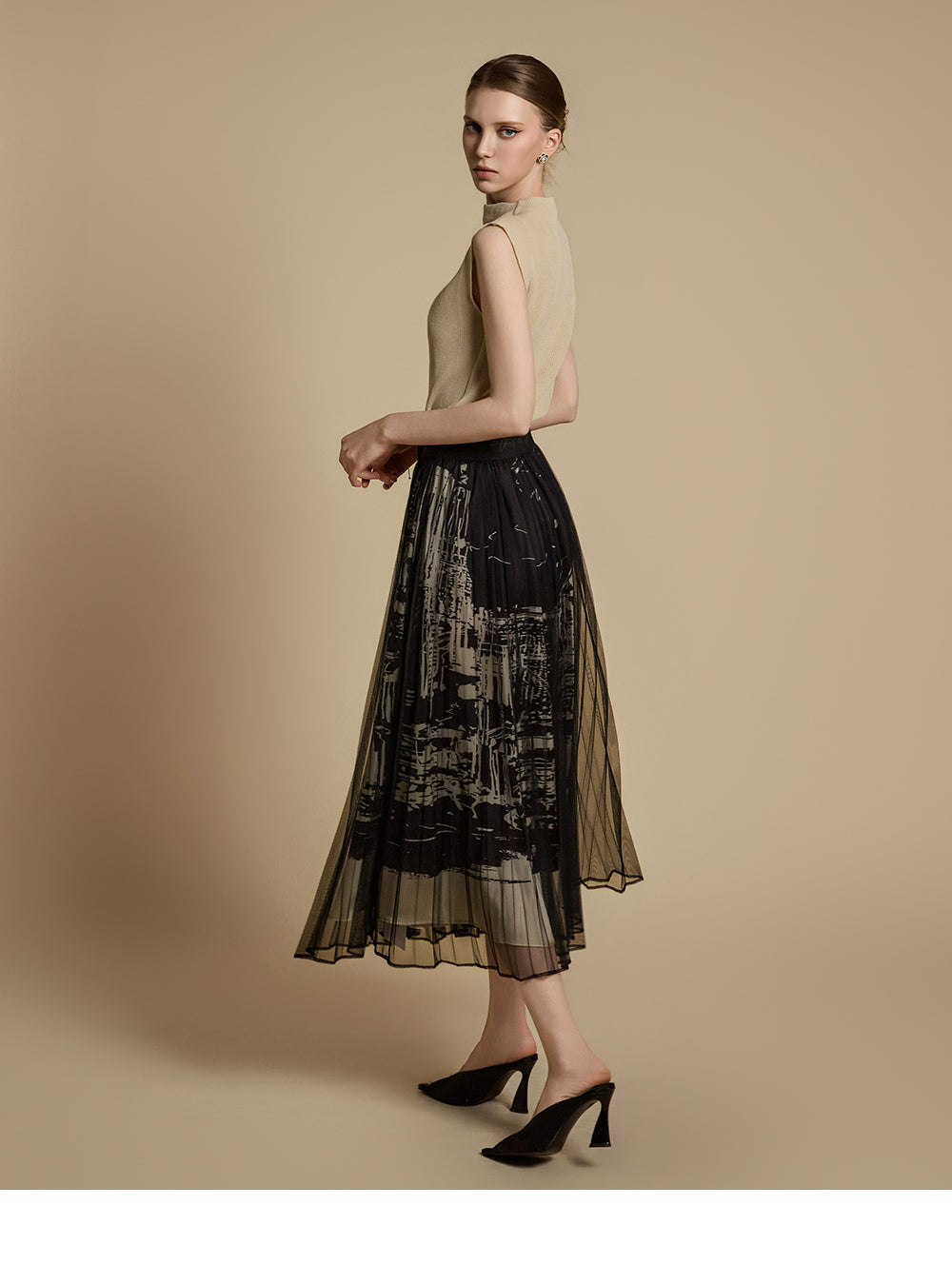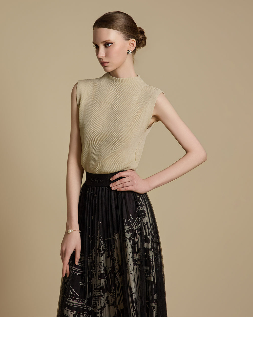 E3786 モックネックノースリーブトップス