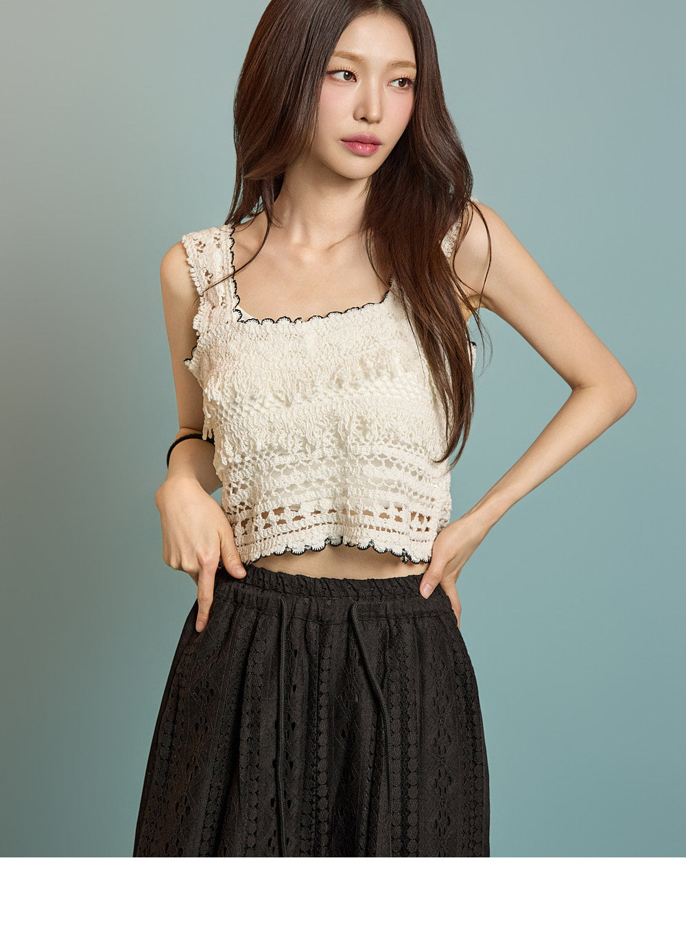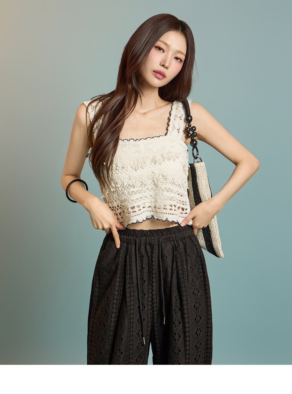 ノースリーブのクロップド丈デザインが鮮やかなシルエットを作り出します。