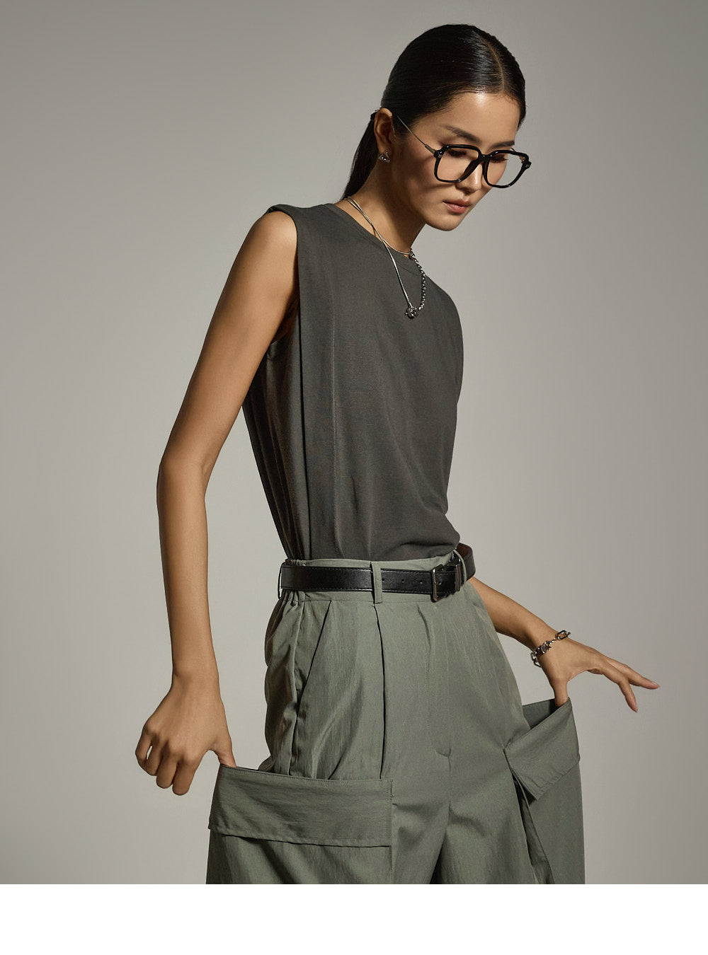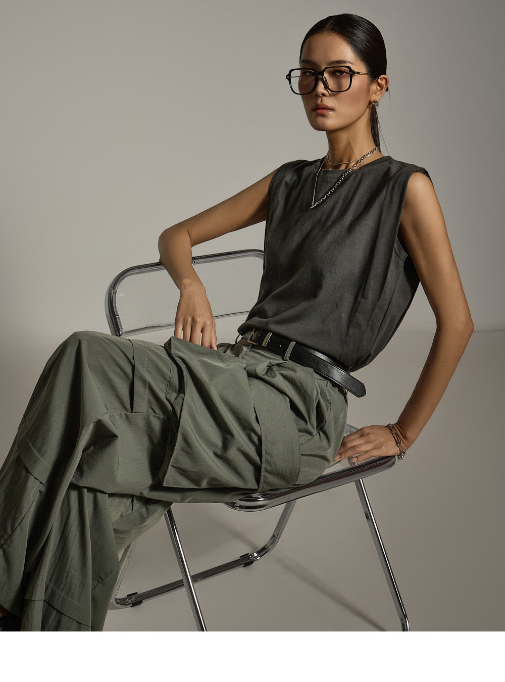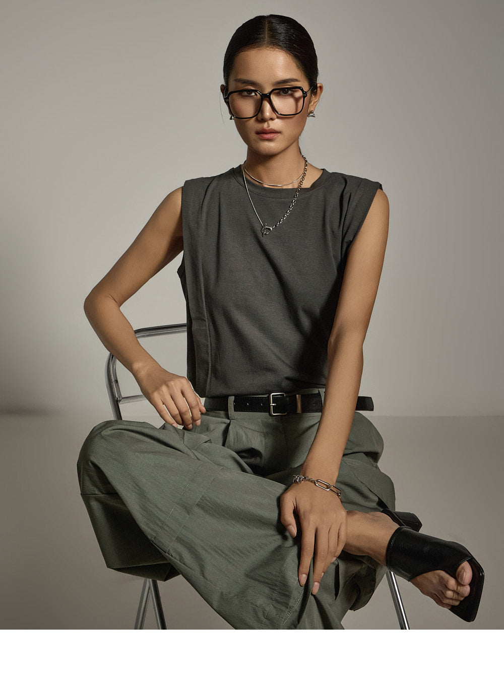 サイドスリットのディテールとベーシックなシルエットがさりげなく個性的なタッチをプラス。