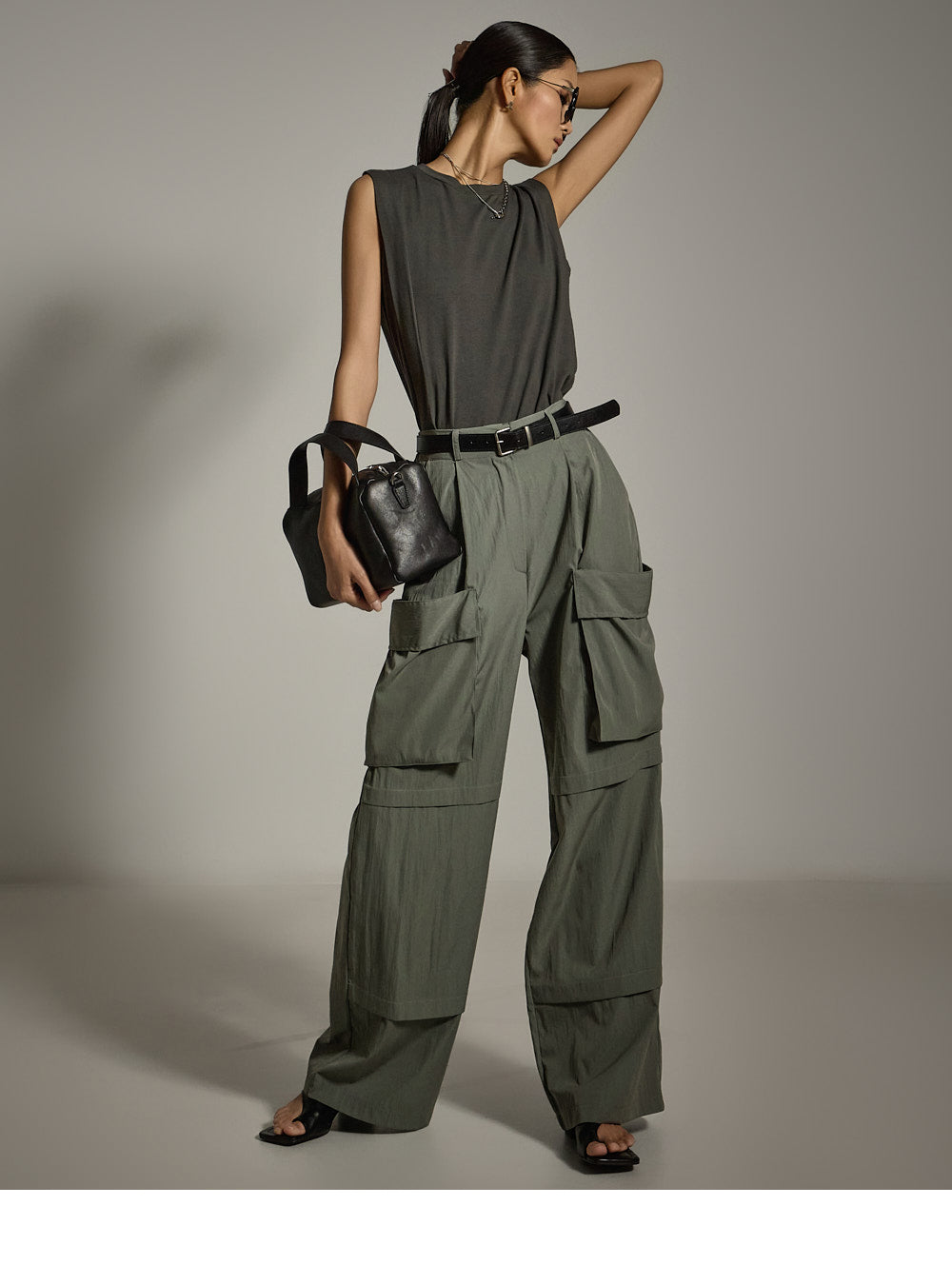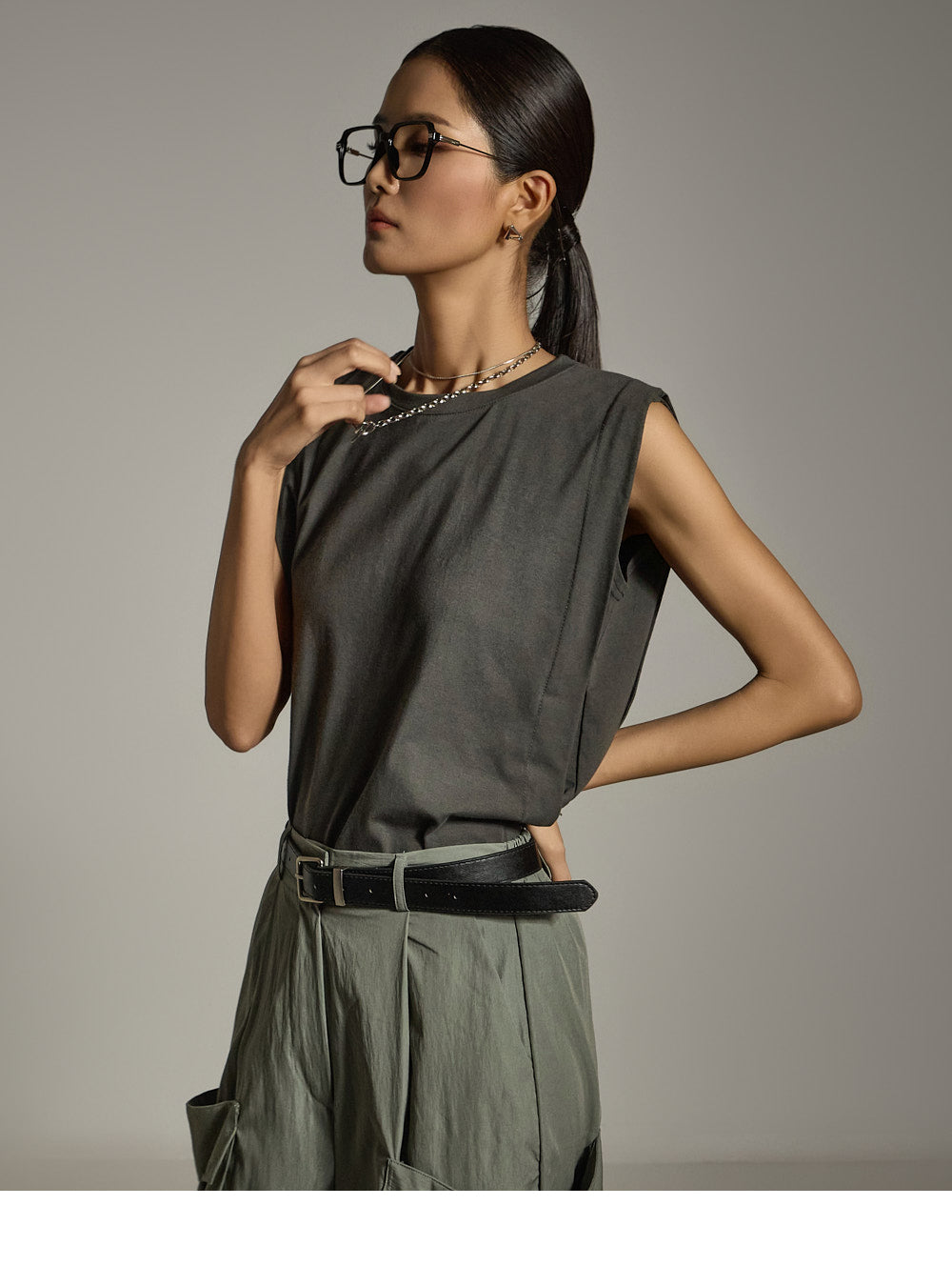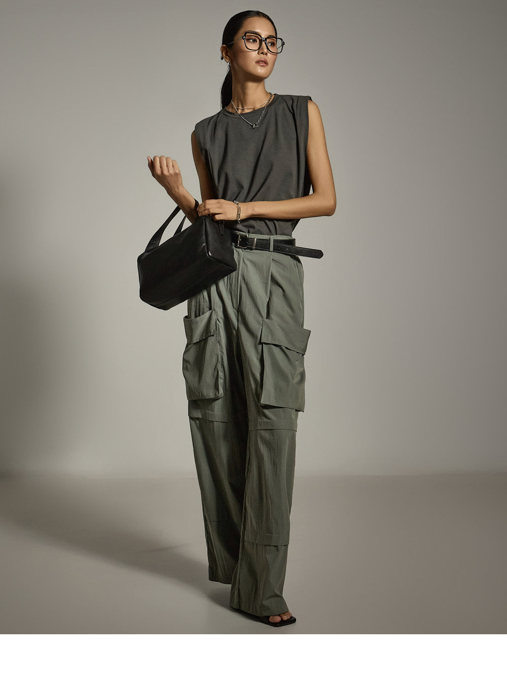サイドスリットのディテールとベーシックなシルエットがさりげなく個性的なタッチをプラス。