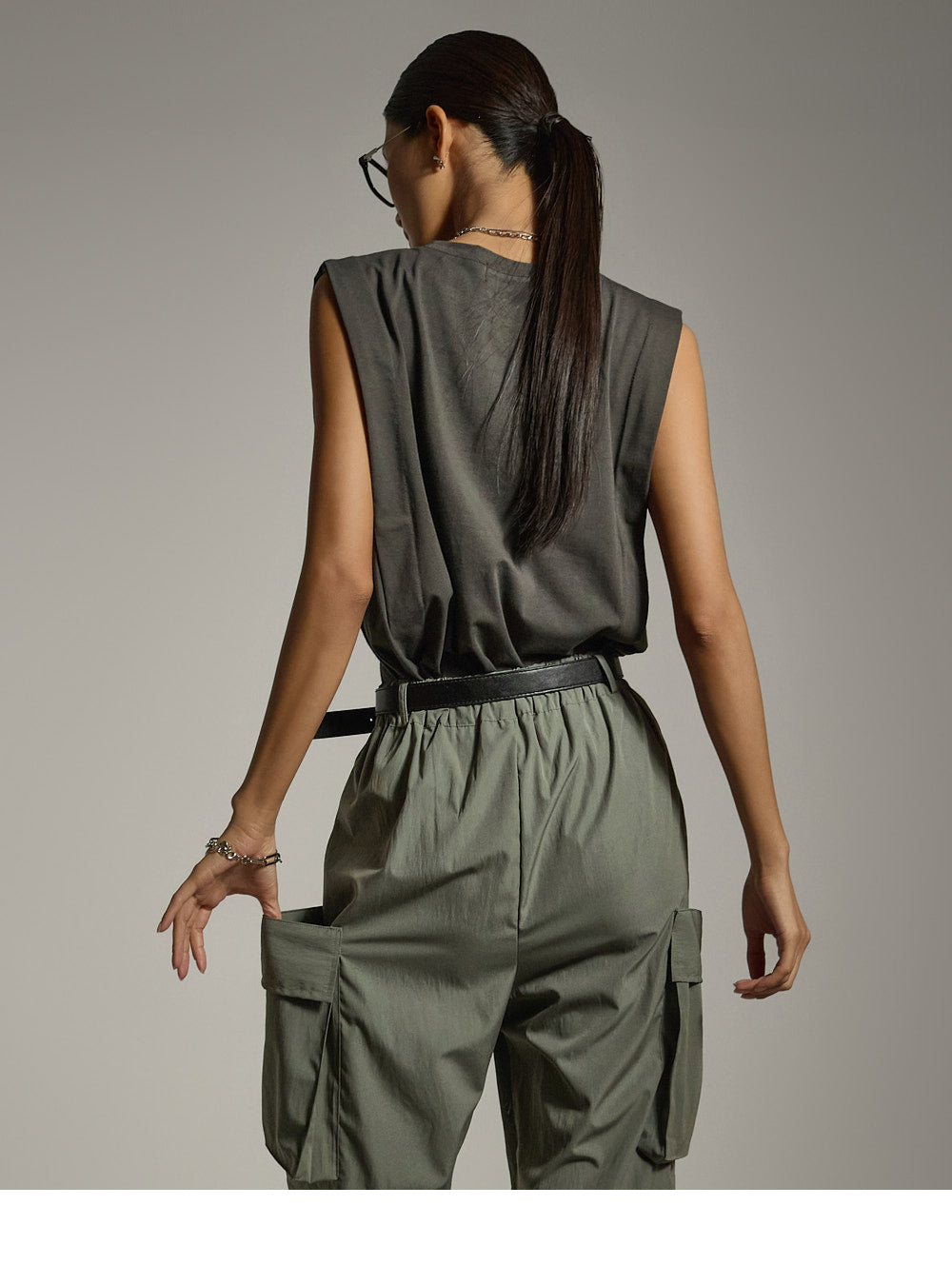 このトップスは柔らかく伸縮性のあるフィット感があり、快適に着用できます。