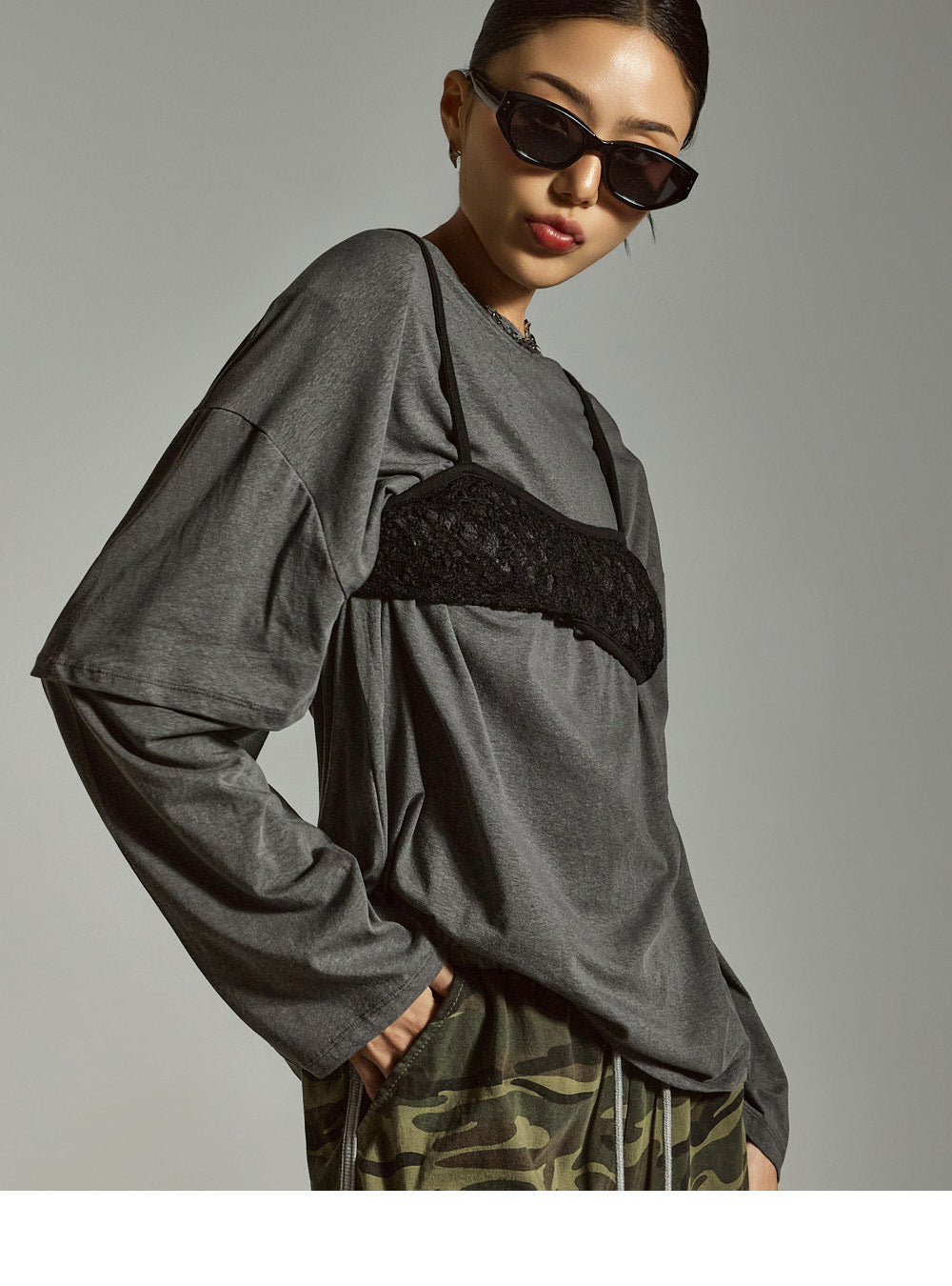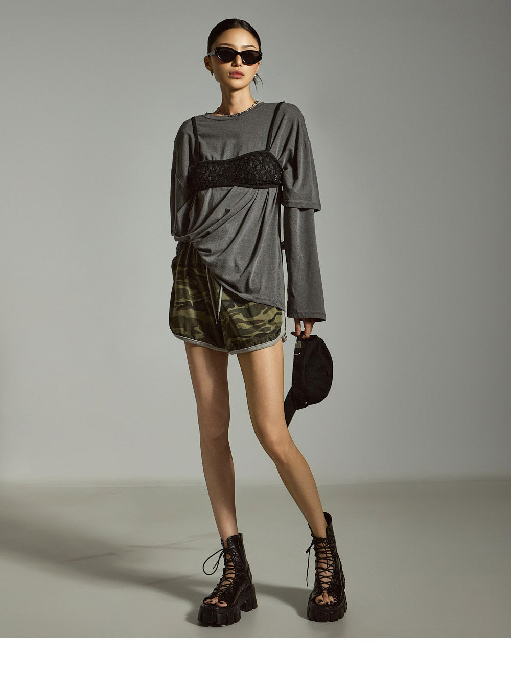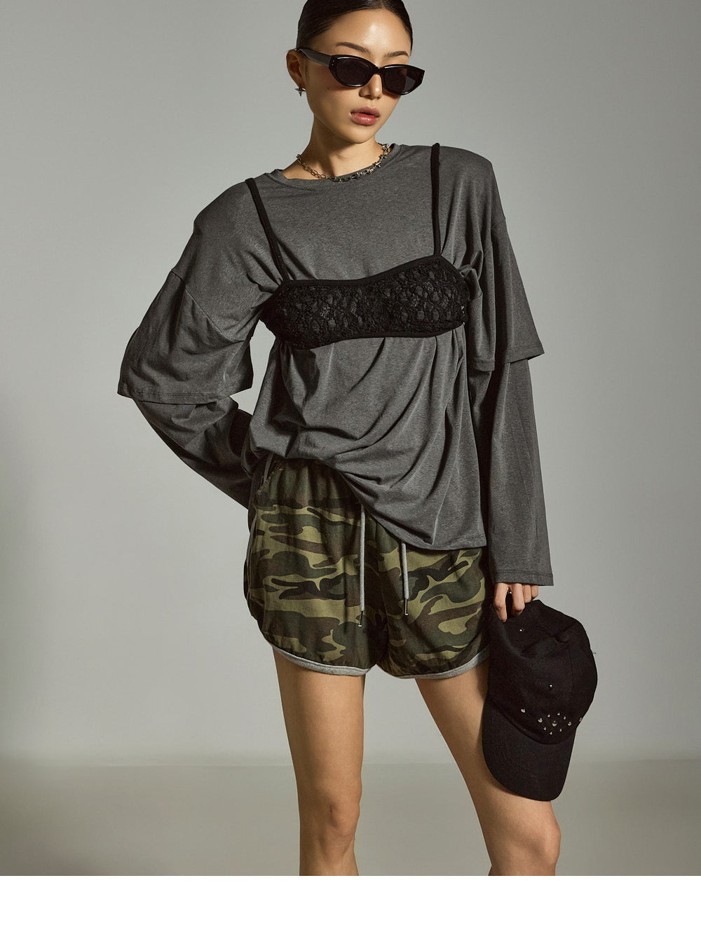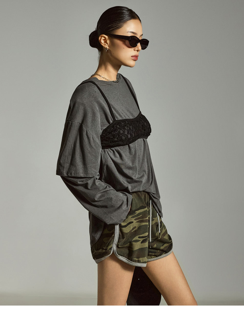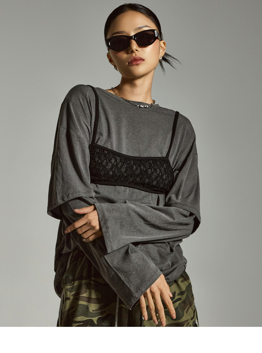 袖のレイヤードディテールが個性的なアクセントを添えます。