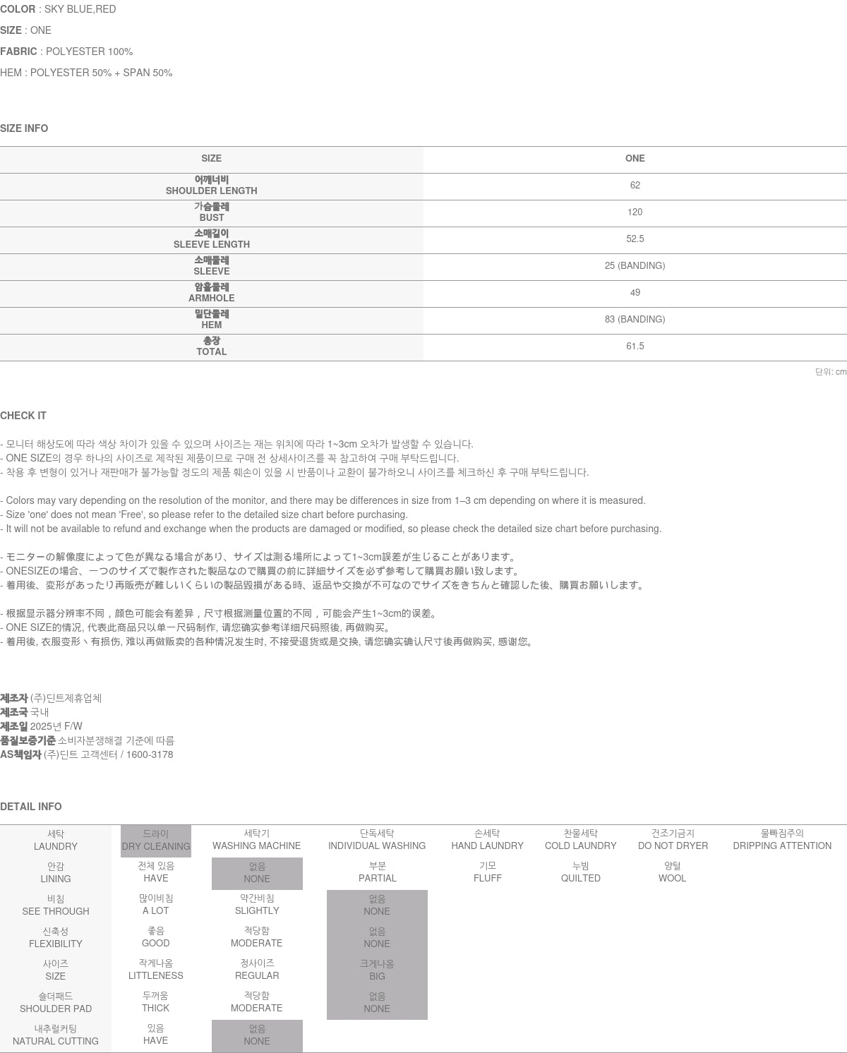The 171CM model is wearing ONE size in SKY BLUE color.