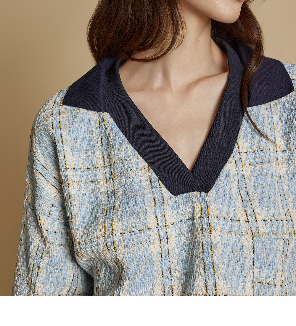The V-neck collar design reduces constriction, giving a fresh impression,