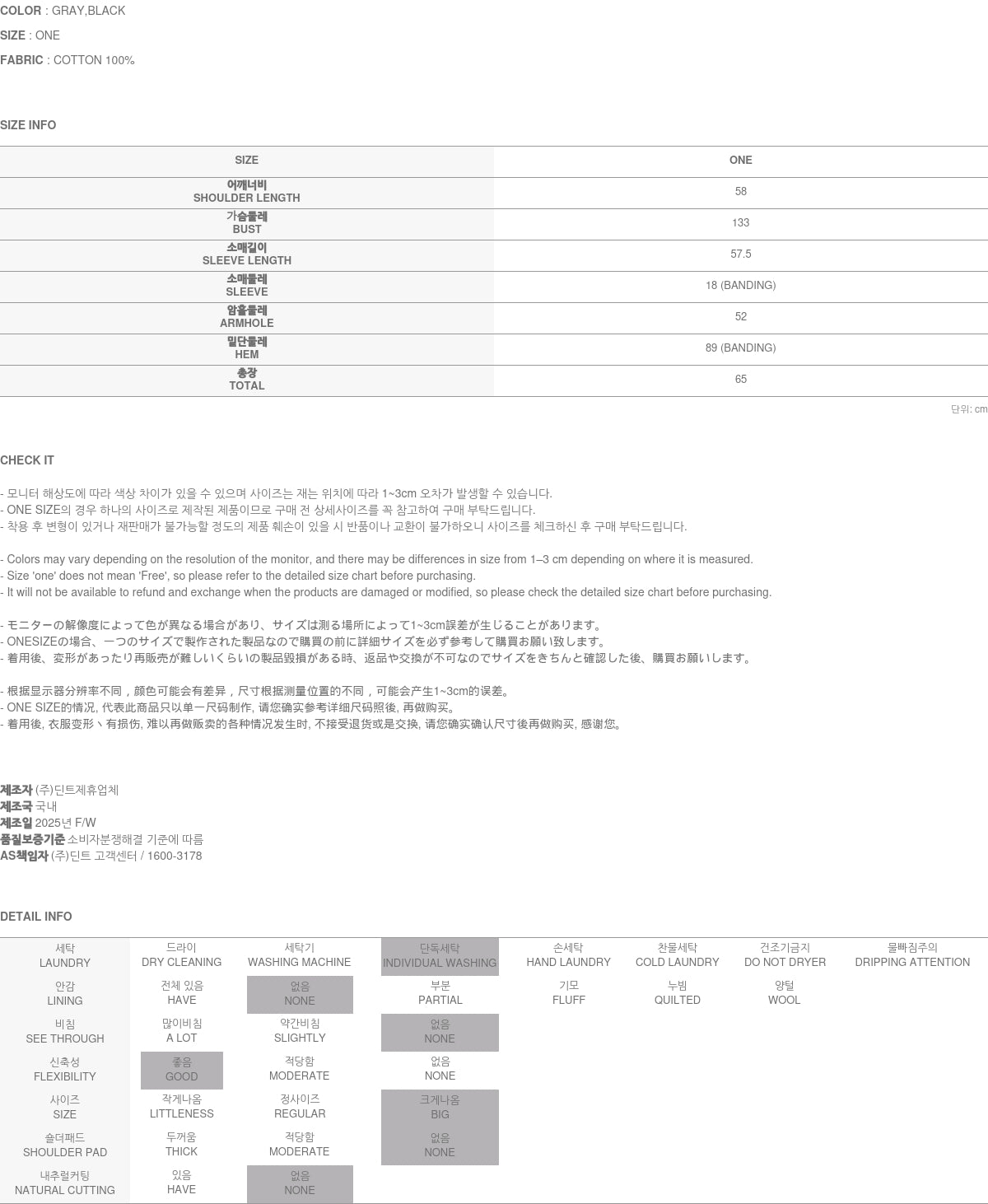 The 171CM model wears ONE size in gray.