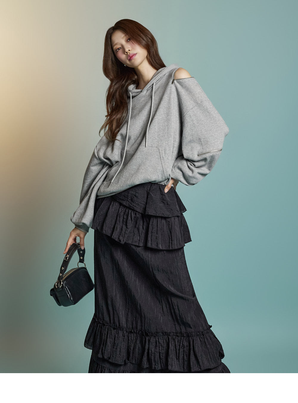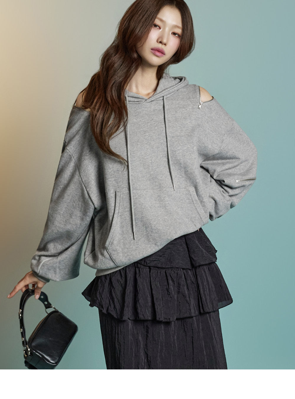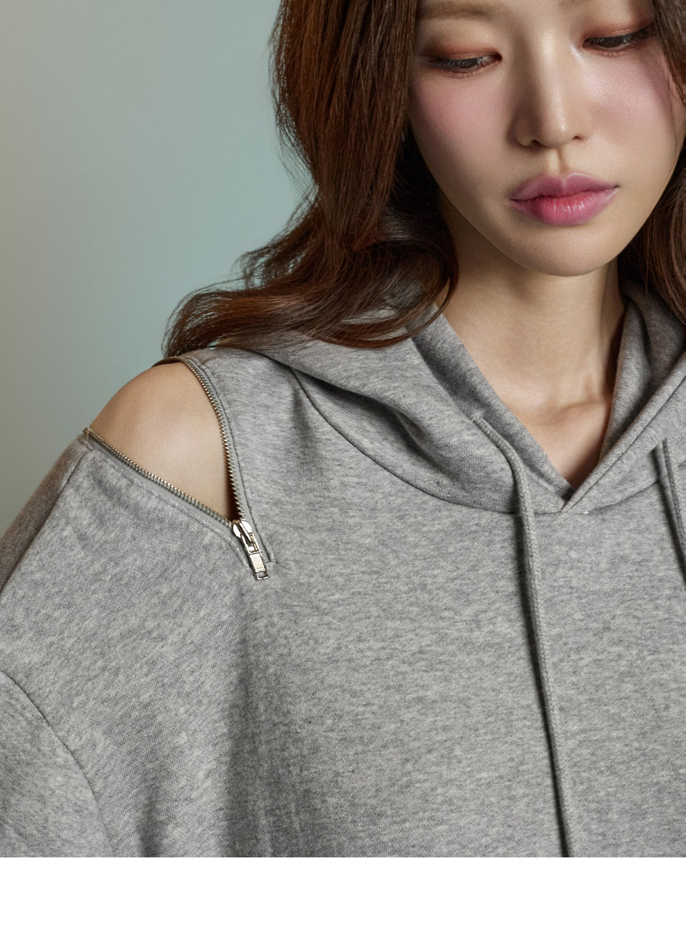 Featuring zipper details on the shoulders and sleeves,