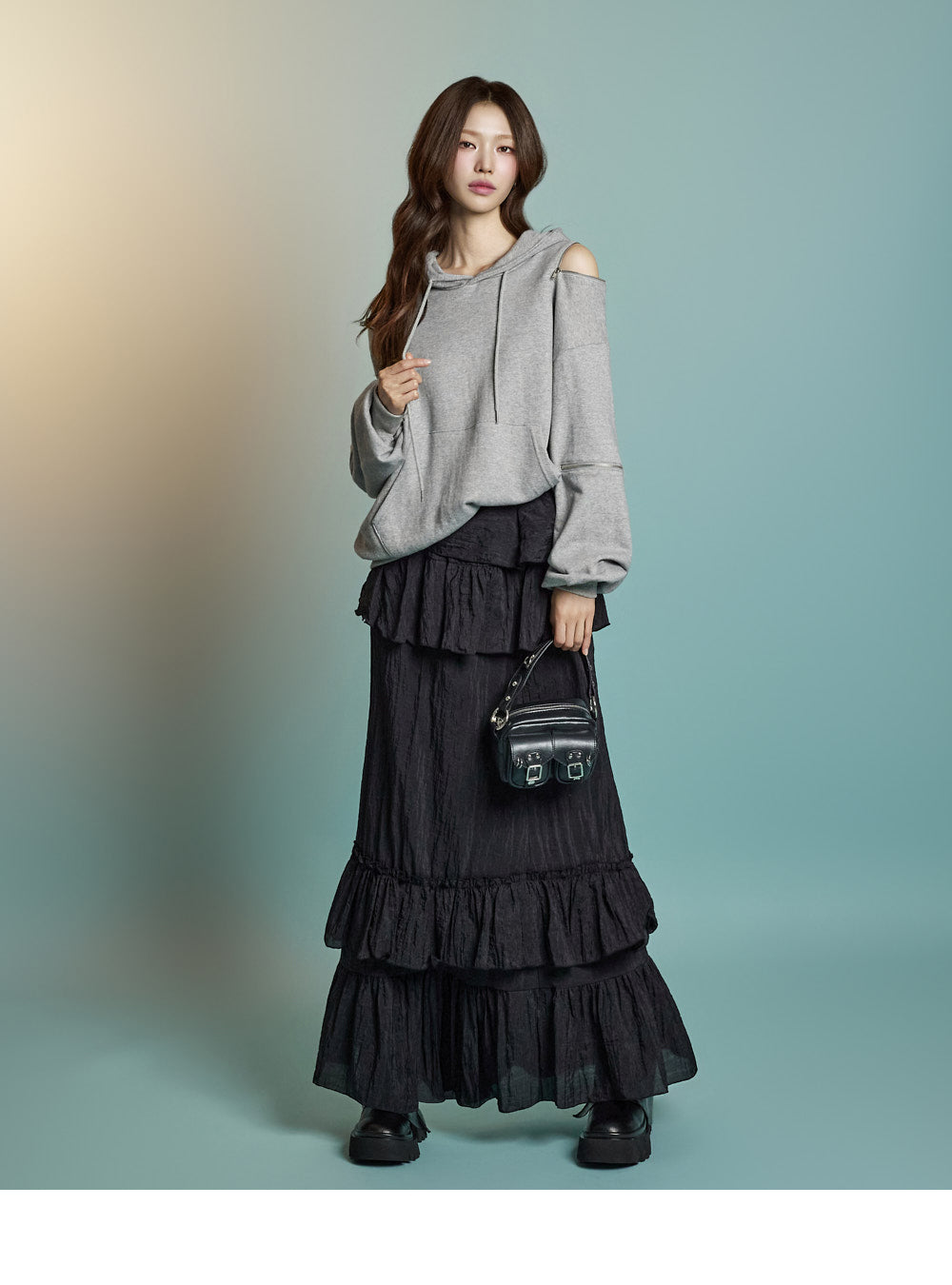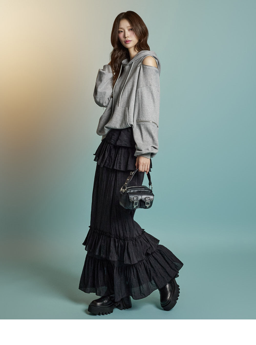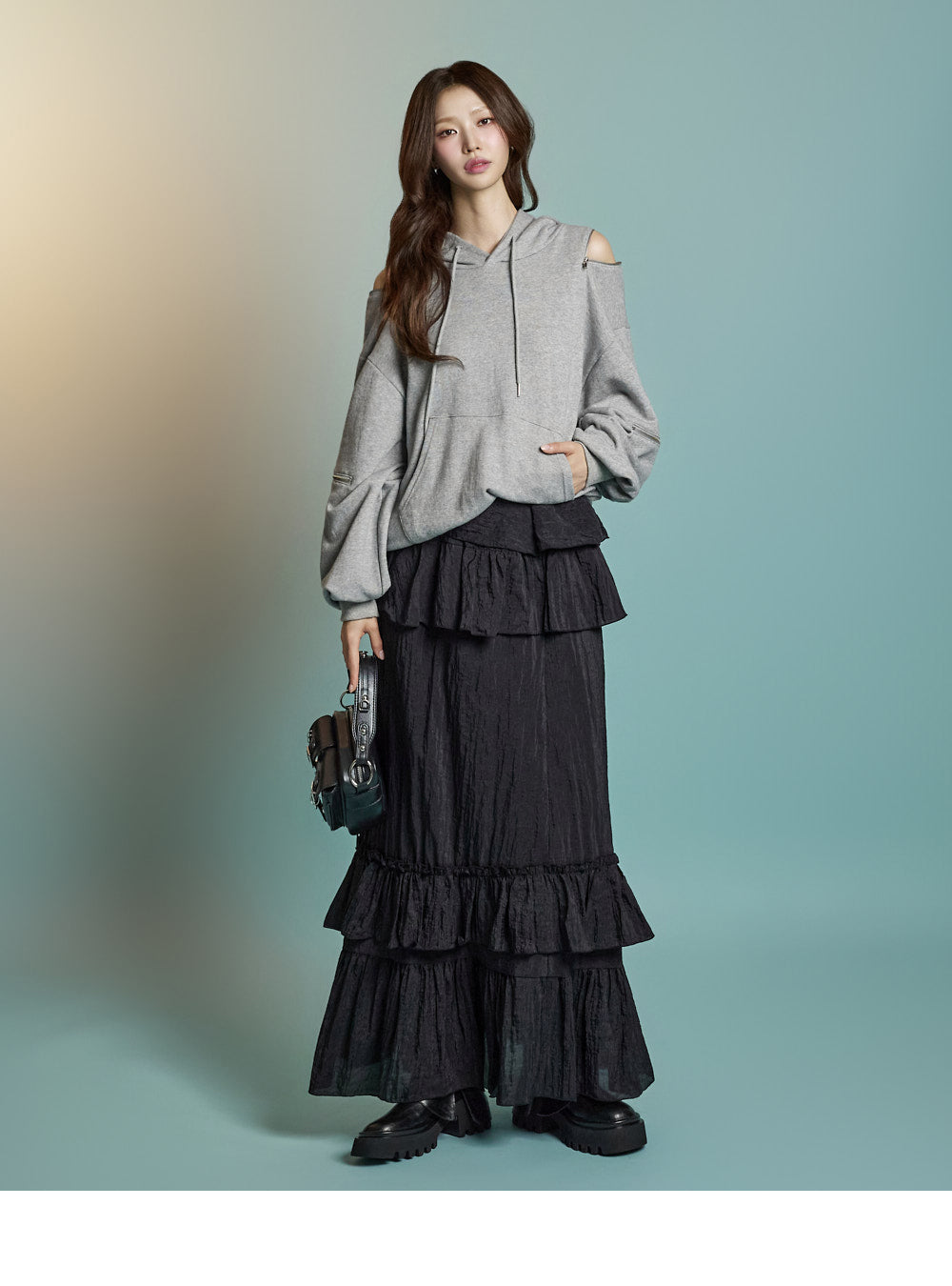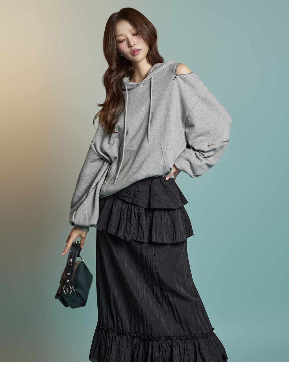Featuring zipper details on the shoulders and sleeves,