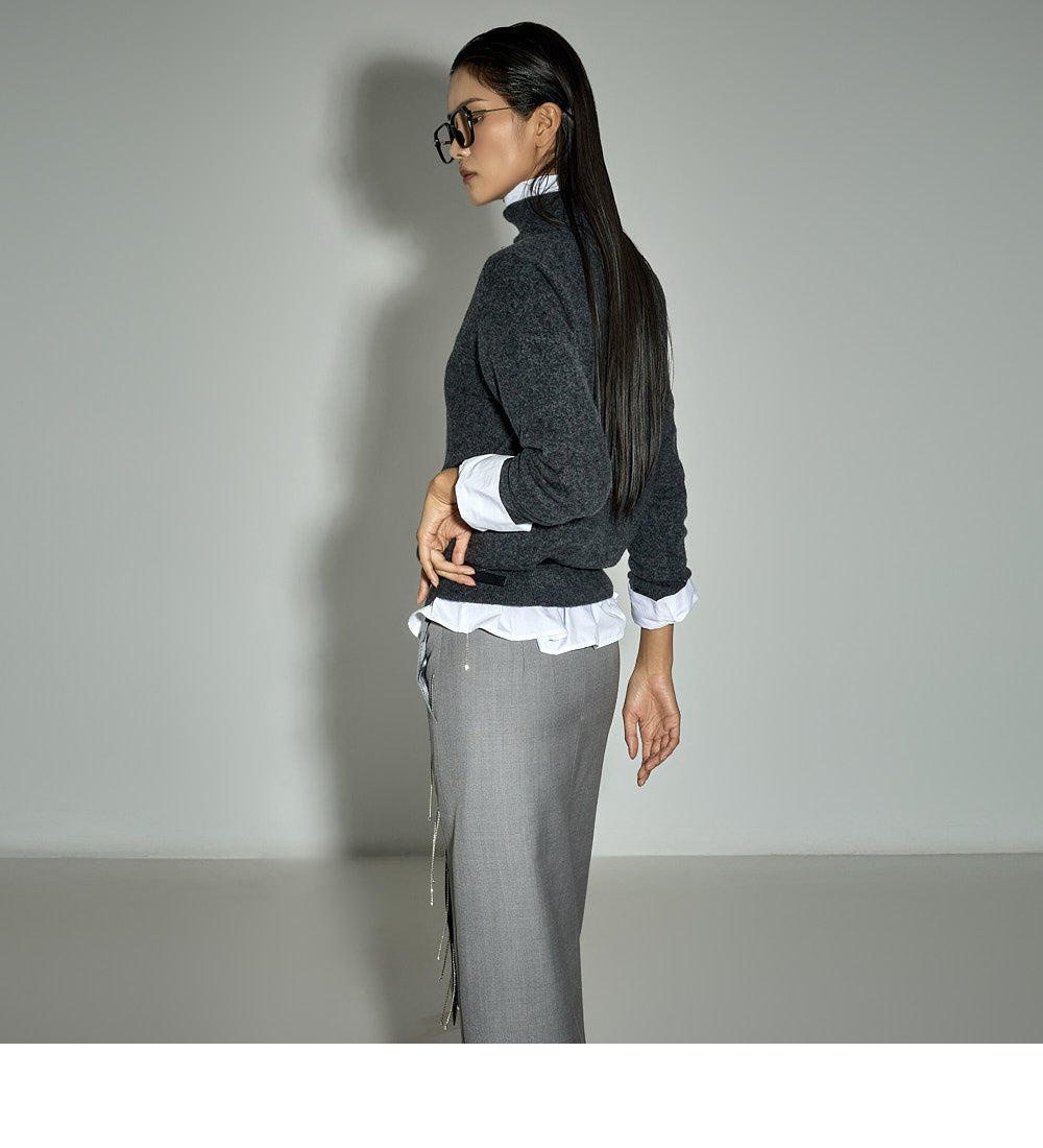 The 173cm model is wearing size ONE in the CHARCOAL color.