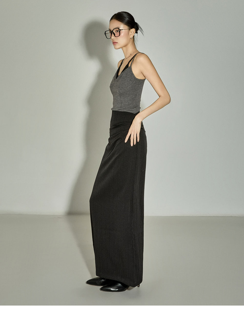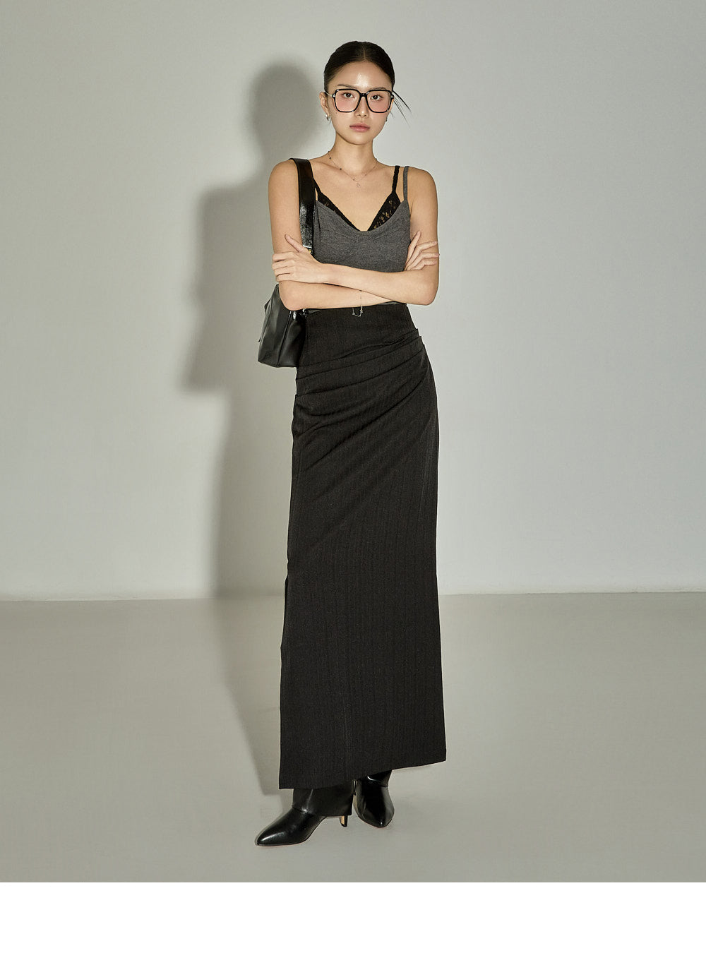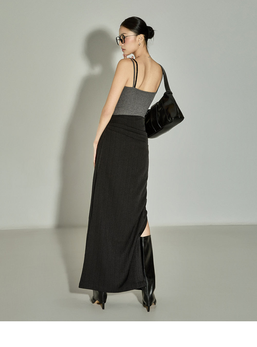 The 171cm model is wearing size One in the CHARCOAL color.