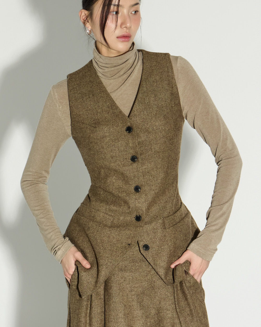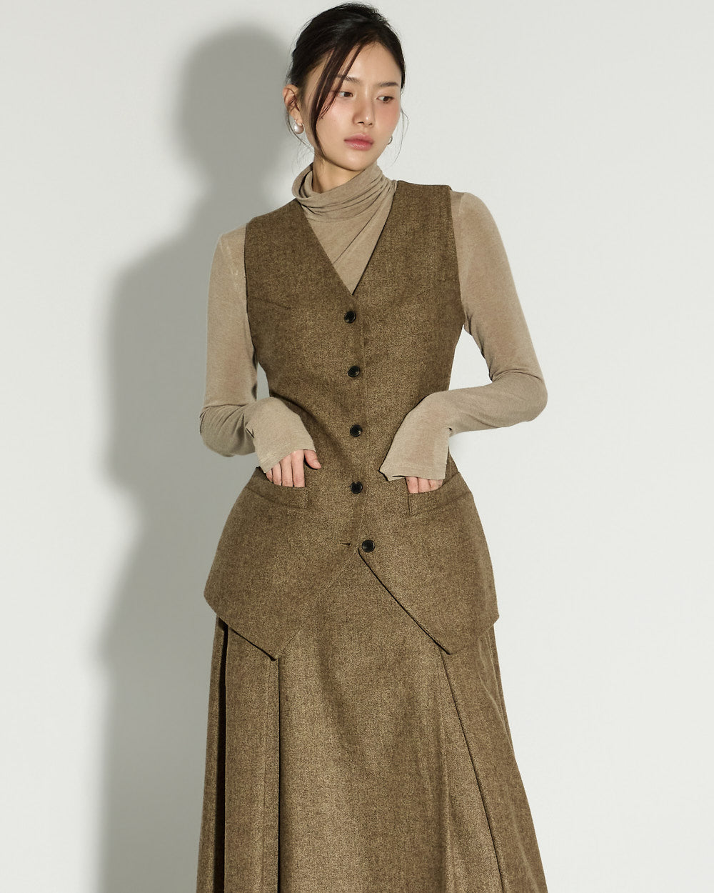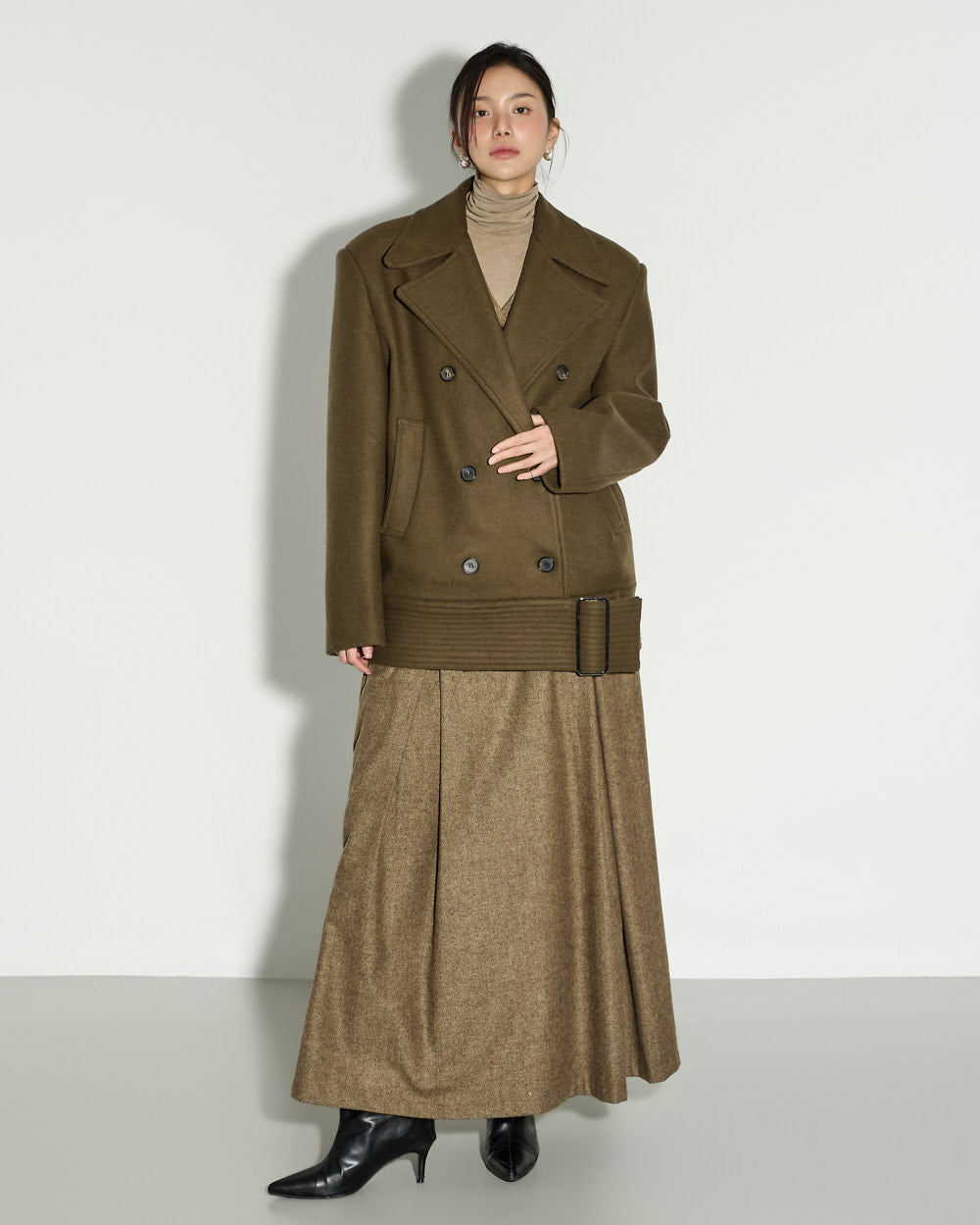 With a clean, basic silhouette and a turtleneck design that wraps around the neck, it offers both warmth and practicality.