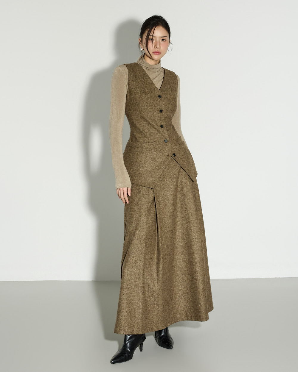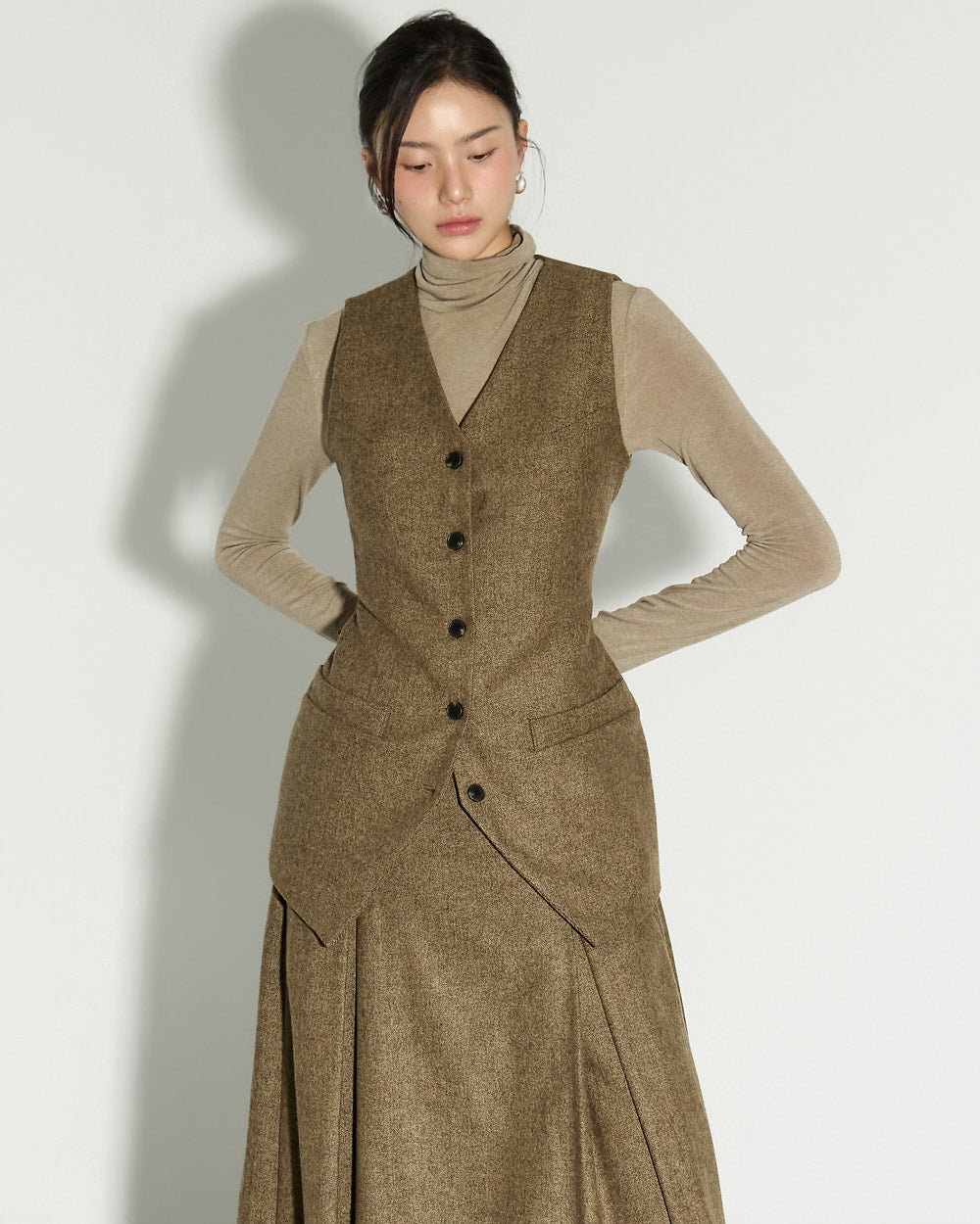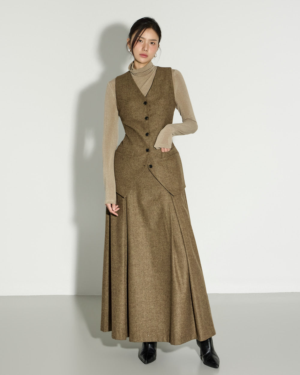 With a clean, basic silhouette and a turtleneck design that wraps around the neck, it offers both warmth and practicality.
