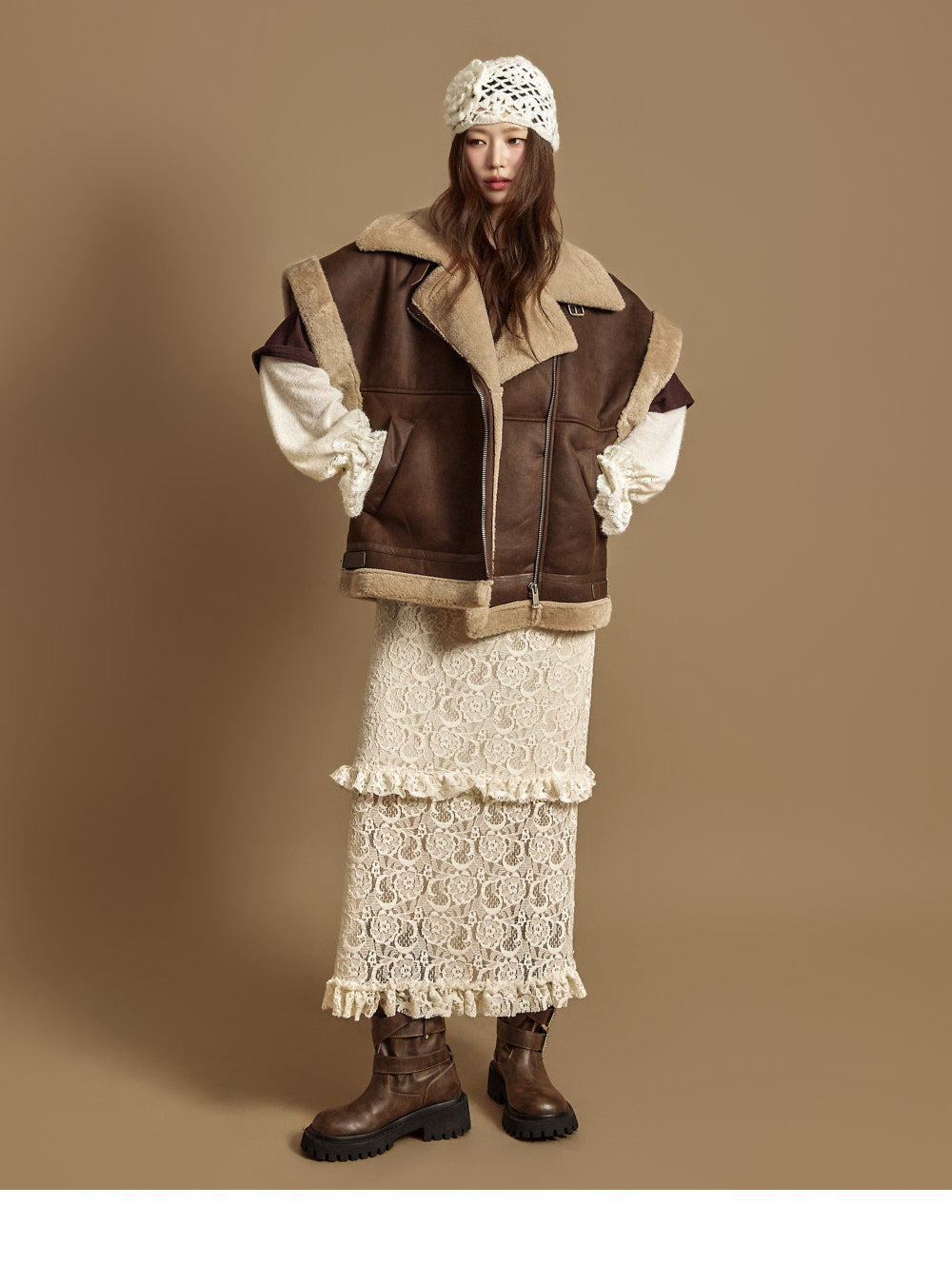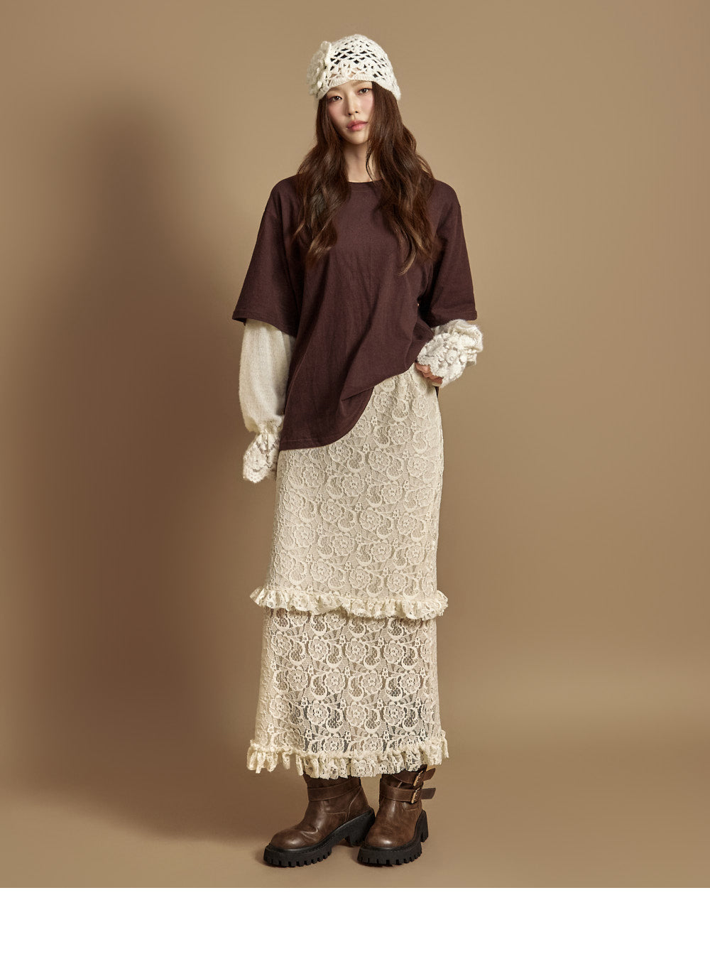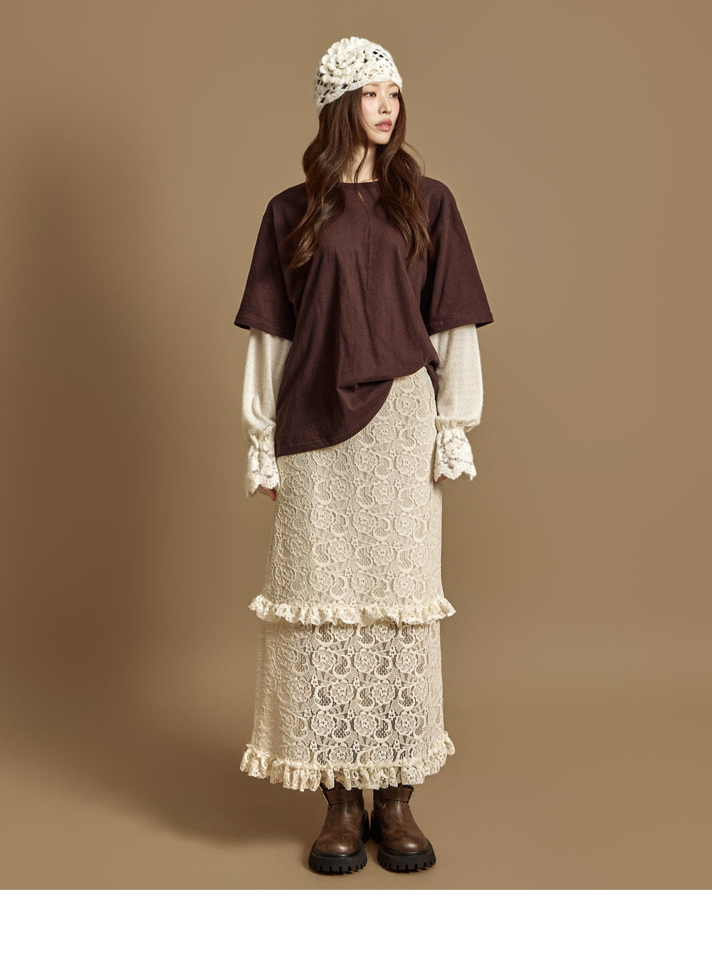 The loose fit creates a relaxed silhouette,and lace details at the sleeve hems