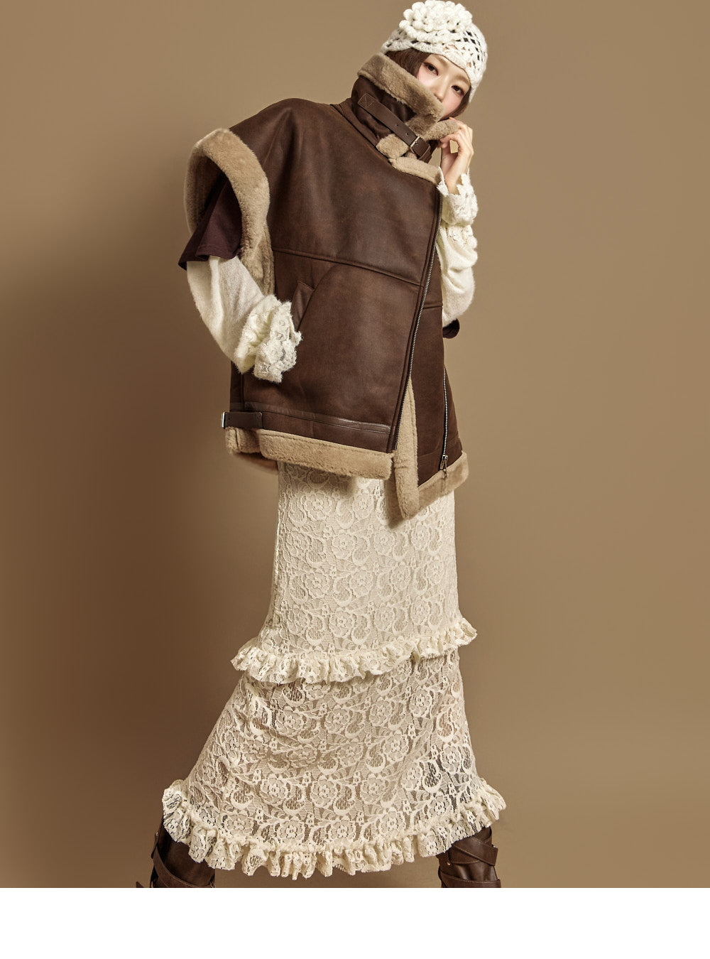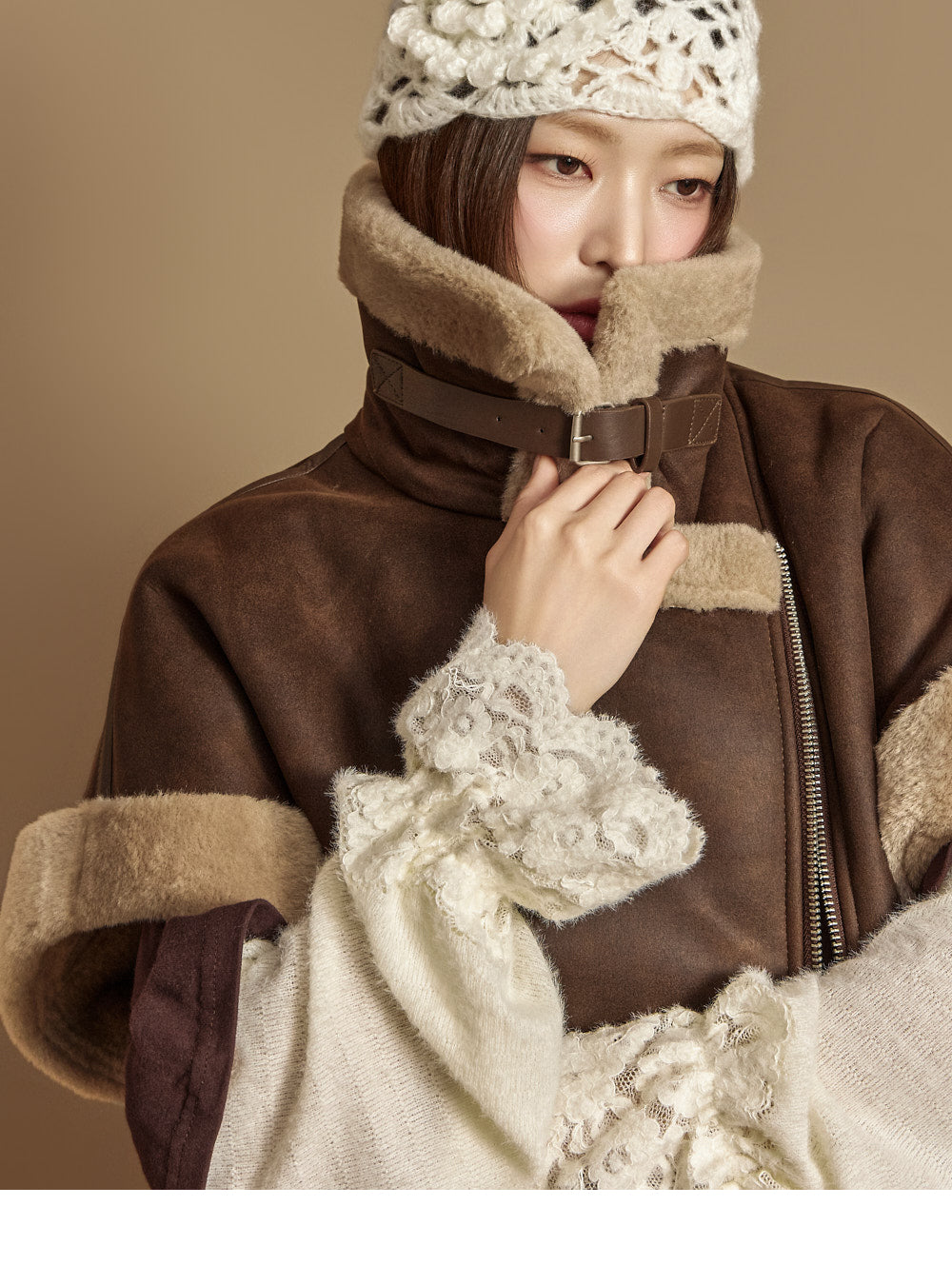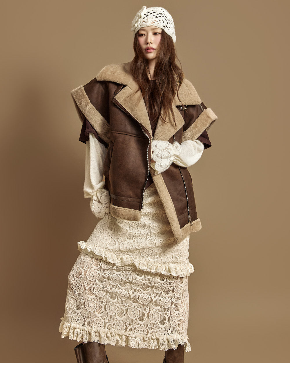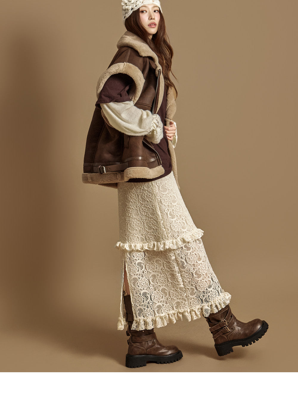 The loose fit creates a relaxed silhouette,and lace details at the sleeve hems