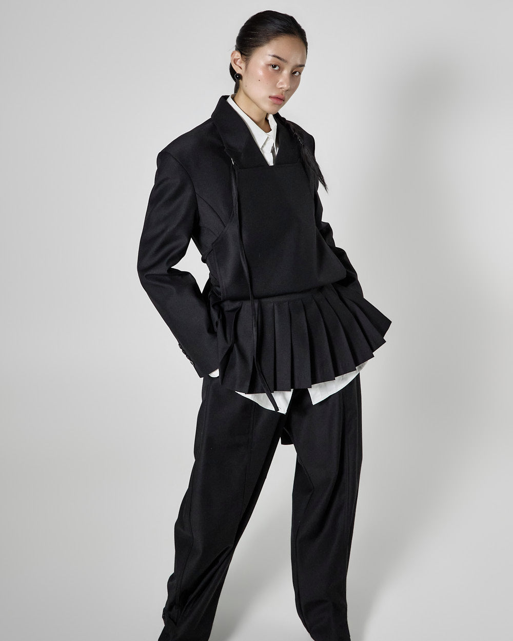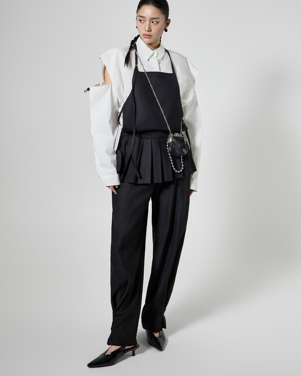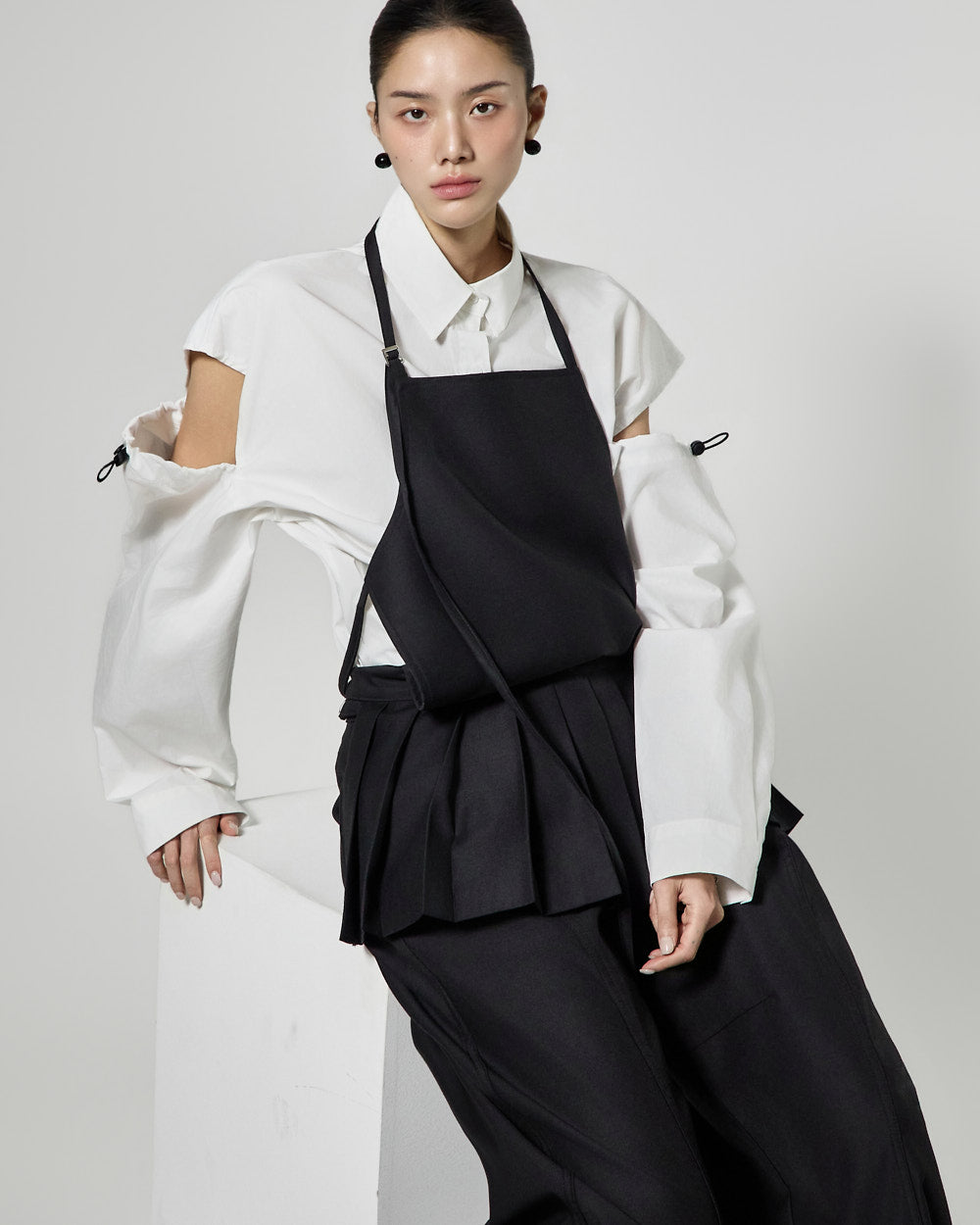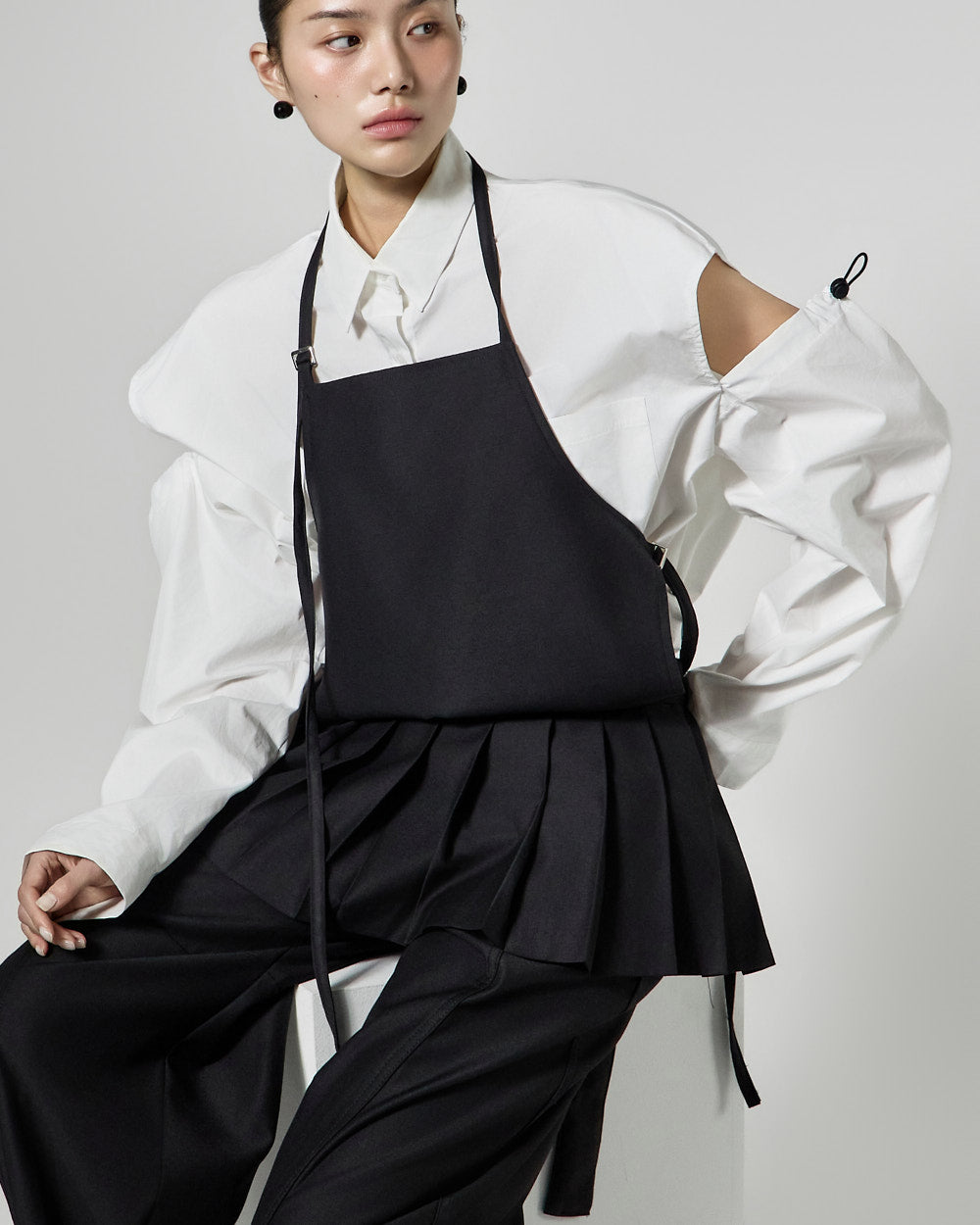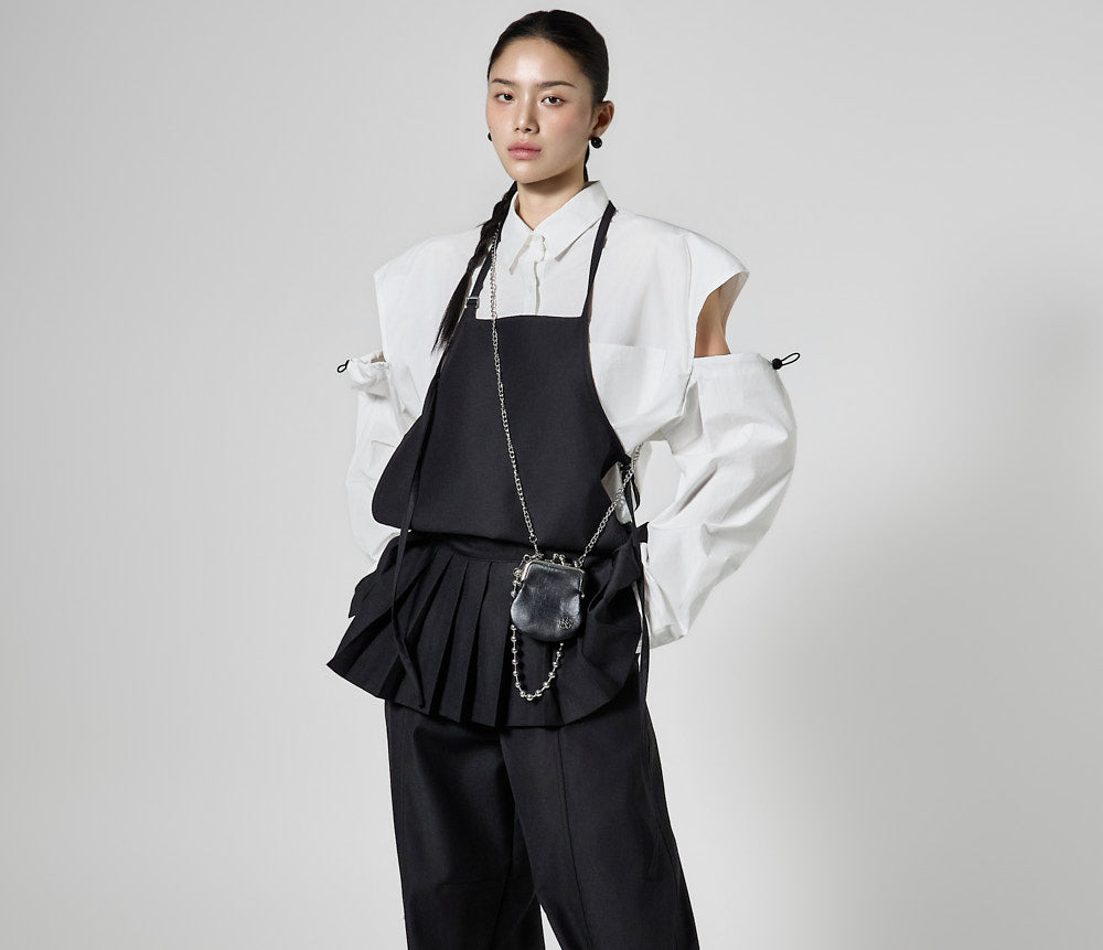 This pleated apron top has a modern vibe.