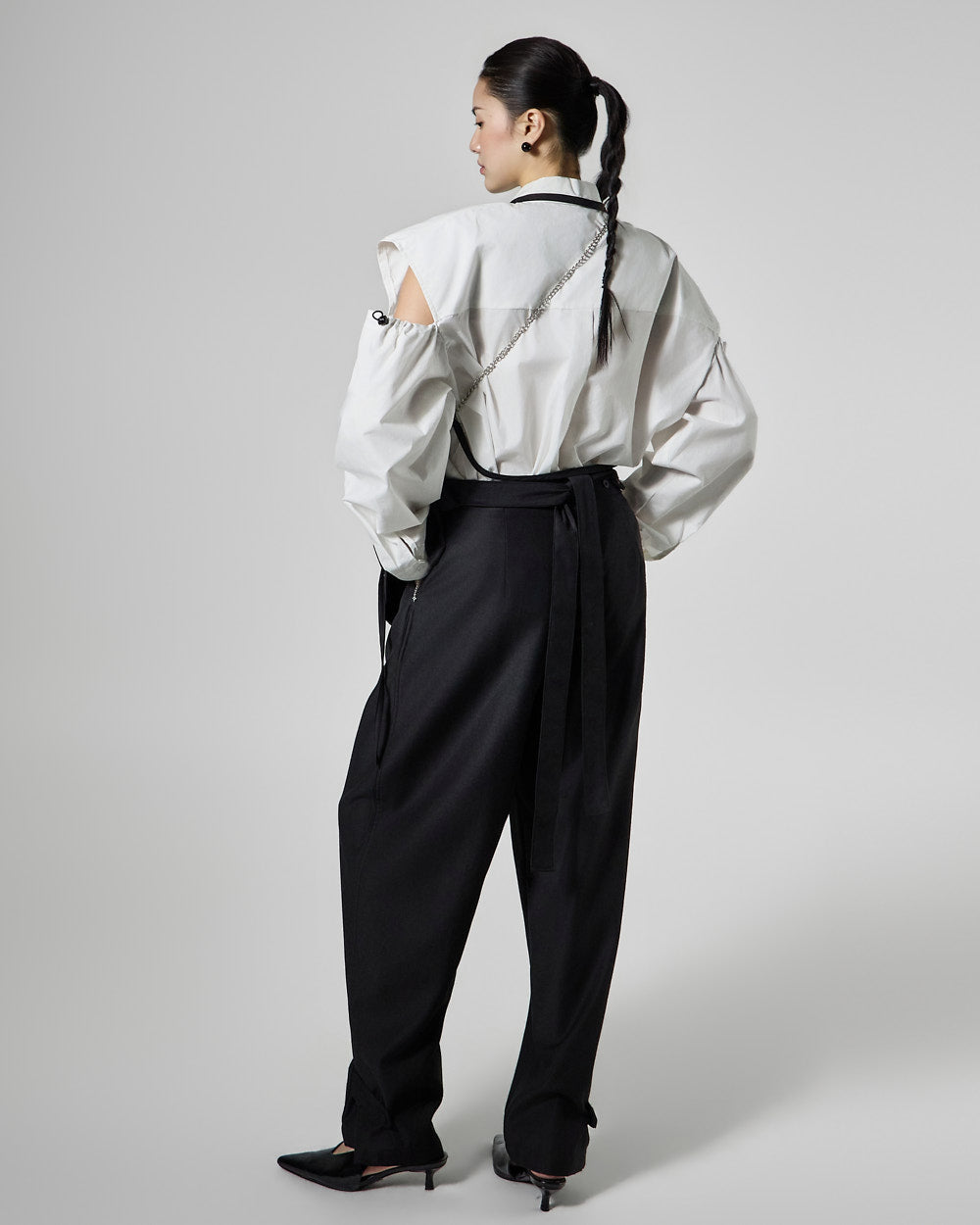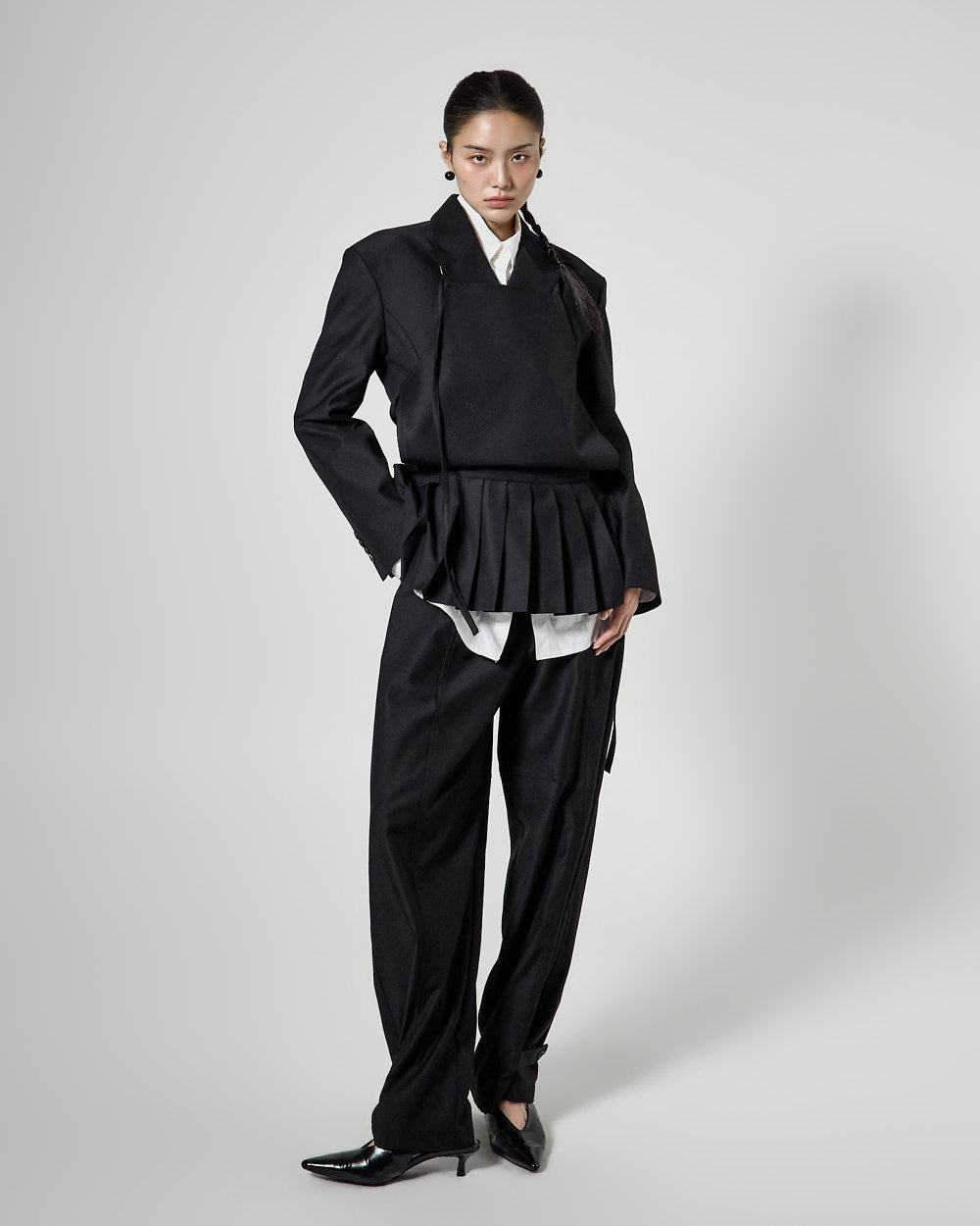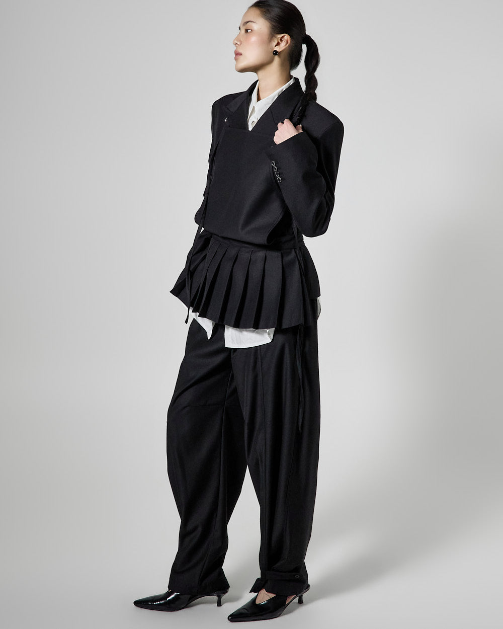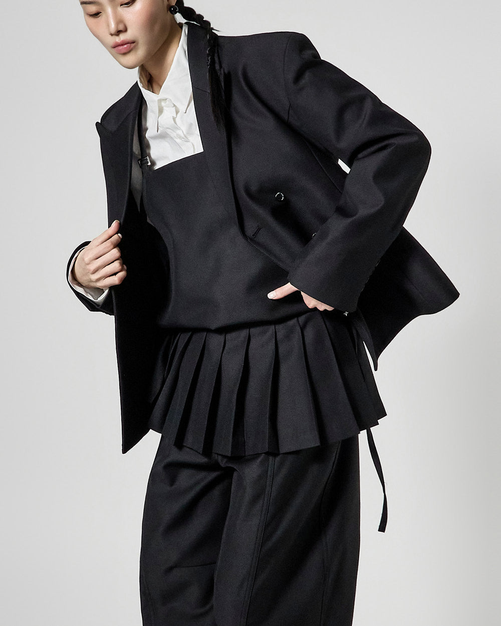 This pleated apron top has a modern vibe.