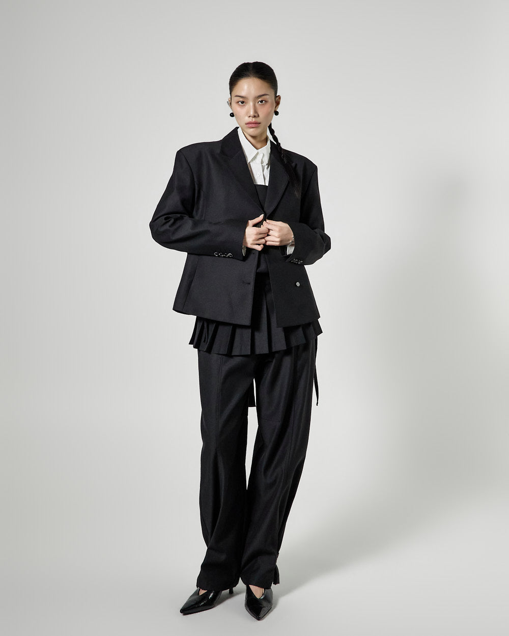 Model is 171cm tall and is wearing size ONE in BLACK.