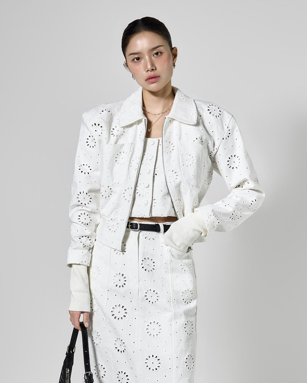The crisp, lightweight texture of the punching fabric